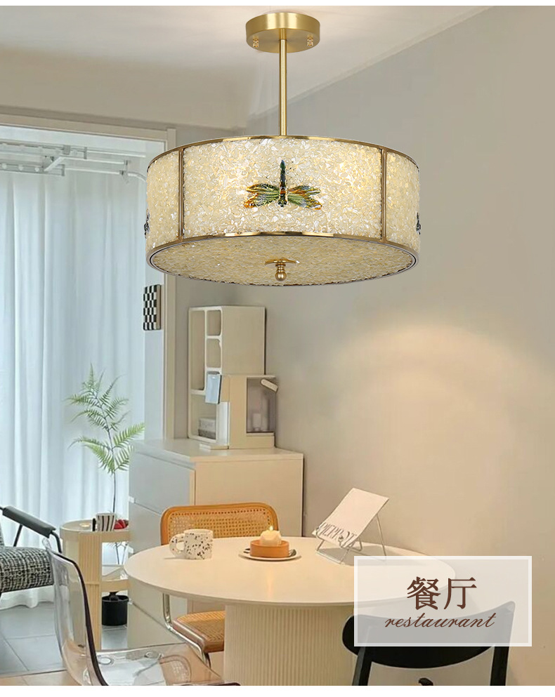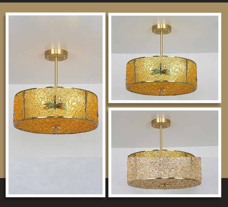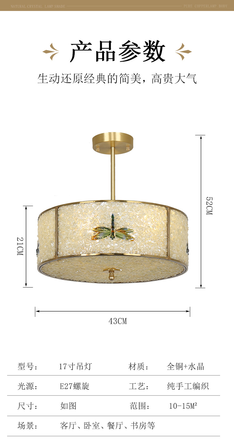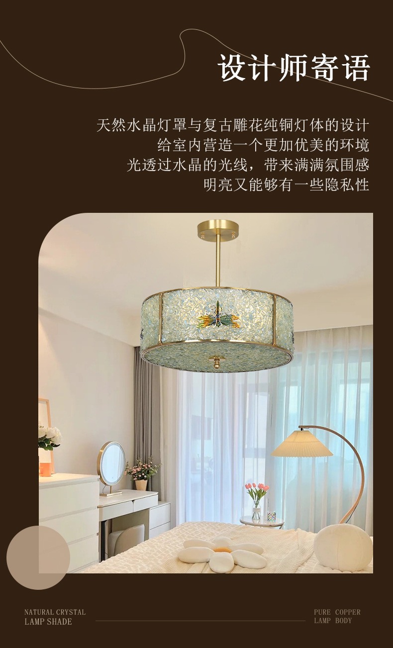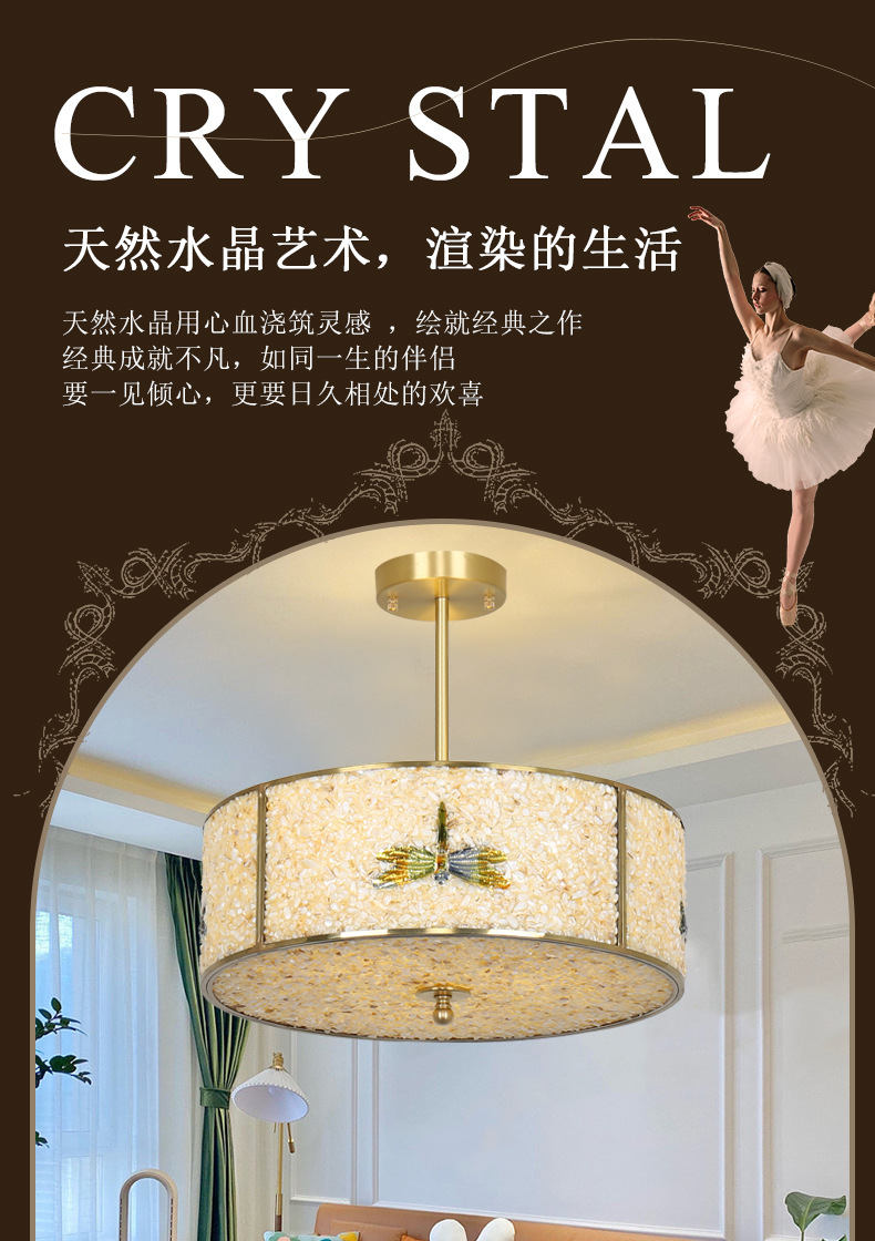 外贸专供轻奢全铜天然水晶客厅灯书房灯酒店客房展厅灯蜻蜓吊灯