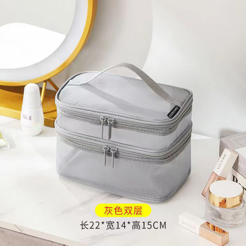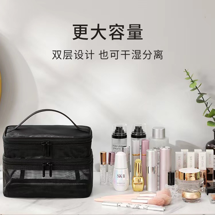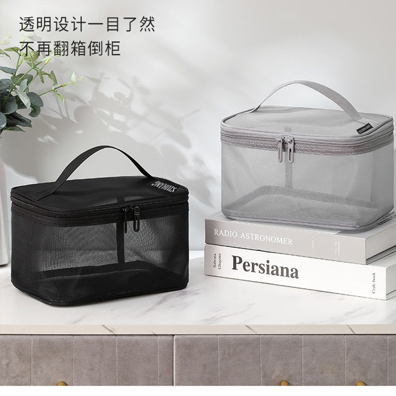 跨境风潮大容量网纱收纳袋无性别风旅行洗漱收袋高级感手提化妆包