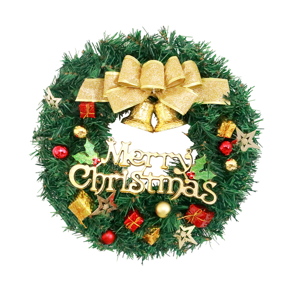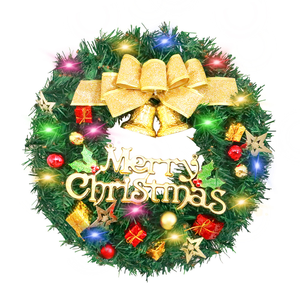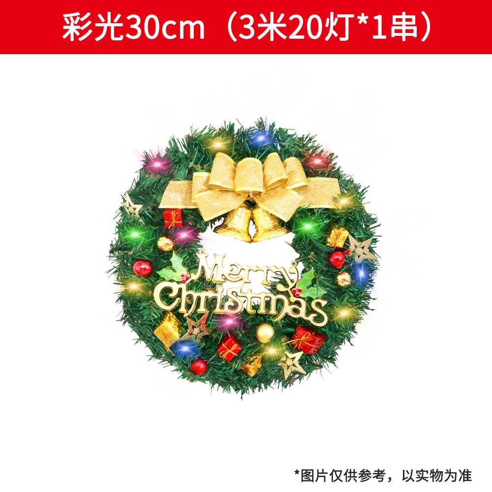 圣诞花环30/40/50/60cm带灯圣诞节装饰门挂藤圈花圈 酒店商场布置