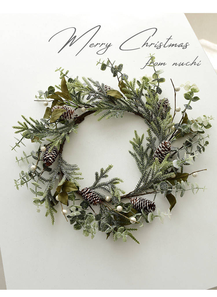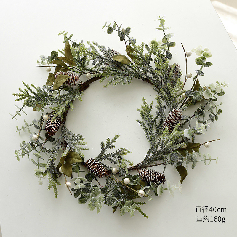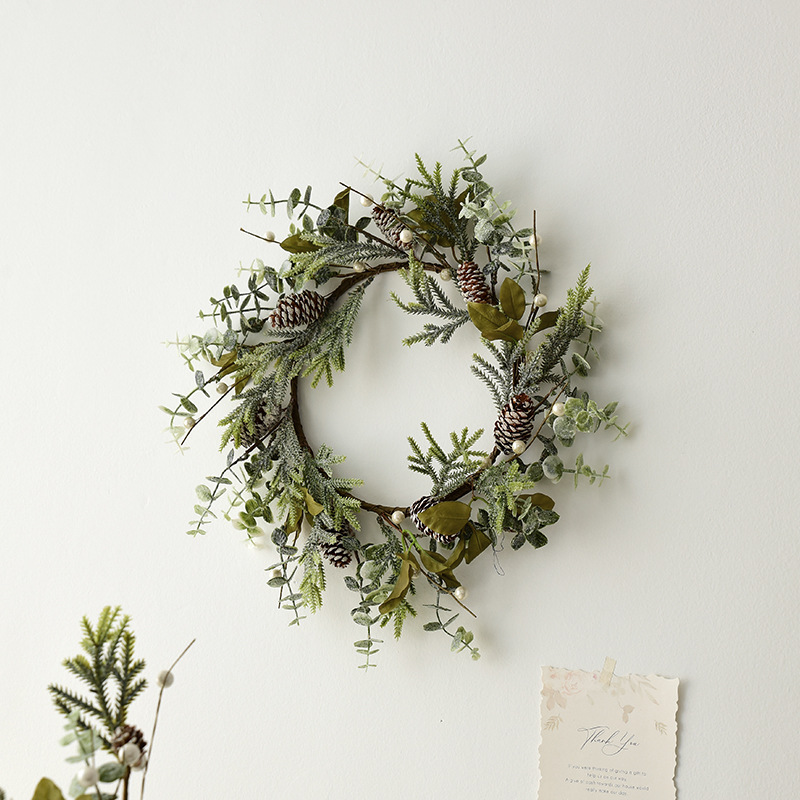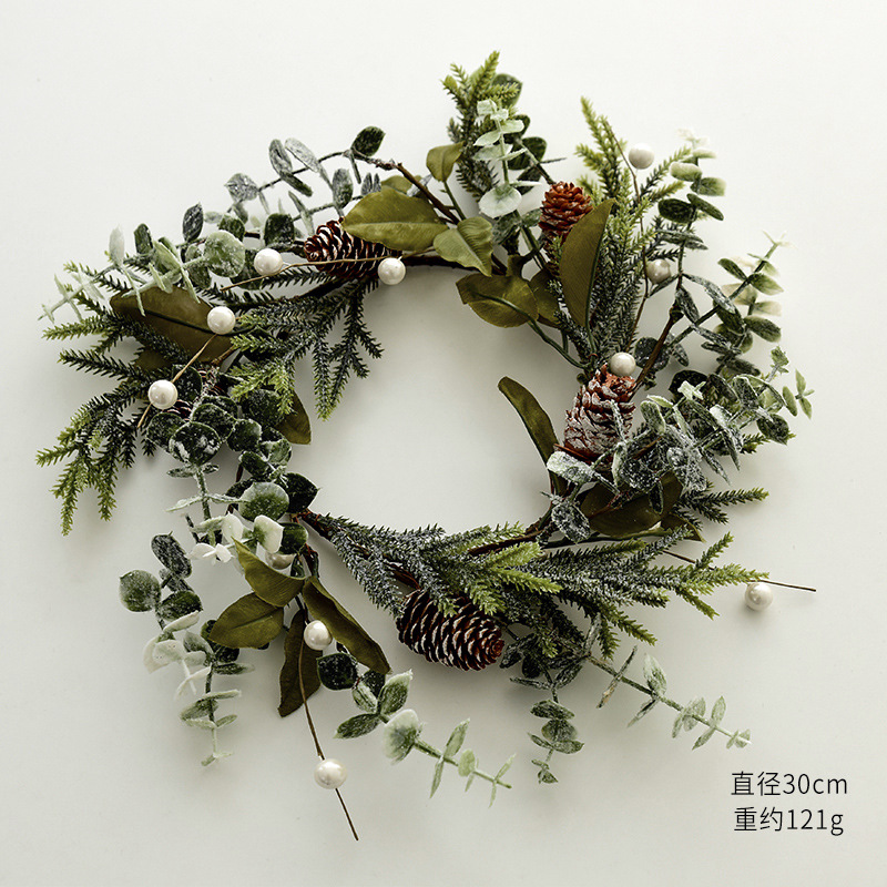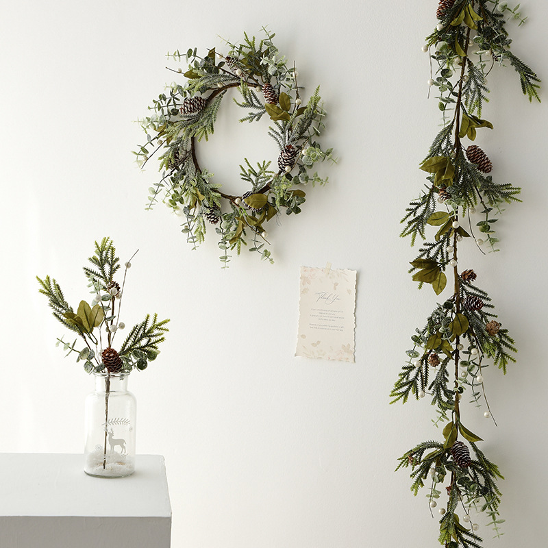 圣诞花环门挂装饰PE尤加利叶松果花环牛角藤条壁挂插枝圣诞装饰品