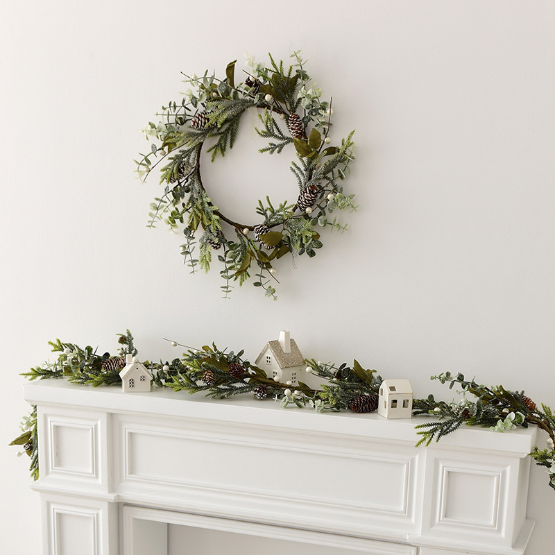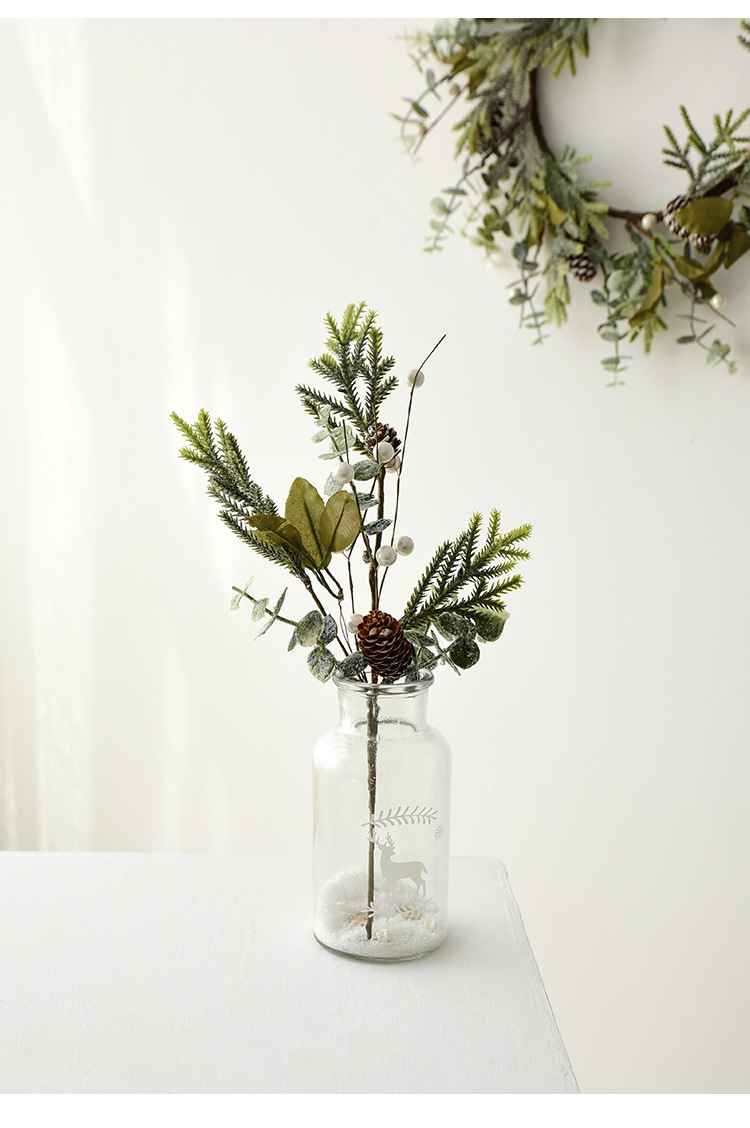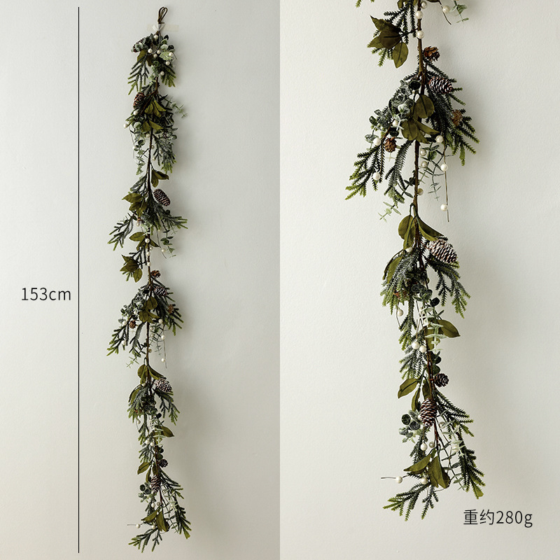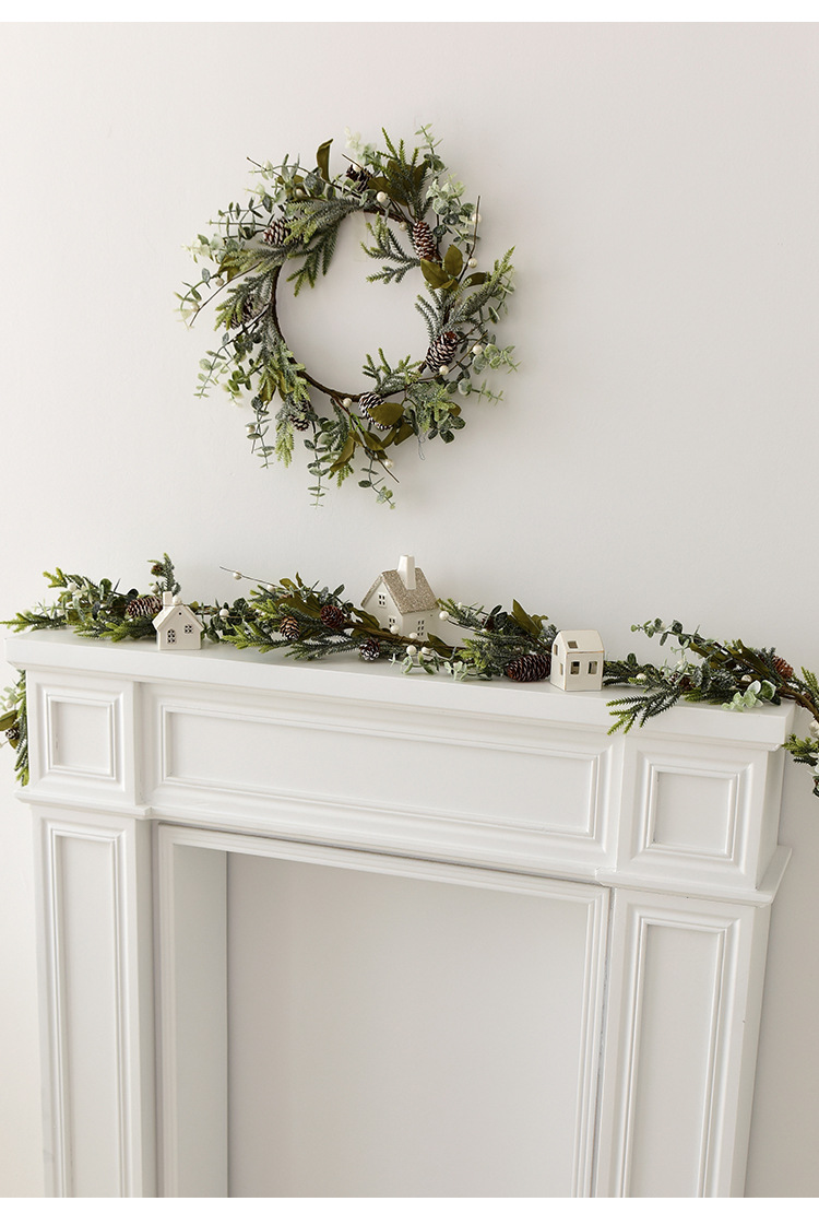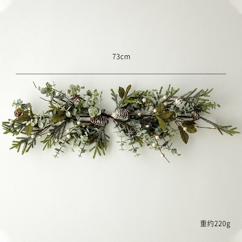 圣诞花环门挂装饰PE尤加利叶松果花环牛角藤条壁挂插枝圣诞装饰品