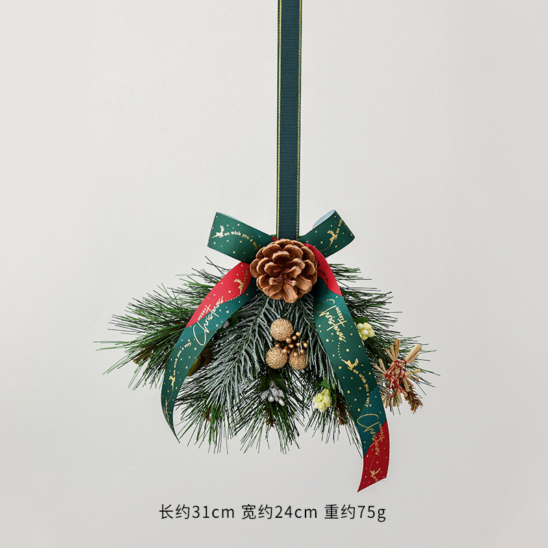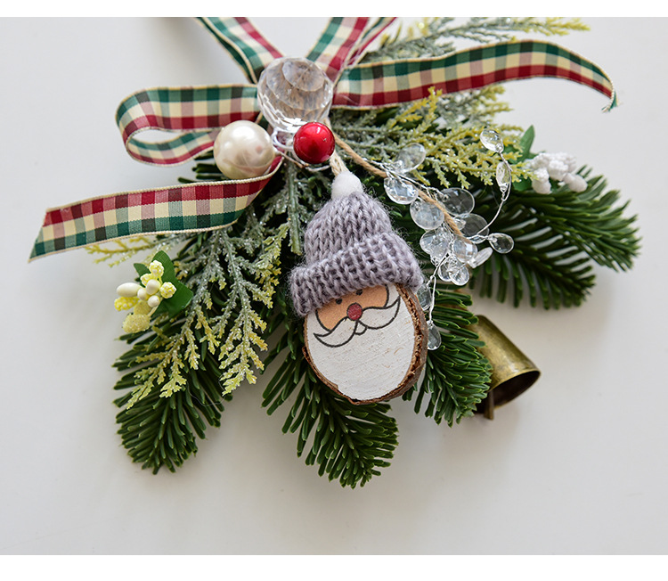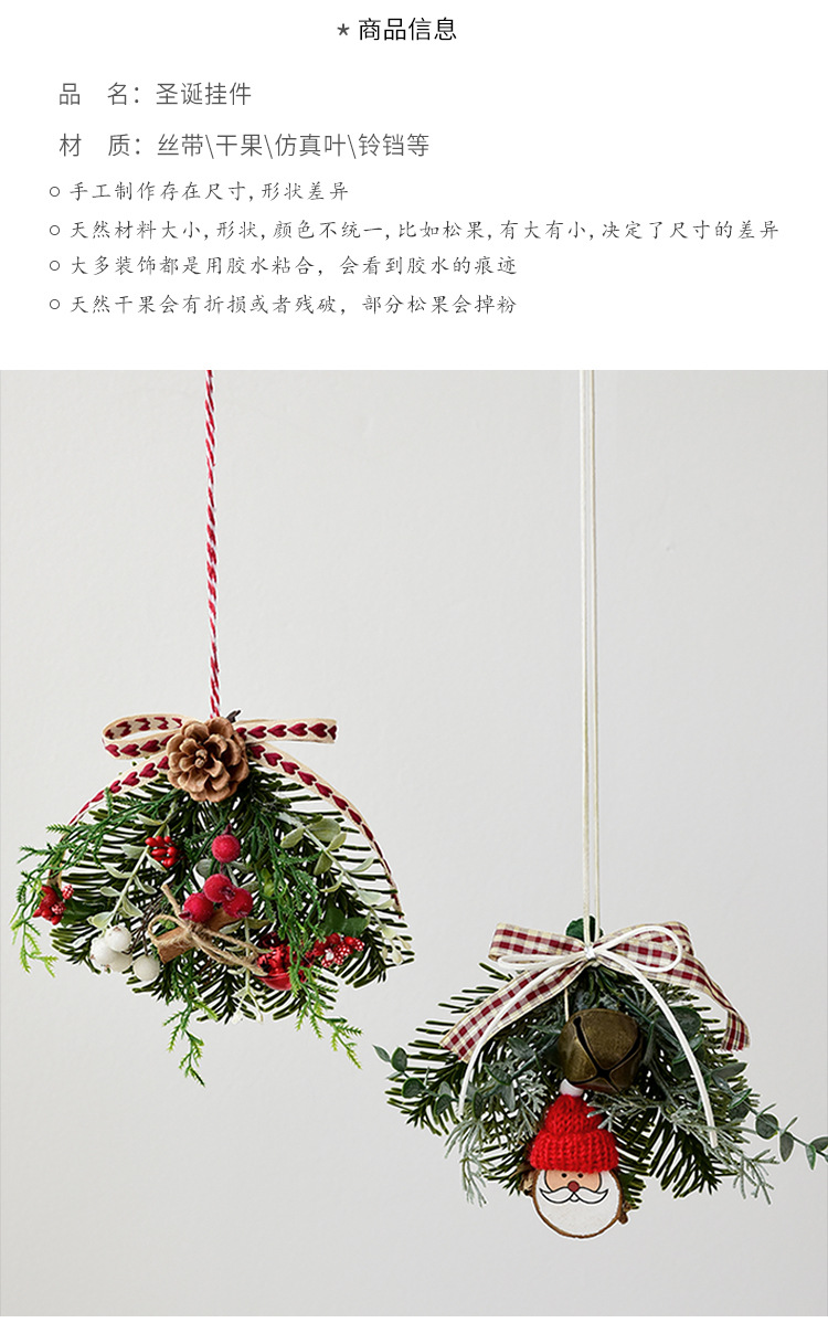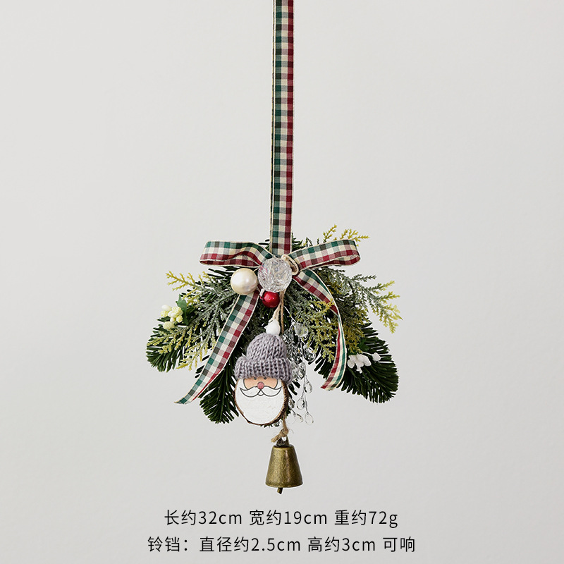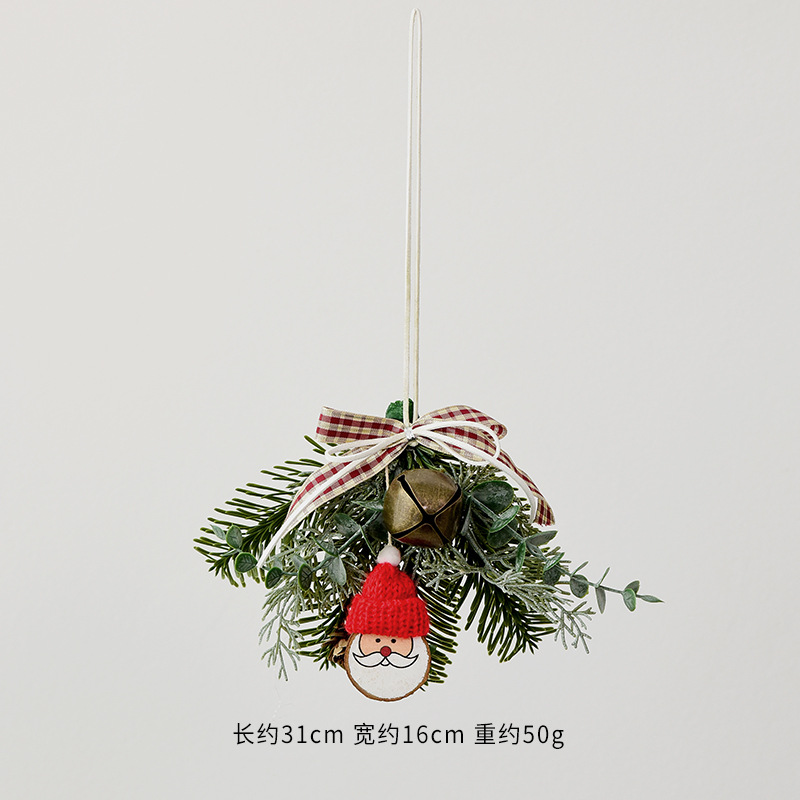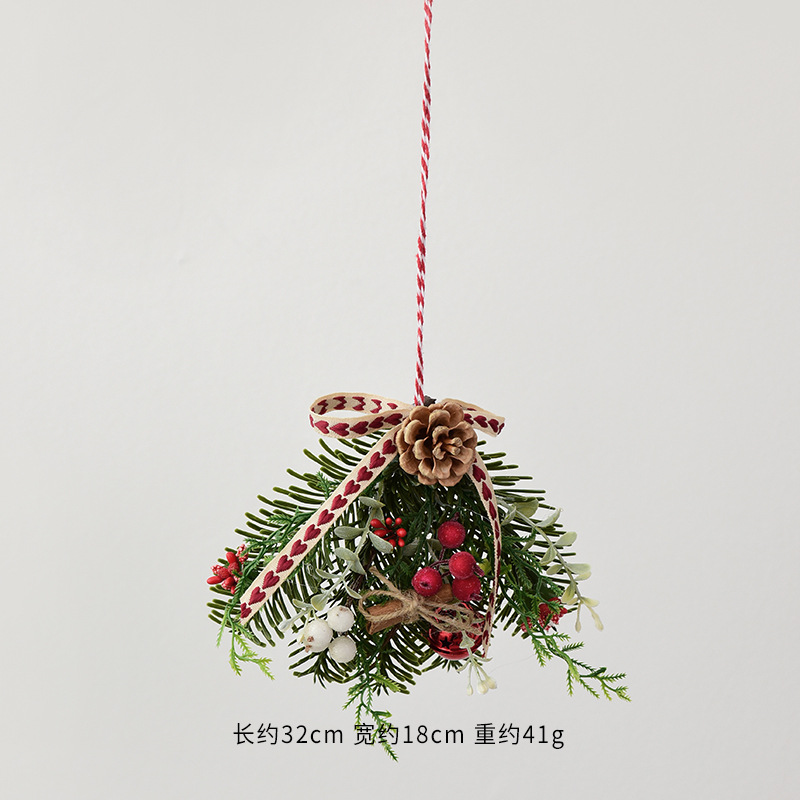 跨境新品圣诞老人松果铃铛挂件PE叶松针松花苏格兰蝴蝶结圣诞装饰