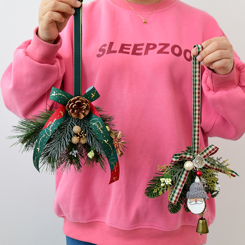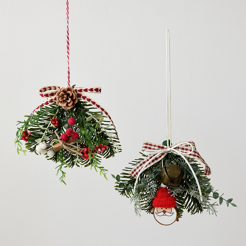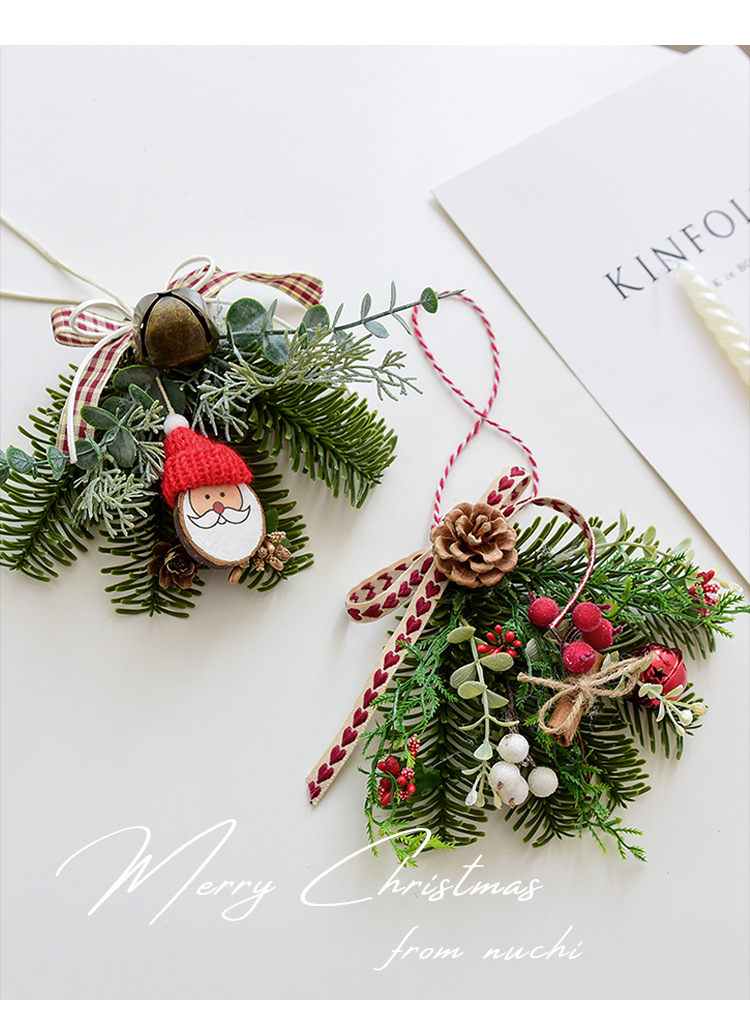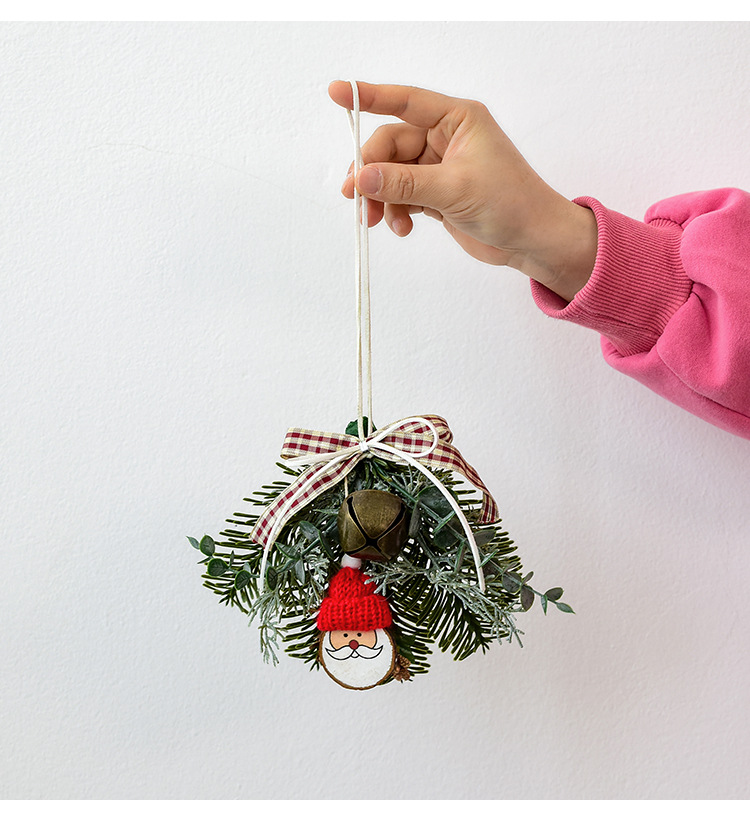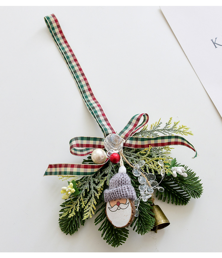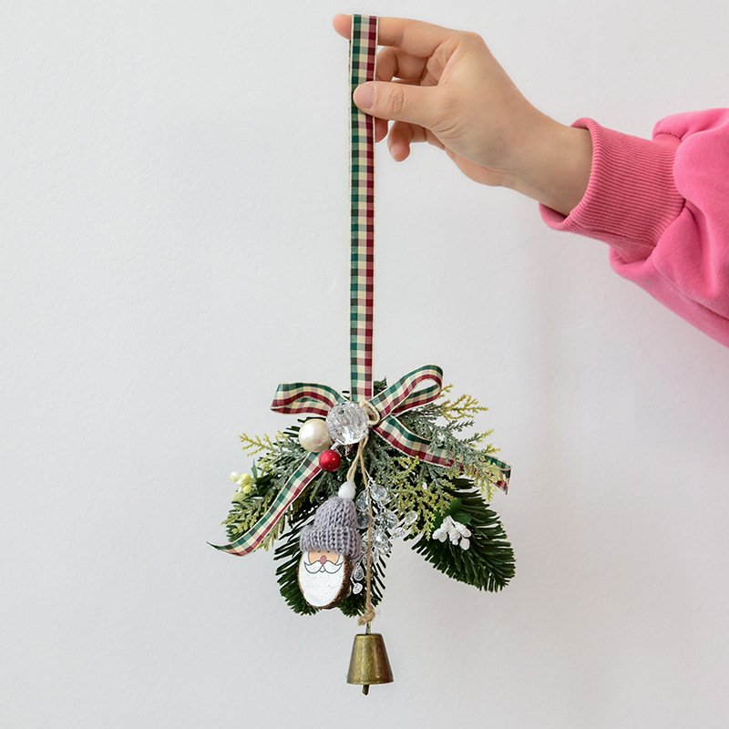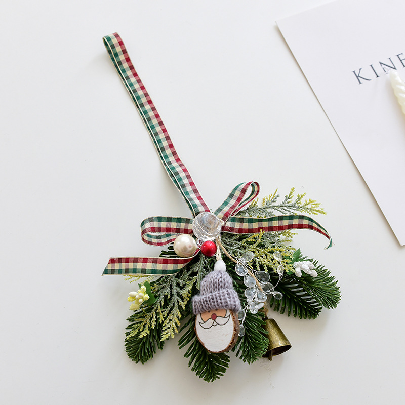 跨境新品圣诞老人松果铃铛挂件PE叶松针松花苏格兰蝴蝶结圣诞装饰