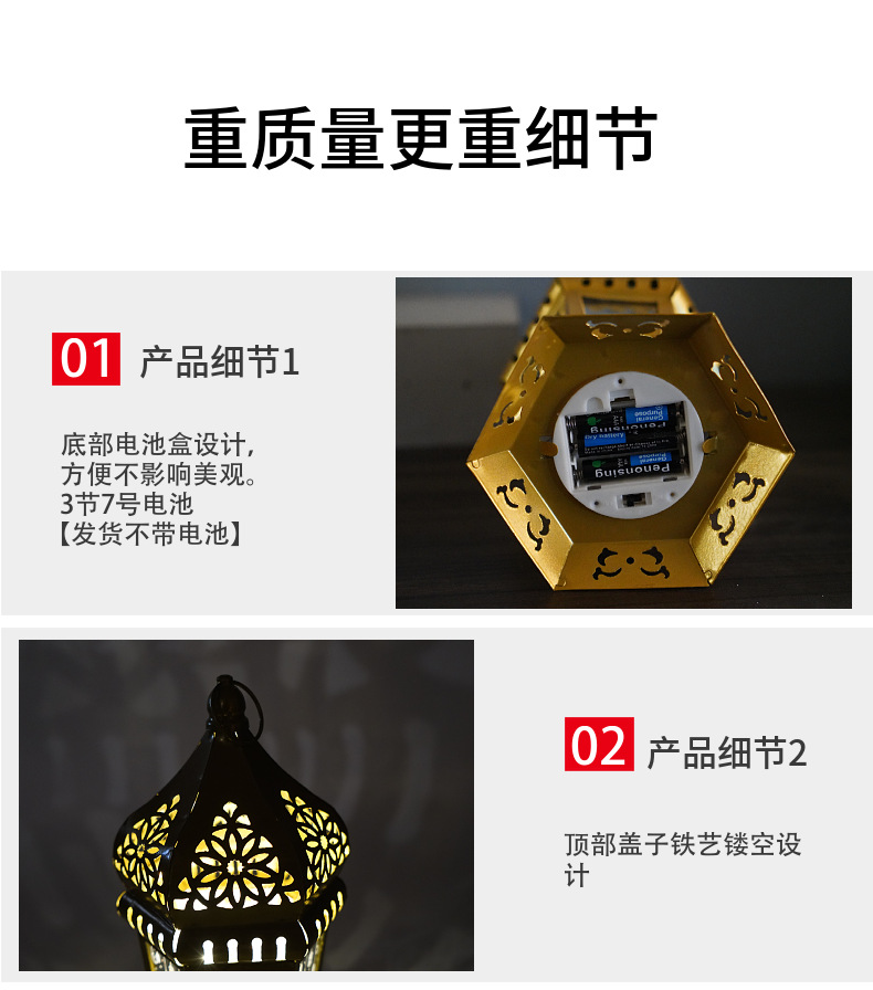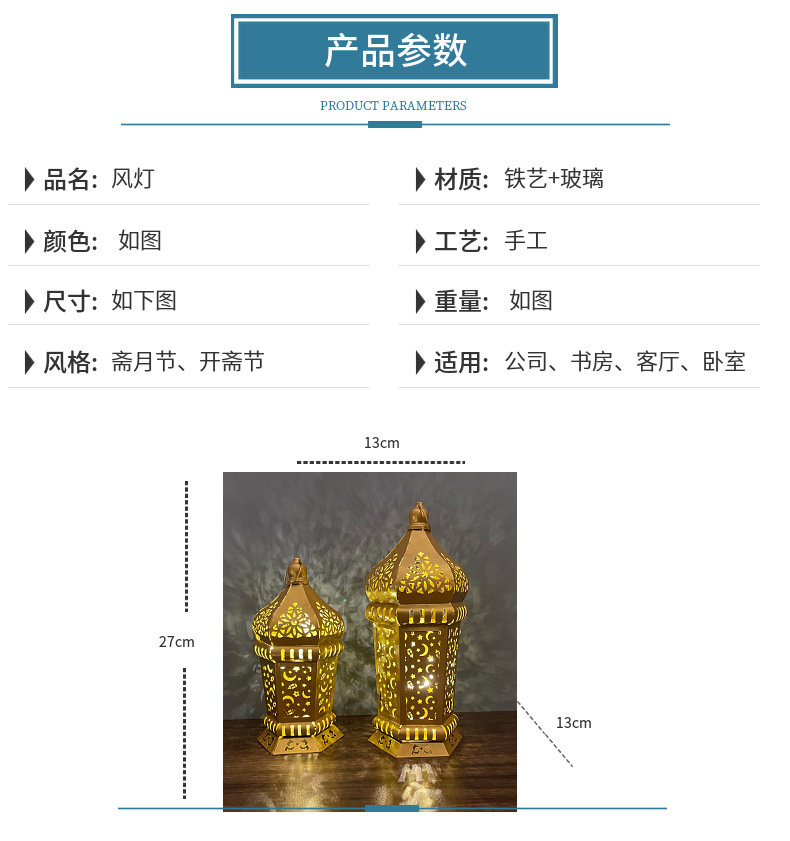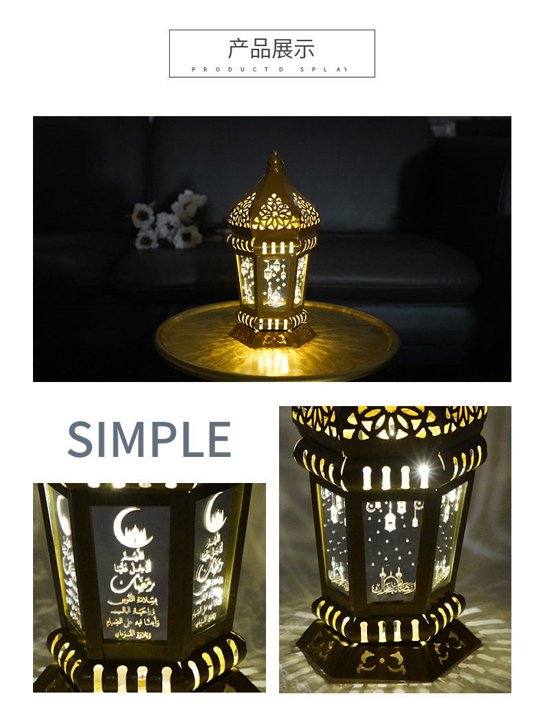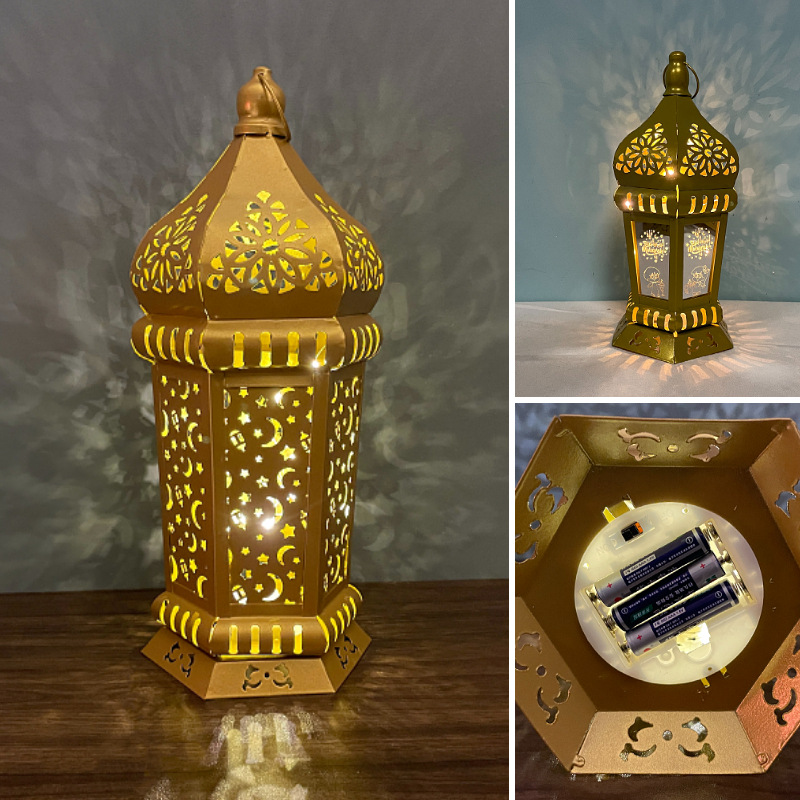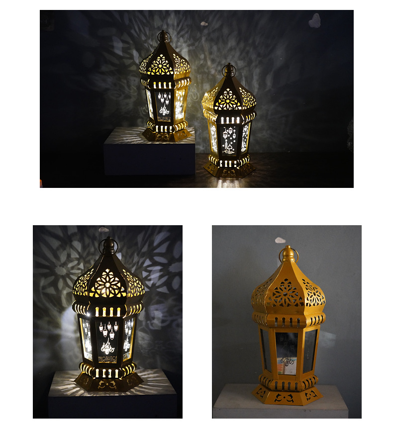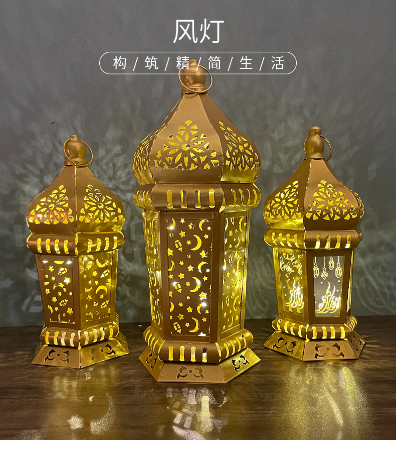 跨境专供led铁艺灯笼家用桌面展示节日风灯工艺品装饰摆件