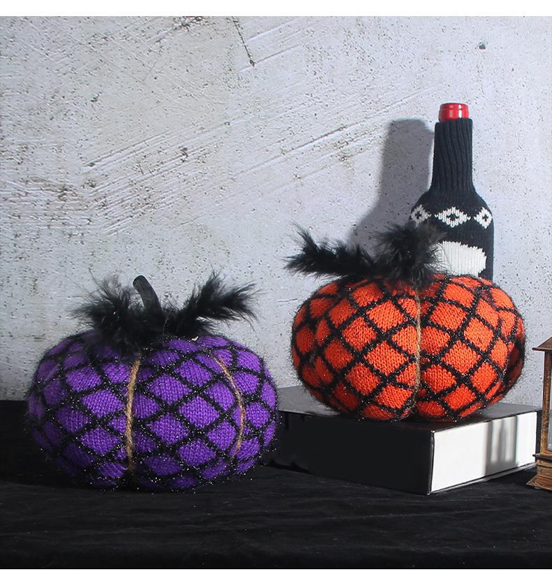 2023万圣节南瓜摆件节日派对装饰品跨境手工针织摆件毛线南瓜道具