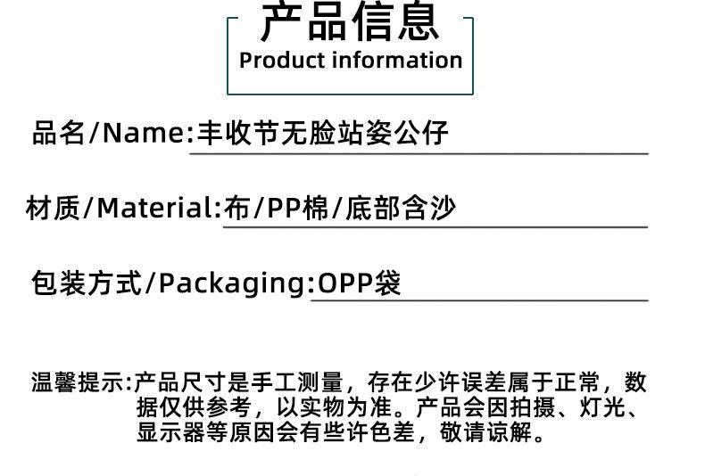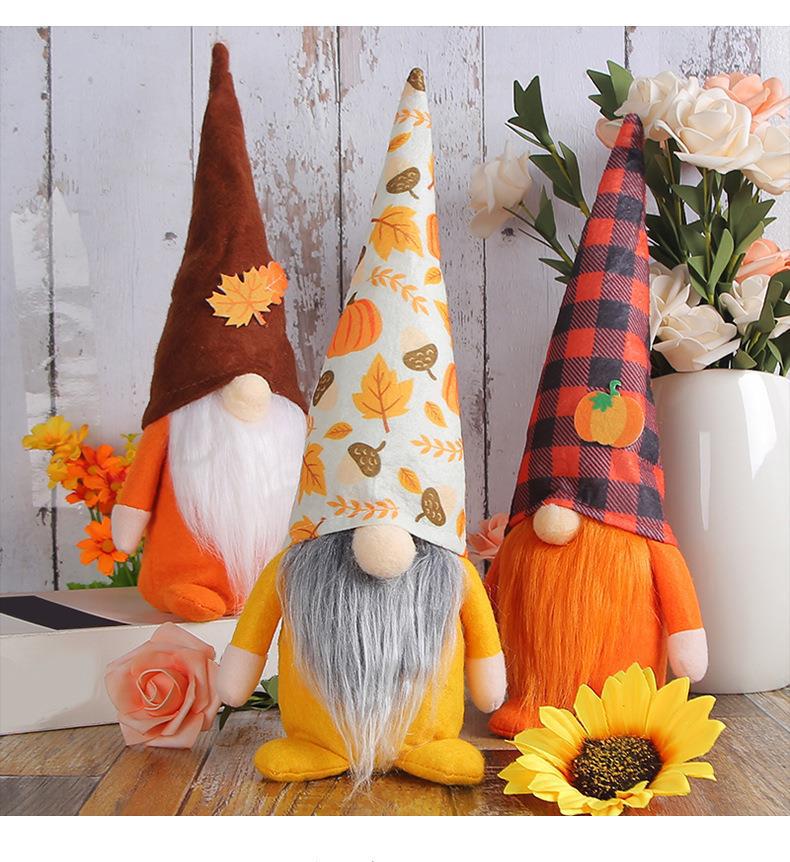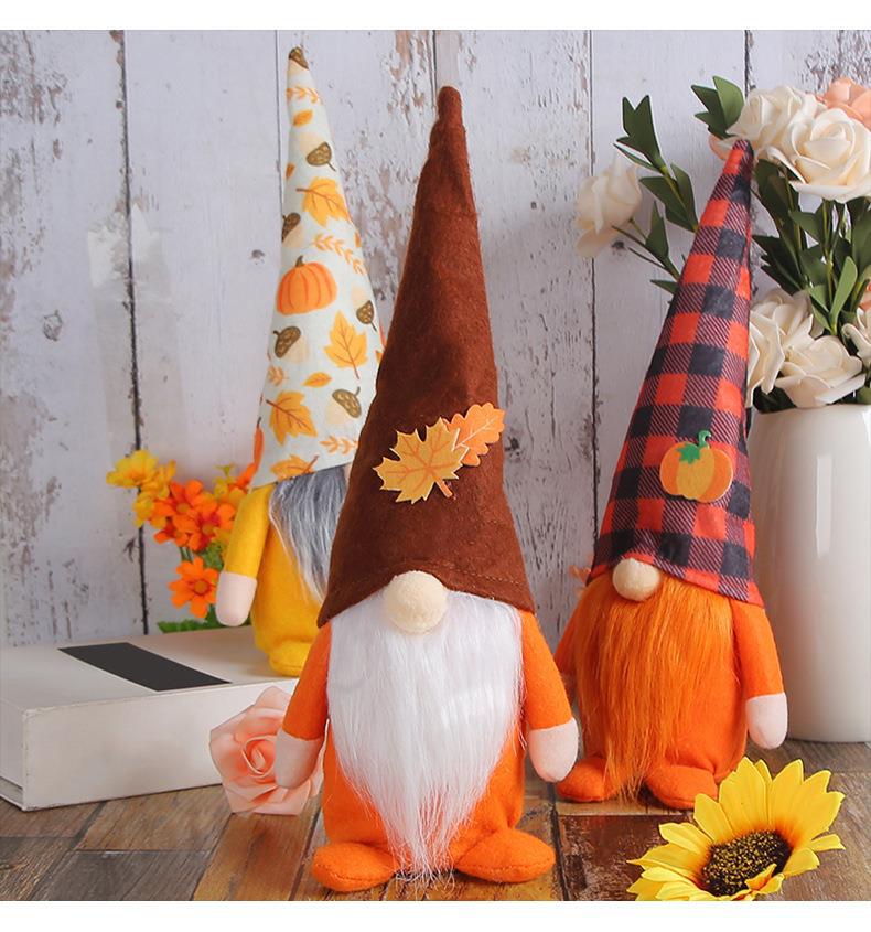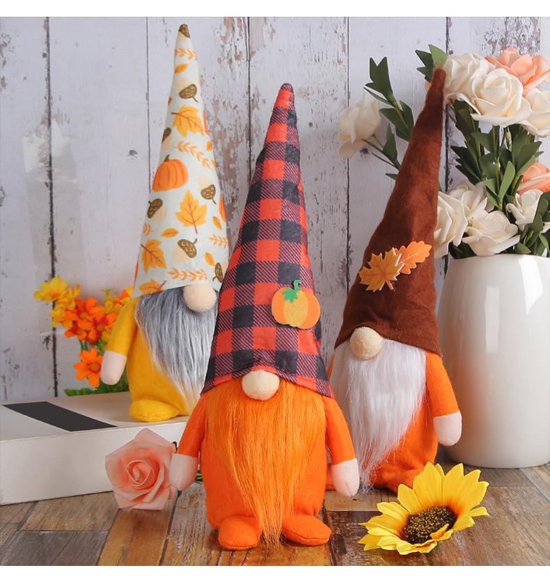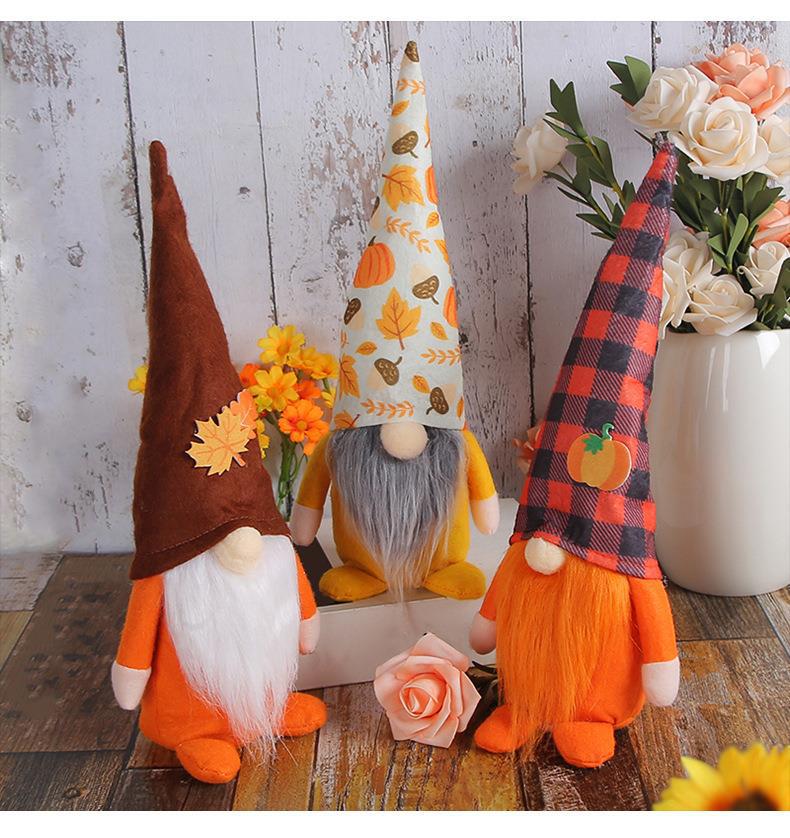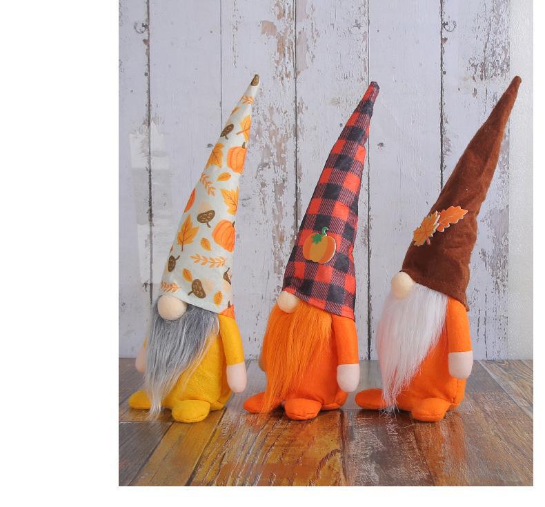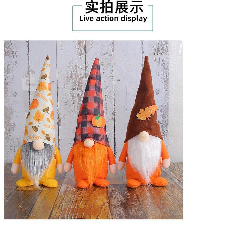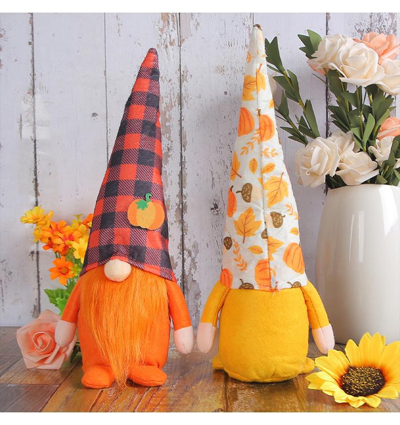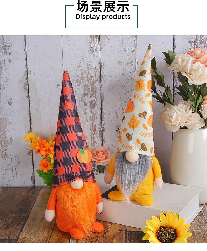 亚马逊新款丰收节无脸站姿公仔格子南瓜帽娃娃摆件鲁道夫无脸娃娃
