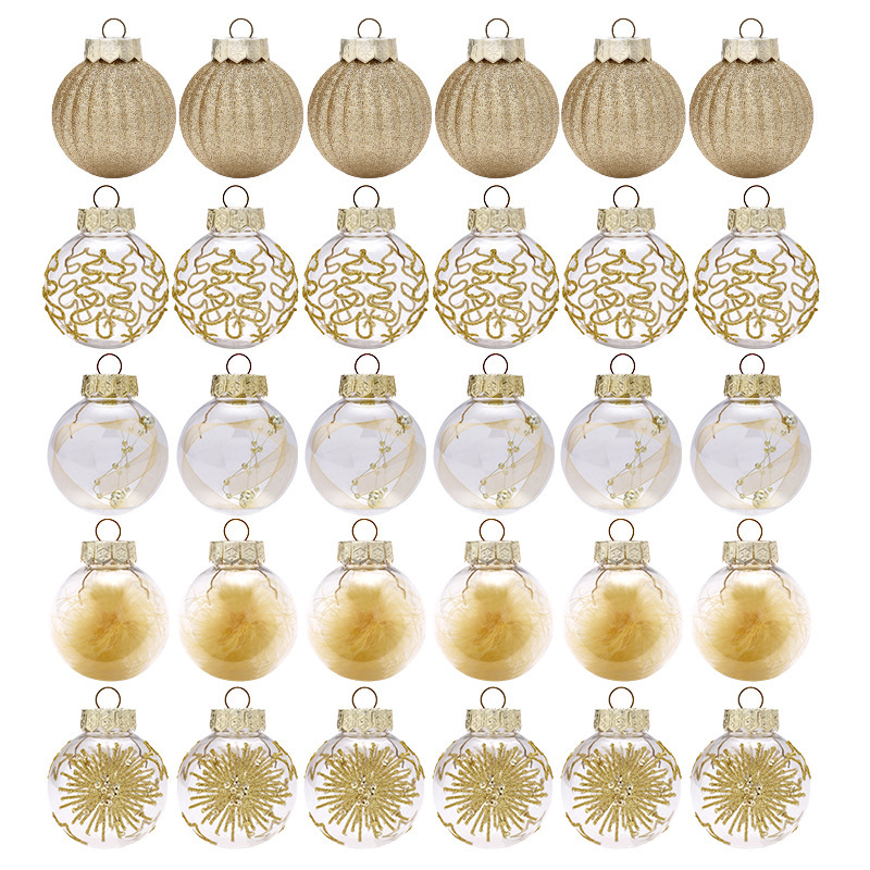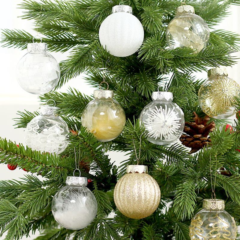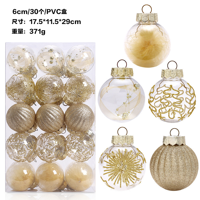 跨境新品圣诞节装饰品 6cmPET彩绘透明圣诞球套装礼物 圣诞树挂件