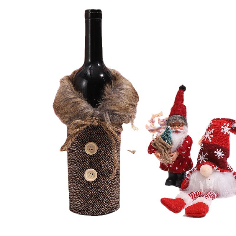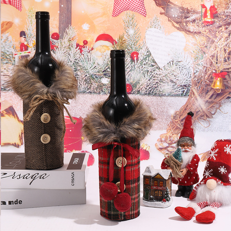 跨境热销圣诞红酒套装饰餐桌酒瓶装饰条纹格子裙酒瓶套红酒套摆件