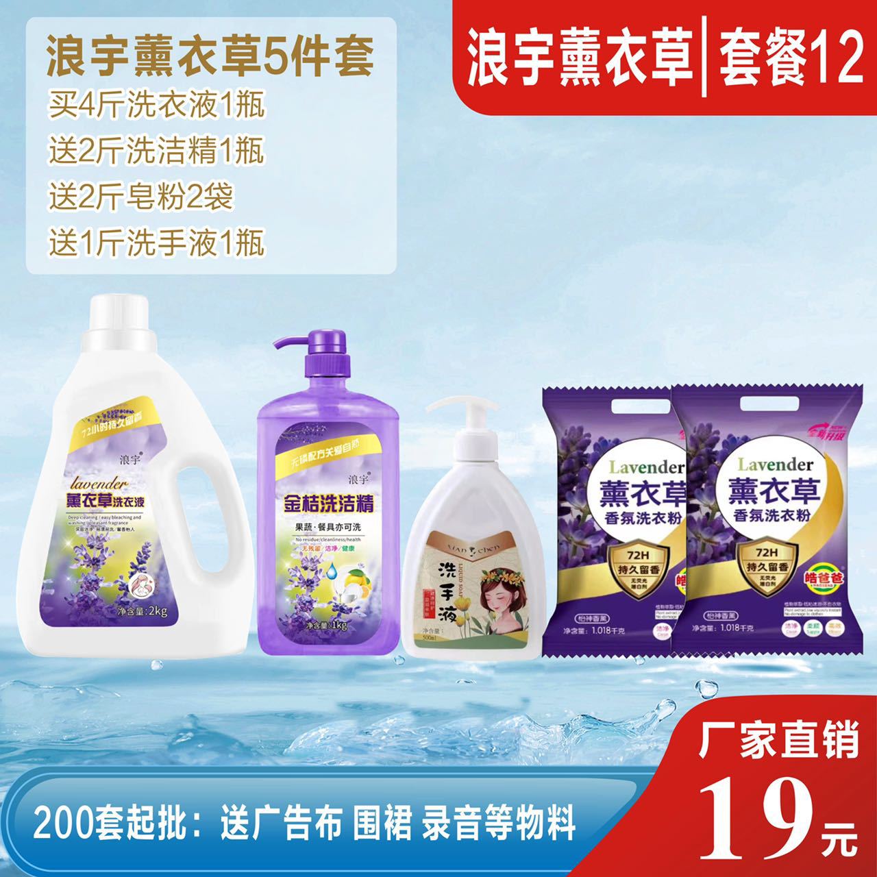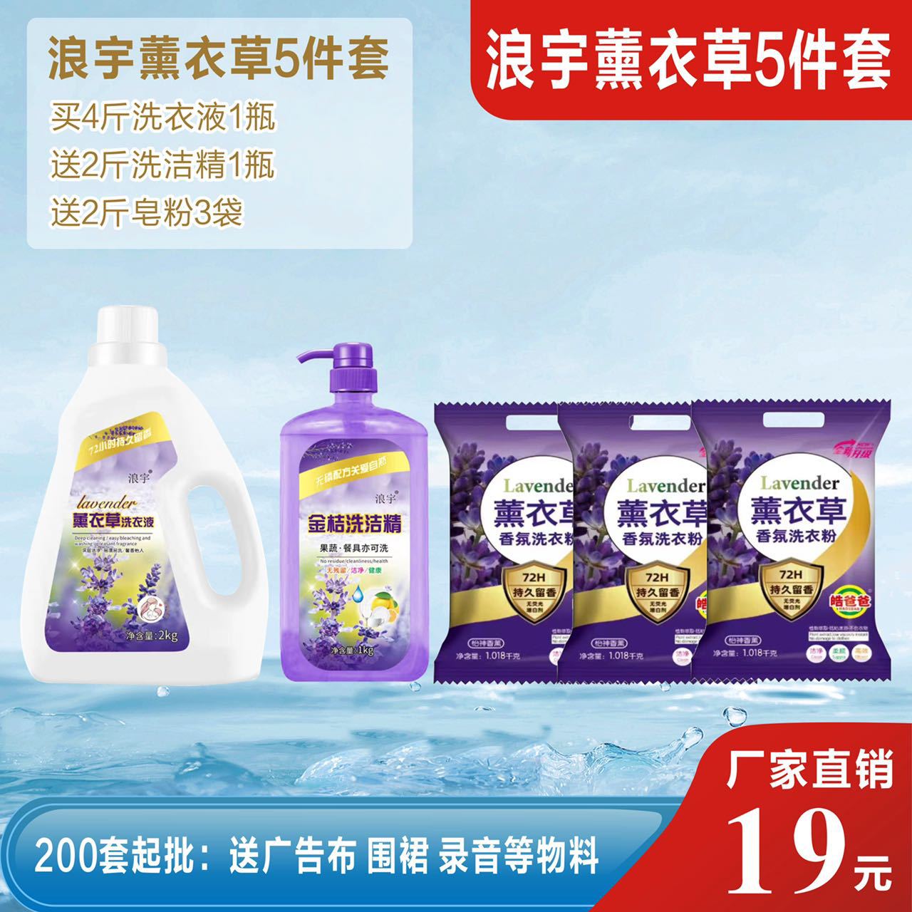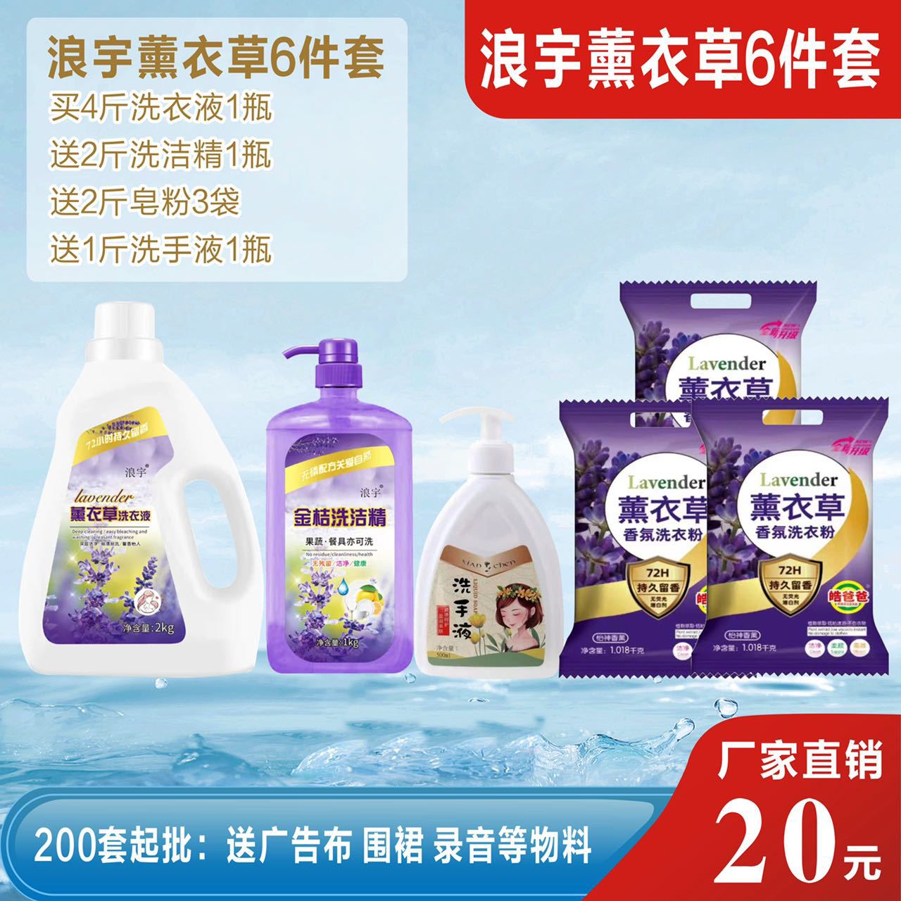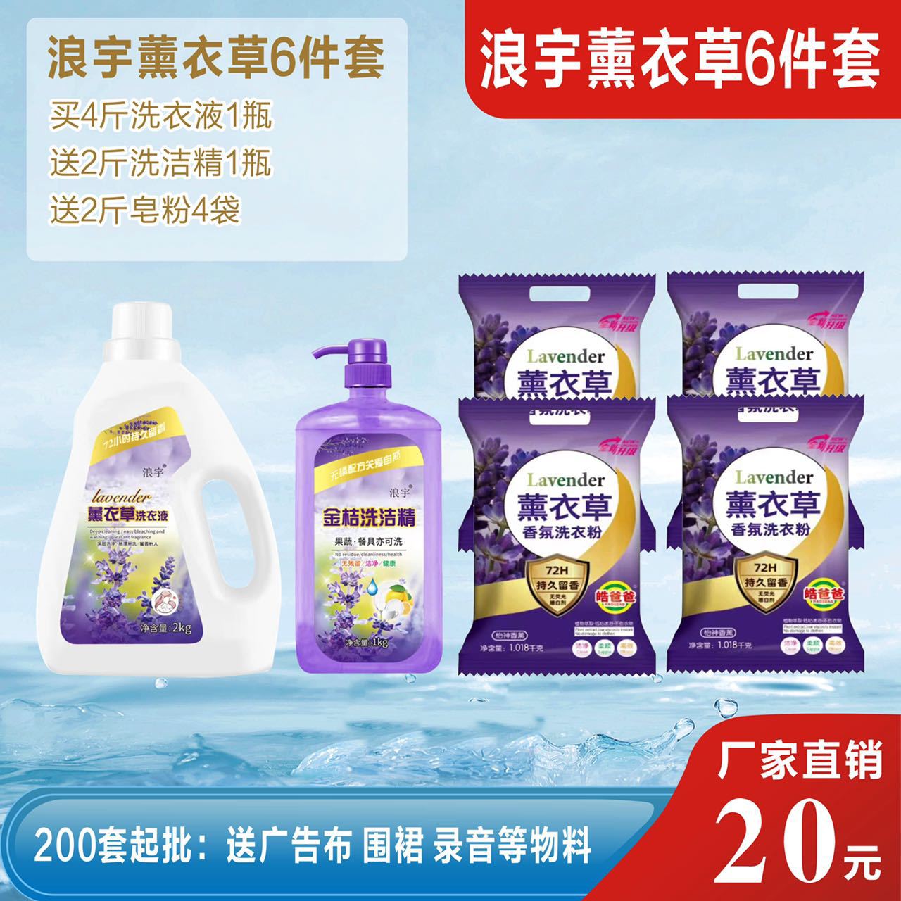 地摊赶集热销浪字薰衣草日化六件套批发洗衣液洗衣粉洗洁精大脸盆