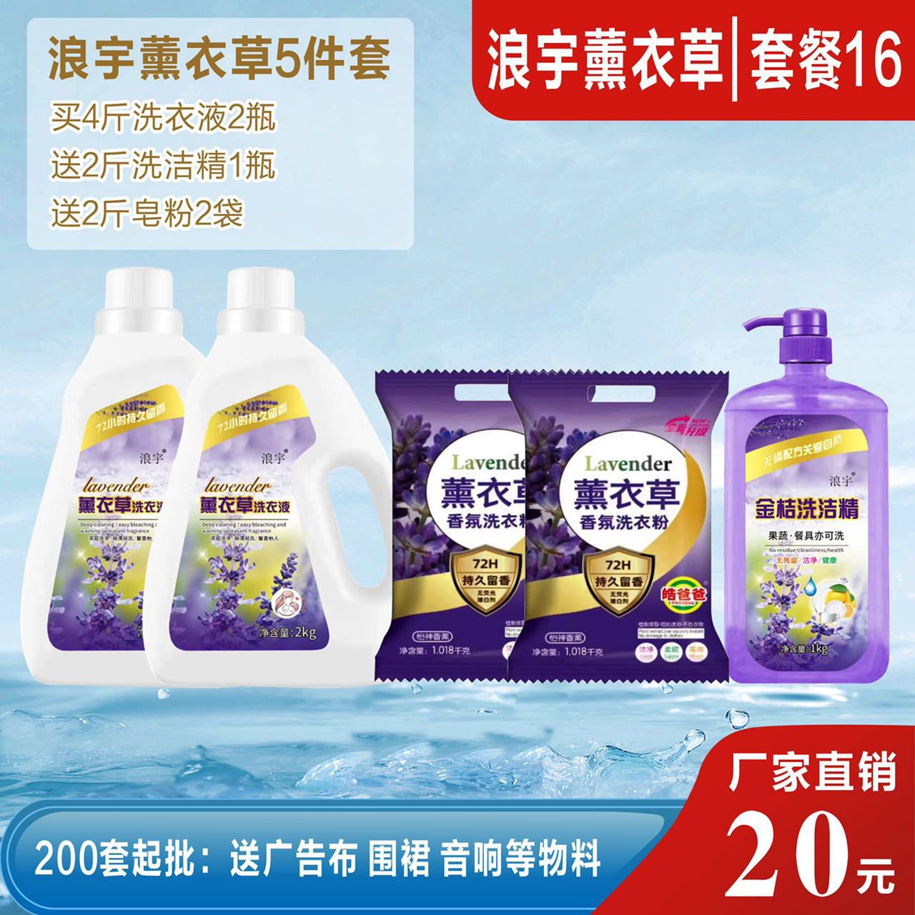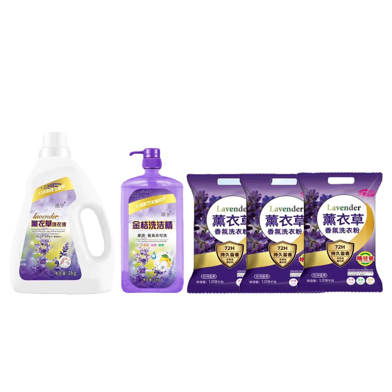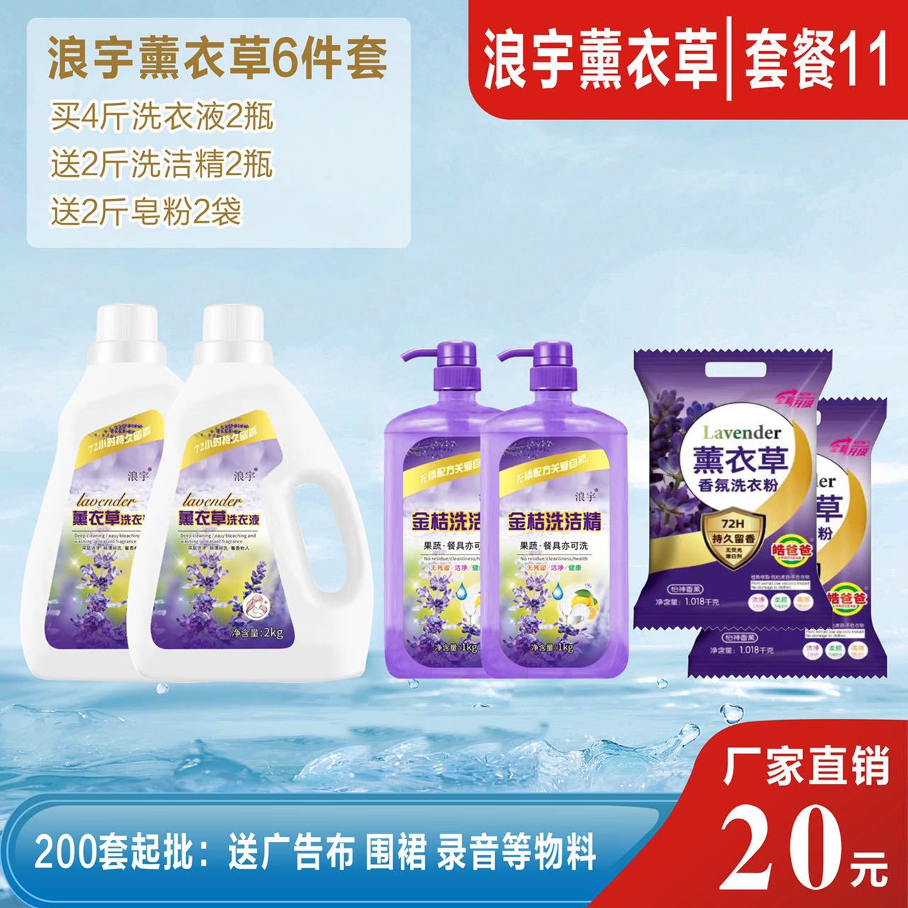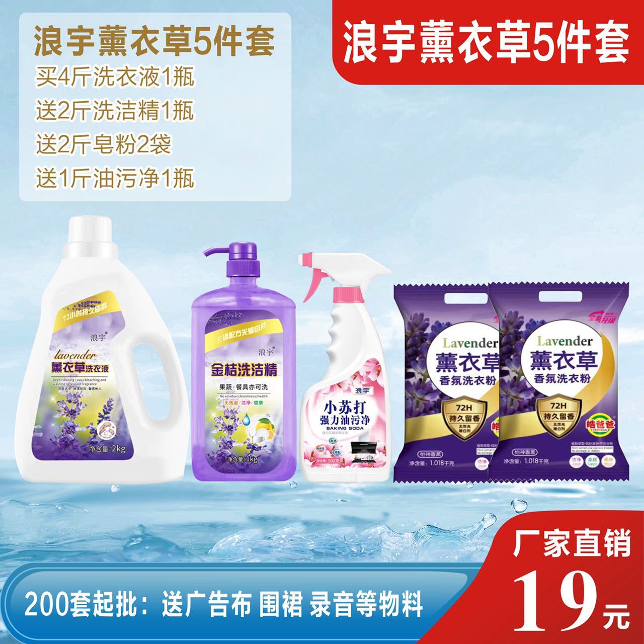 地摊赶集热销浪字薰衣草日化六件套批发洗衣液洗衣粉洗洁精大脸盆