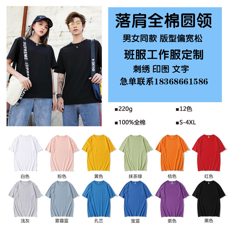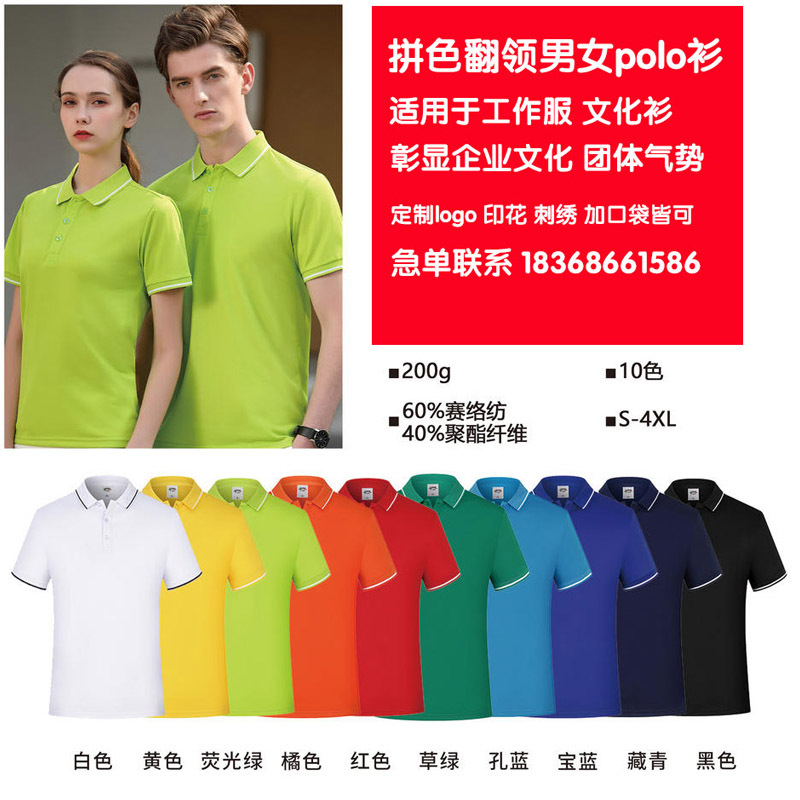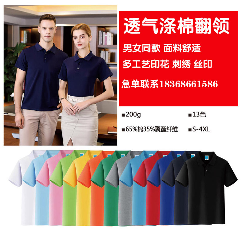 纯棉短袖印字logo广告衫翻领POLO衫定 制文化衫圆领T恤工作服班服