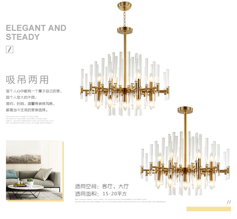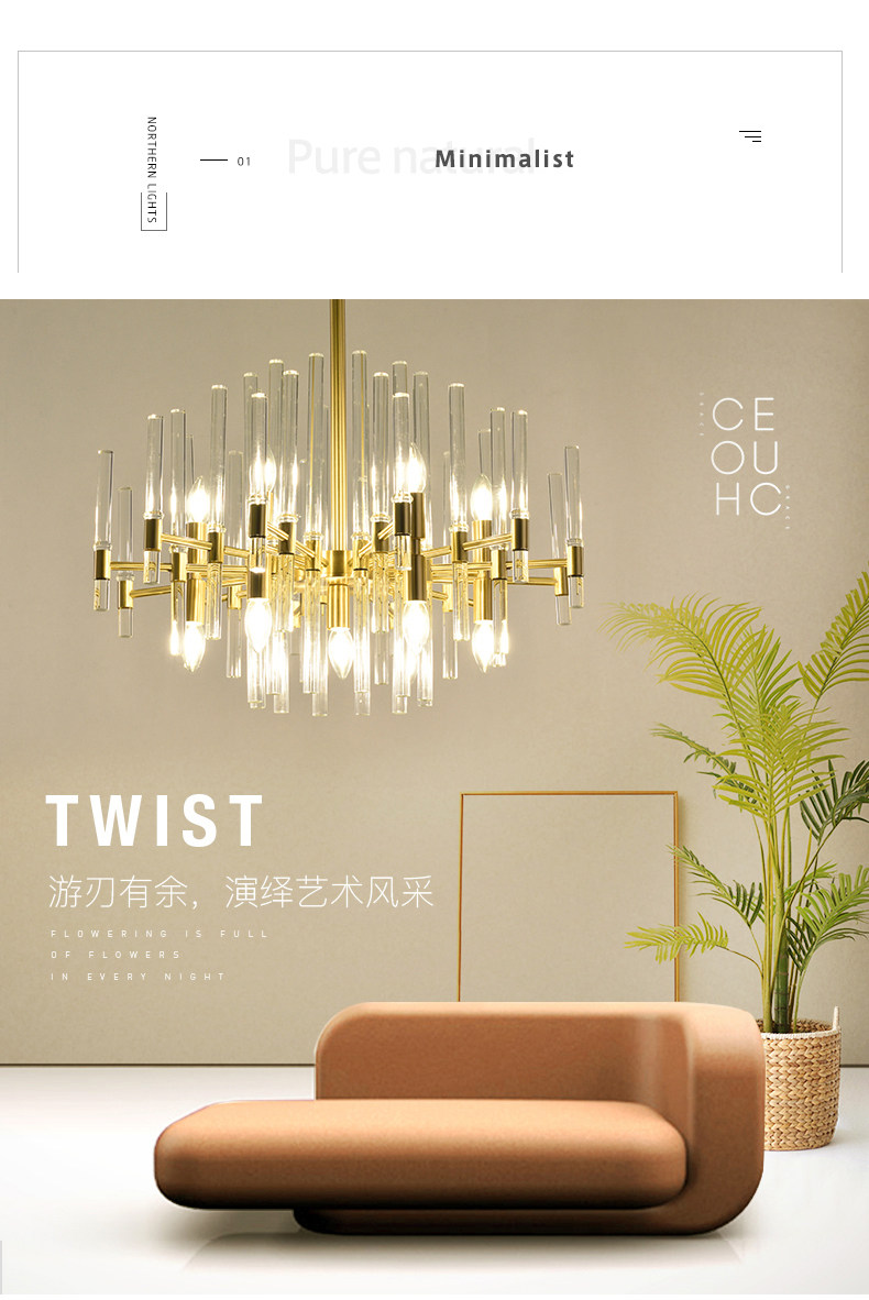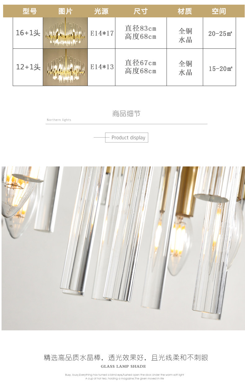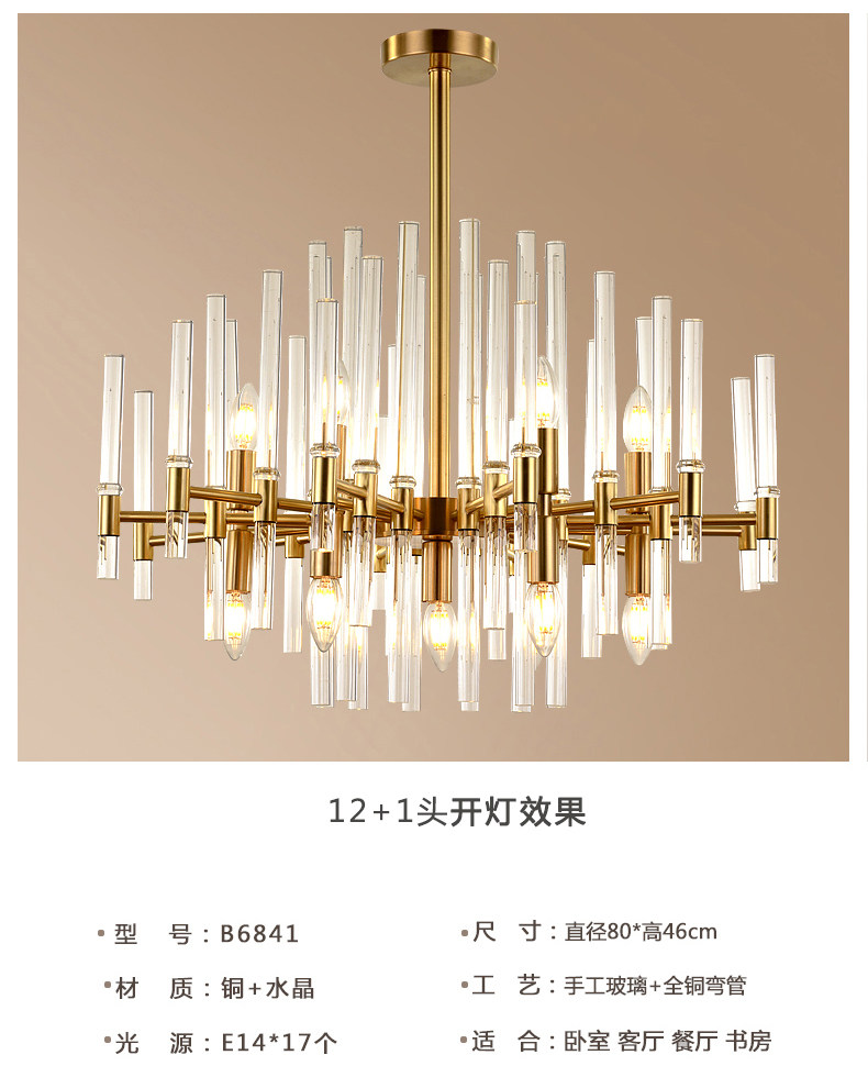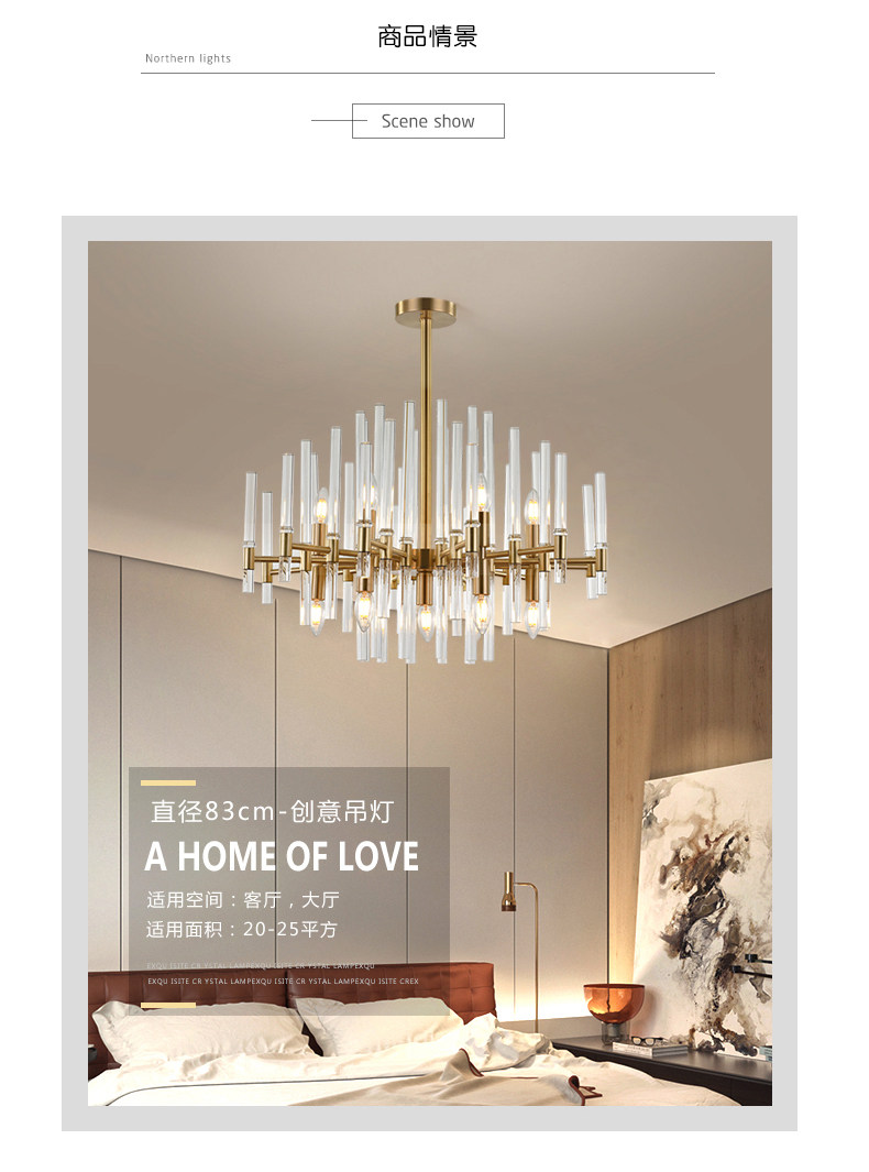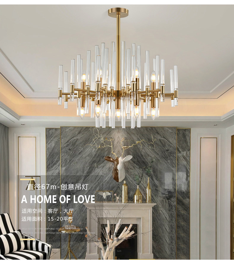 外贸专供全铜后简约北欧个性轻奢艺术设计师样板房客水晶吊灯