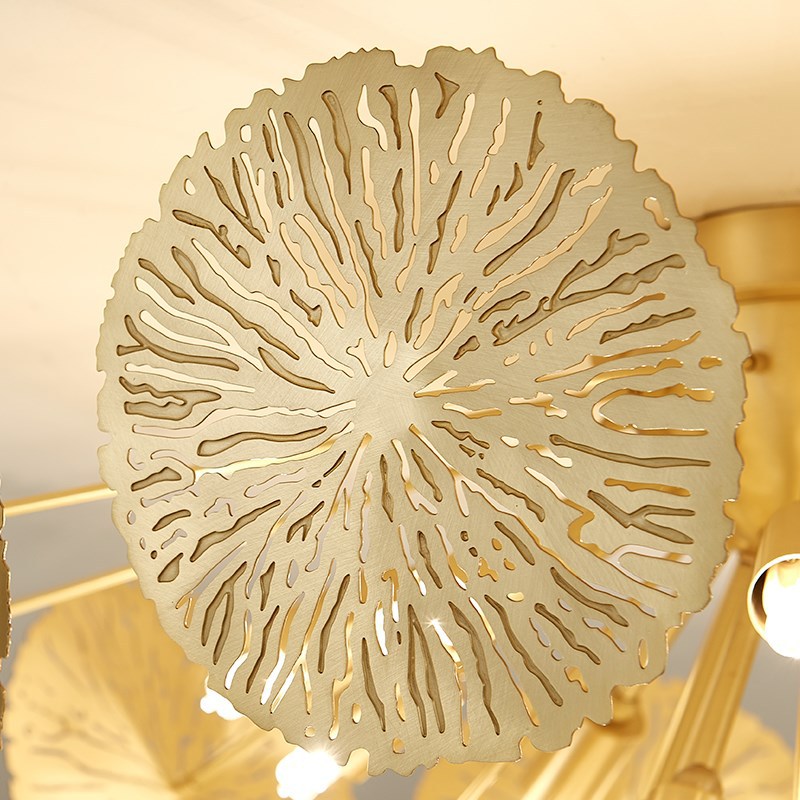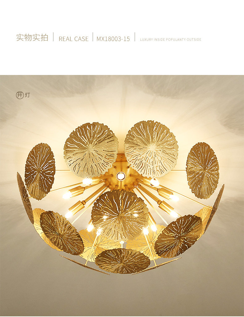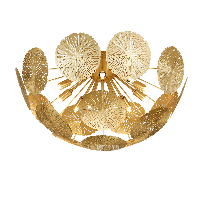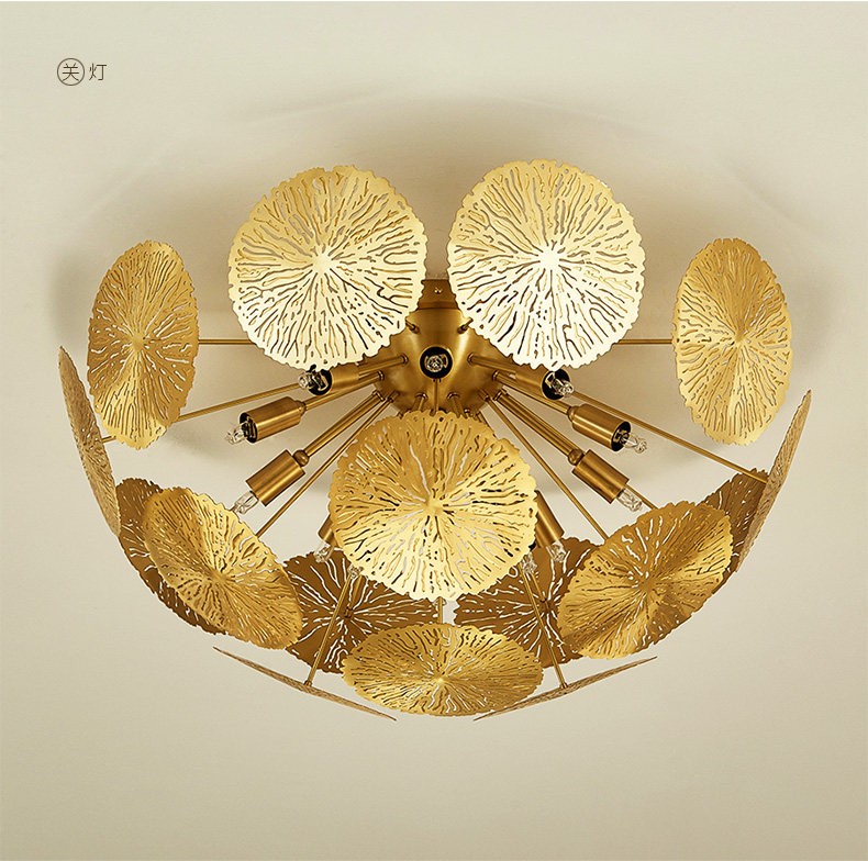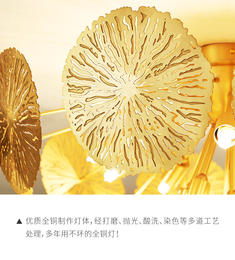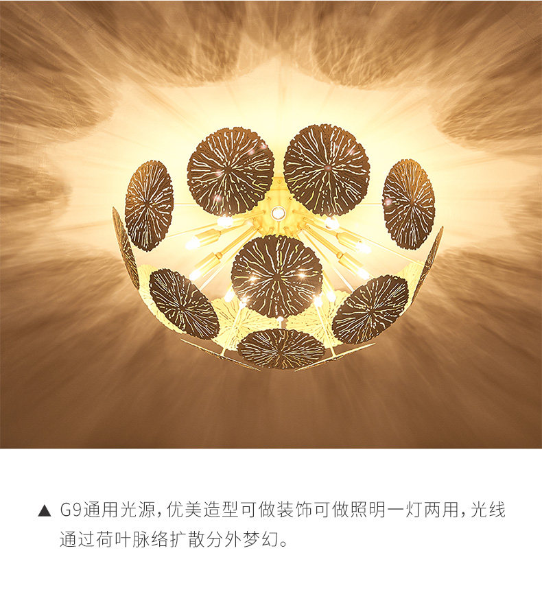 外贸专供全铜新中式客厅灯禅意轻奢设计师展厅别墅荷叶吸顶灯