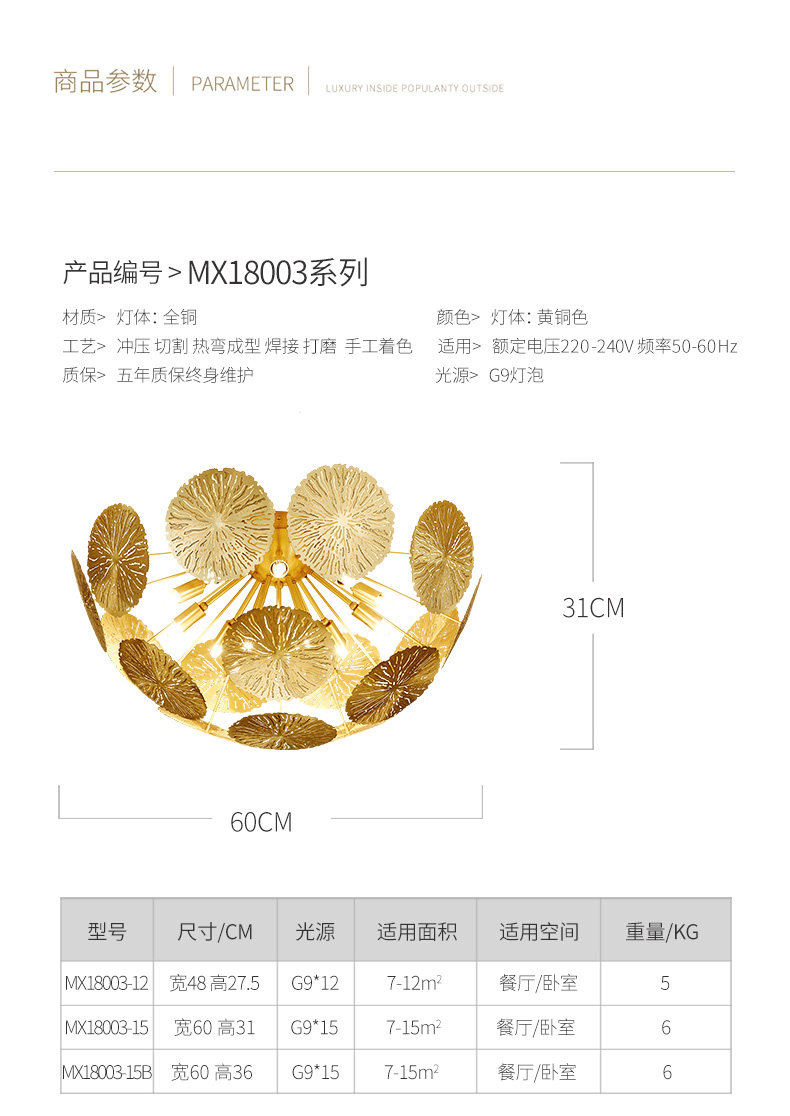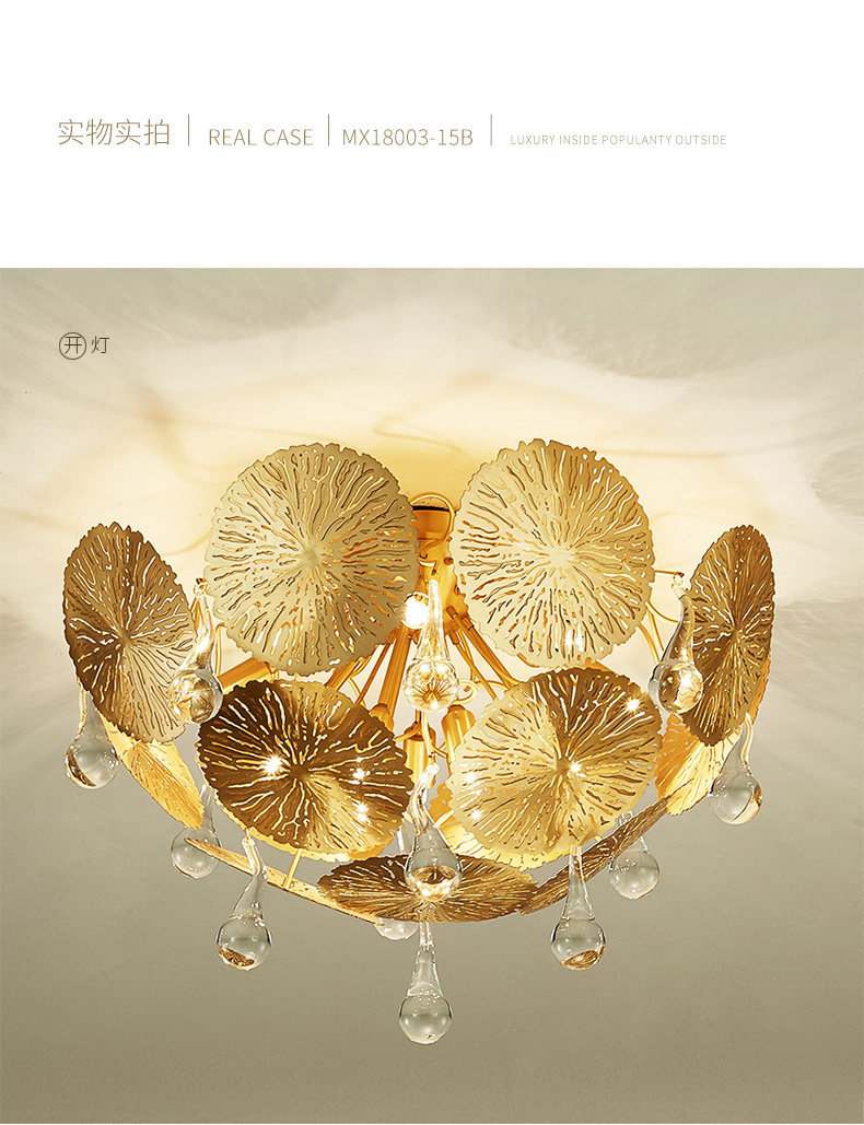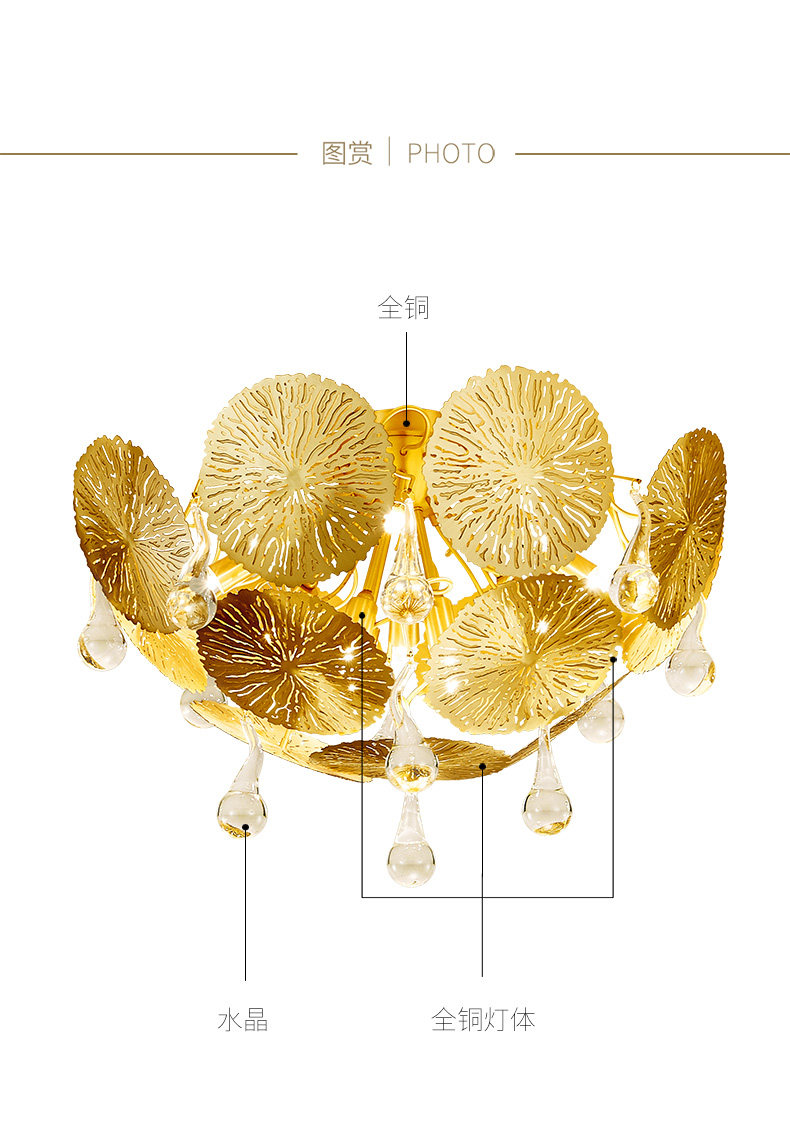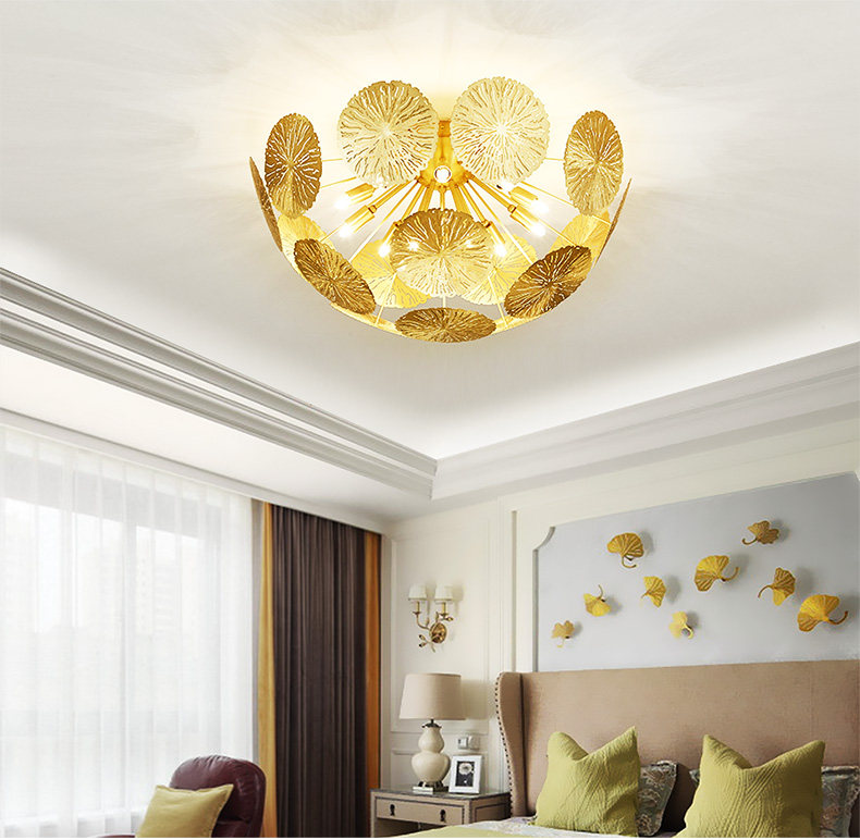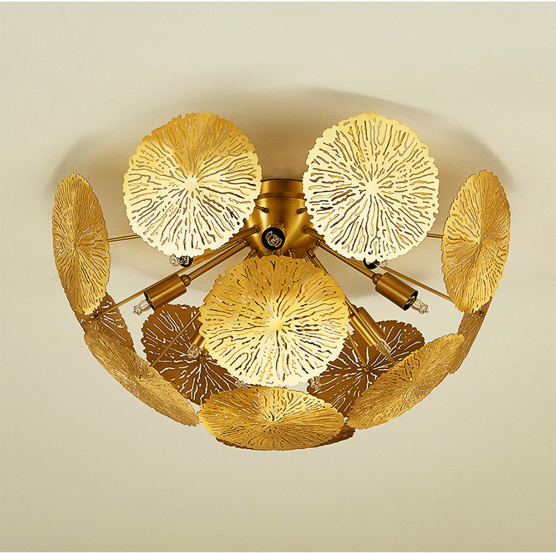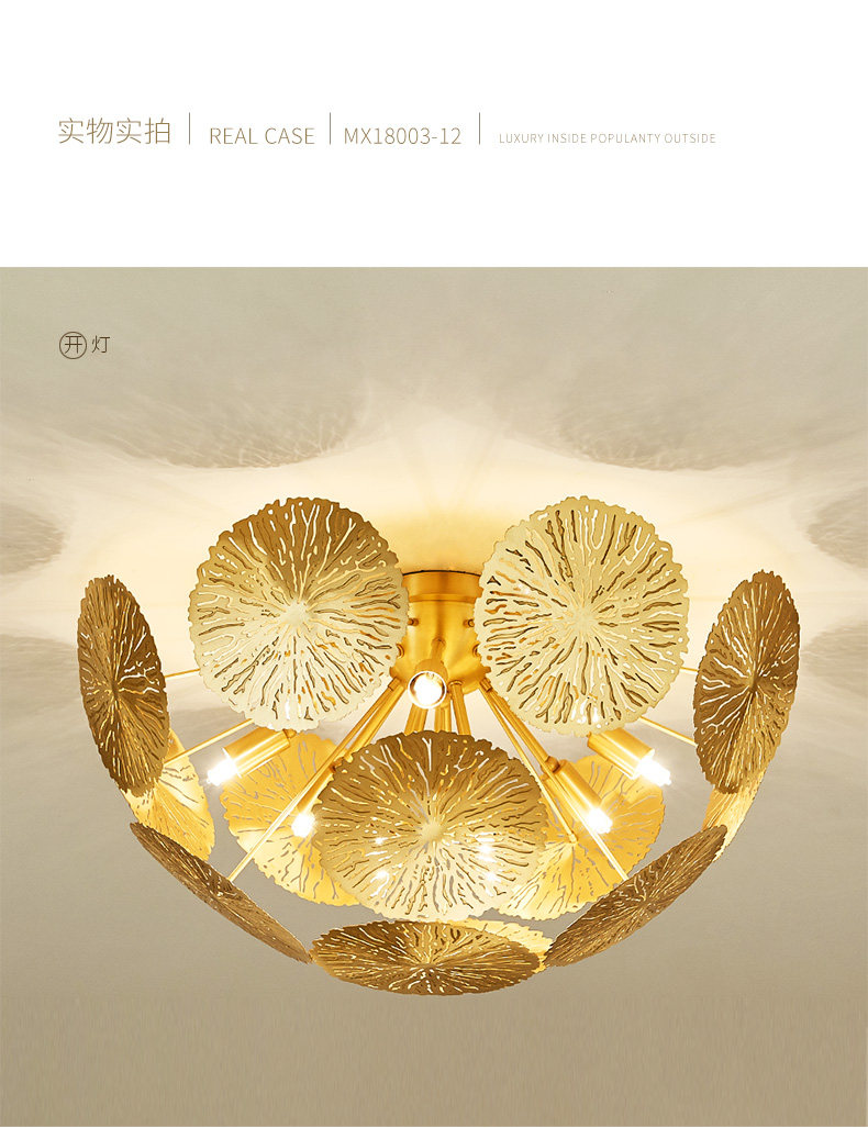 外贸专供全铜新中式客厅灯禅意轻奢设计师展厅别墅荷叶吸顶灯