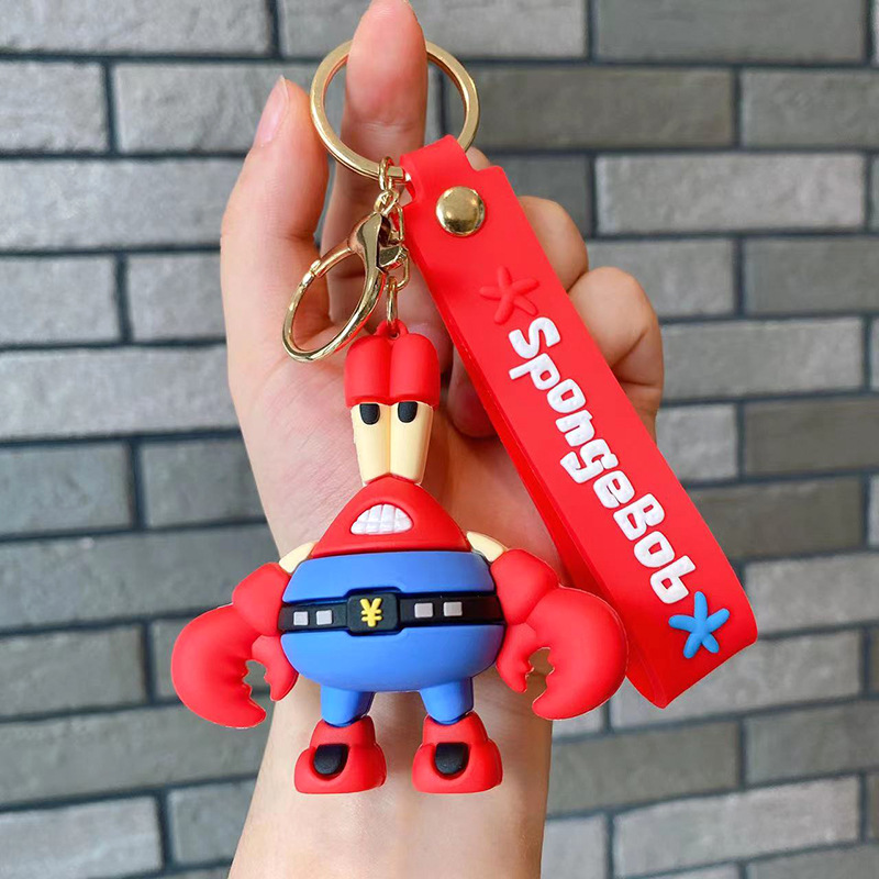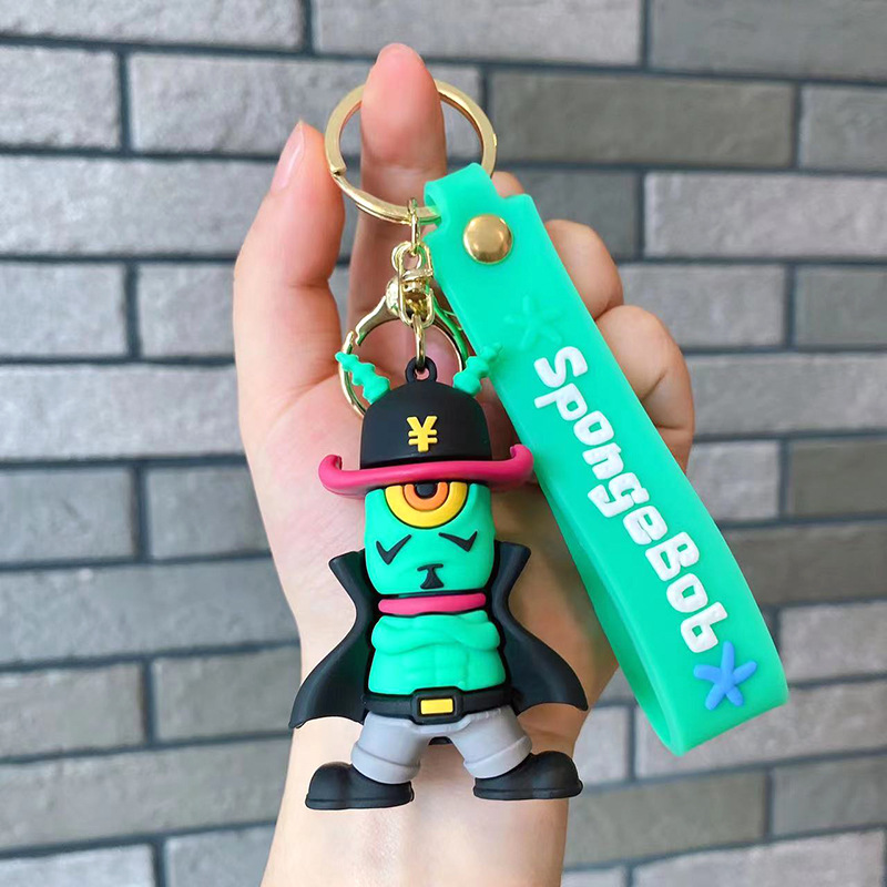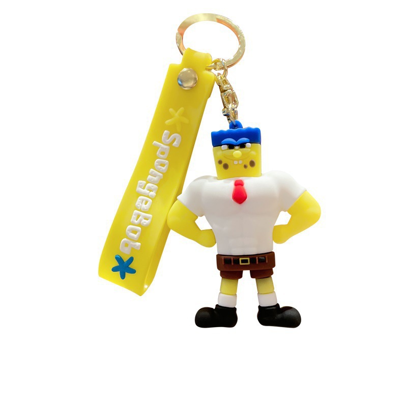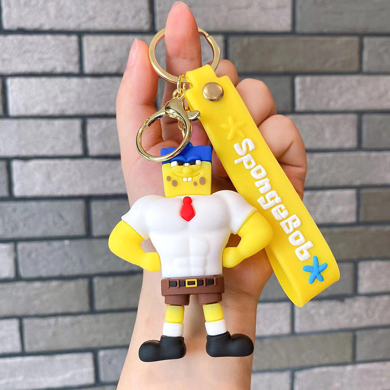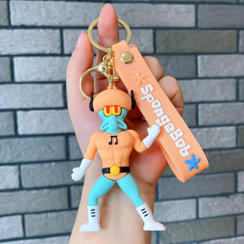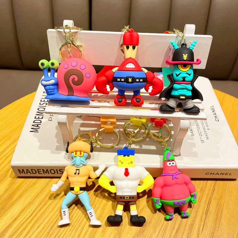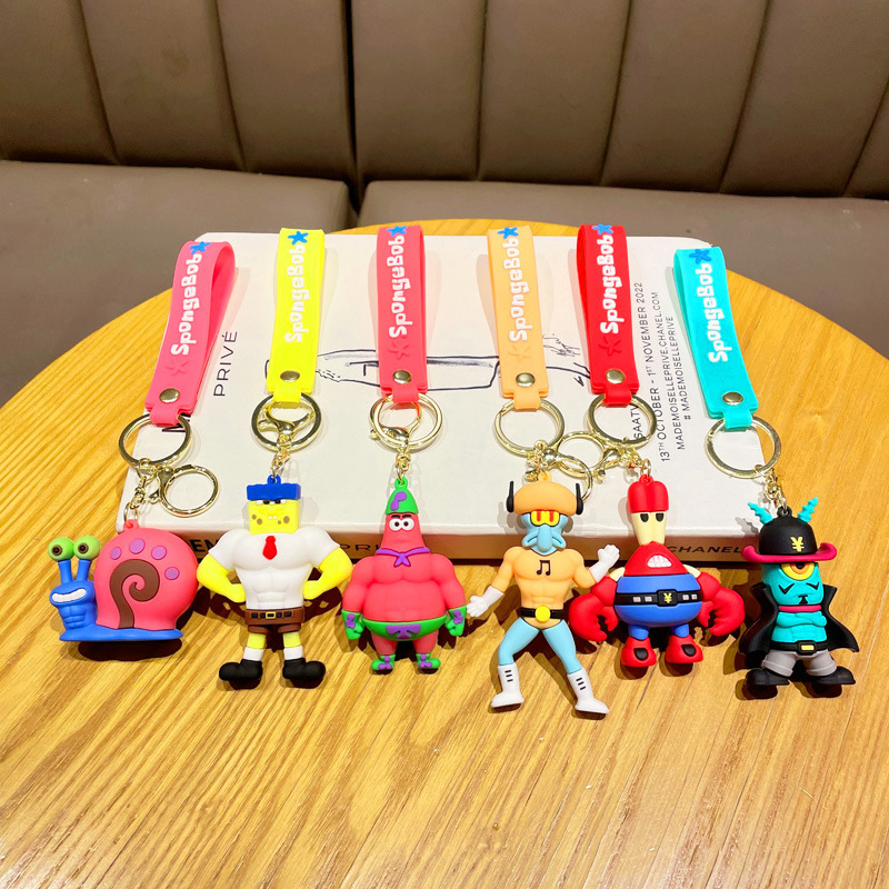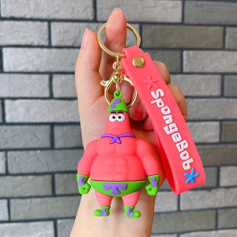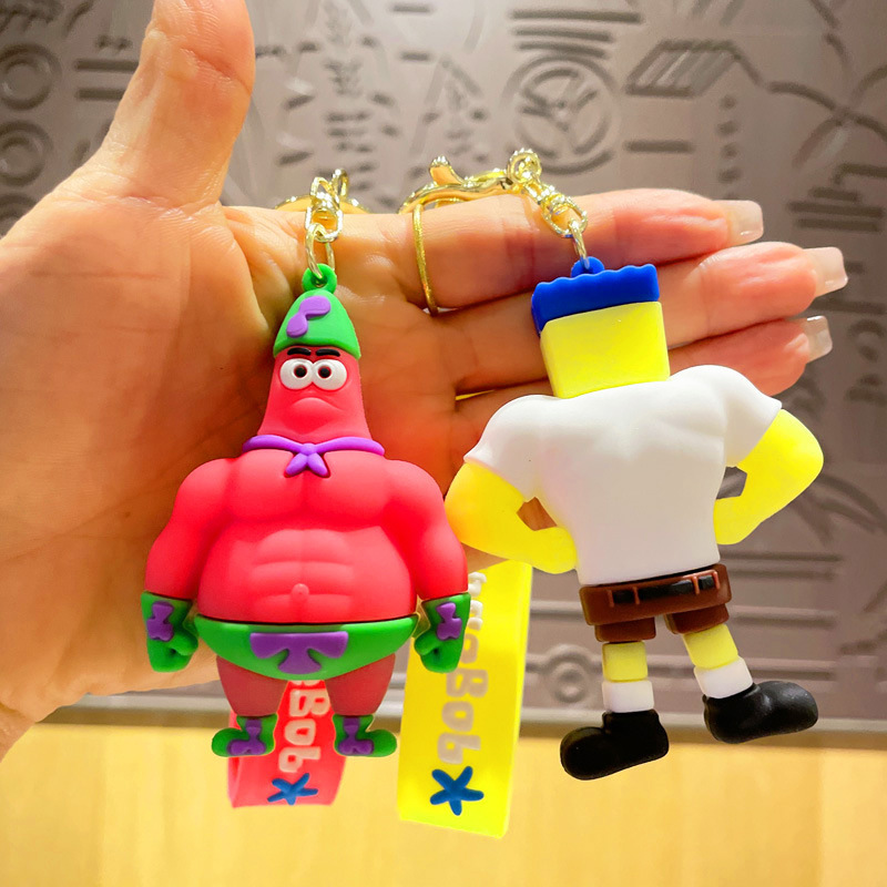 健身海绵宝宝钥匙链派大星卡通挂饰钥匙挂件硅胶公仔汽车钥匙扣