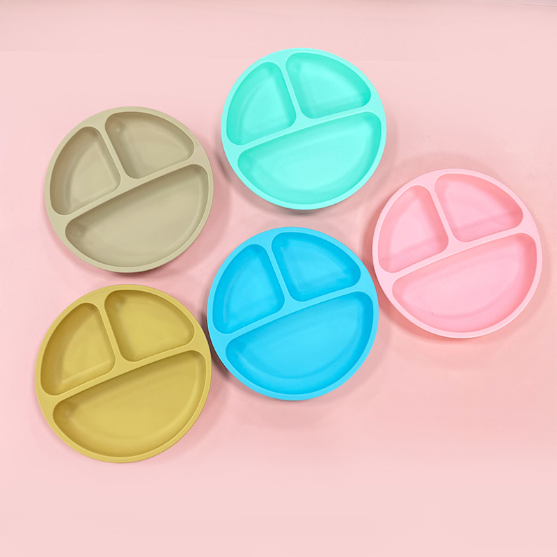 儿童硅胶餐盘 食品级硅胶婴儿辅食碗带吸盘 宝宝一体三格硅胶餐盘