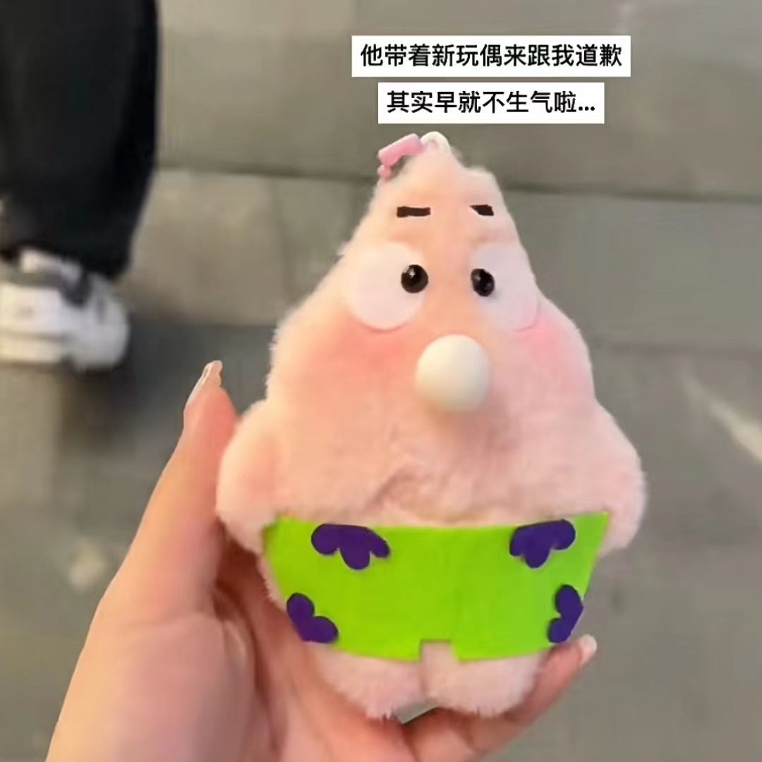 抖音同款DIY派大星海绵宝宝吐泡毛绒材料包超萌包包挂件朋友礼物