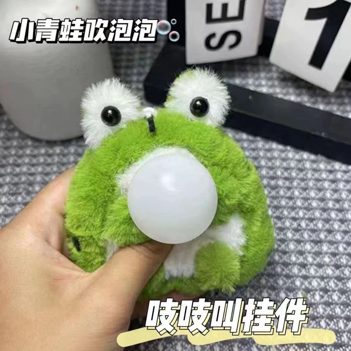 吱吱叫青蛙挂件吐泡泡玩偶手工diy材料包七夕情侣礼物包包小挂件