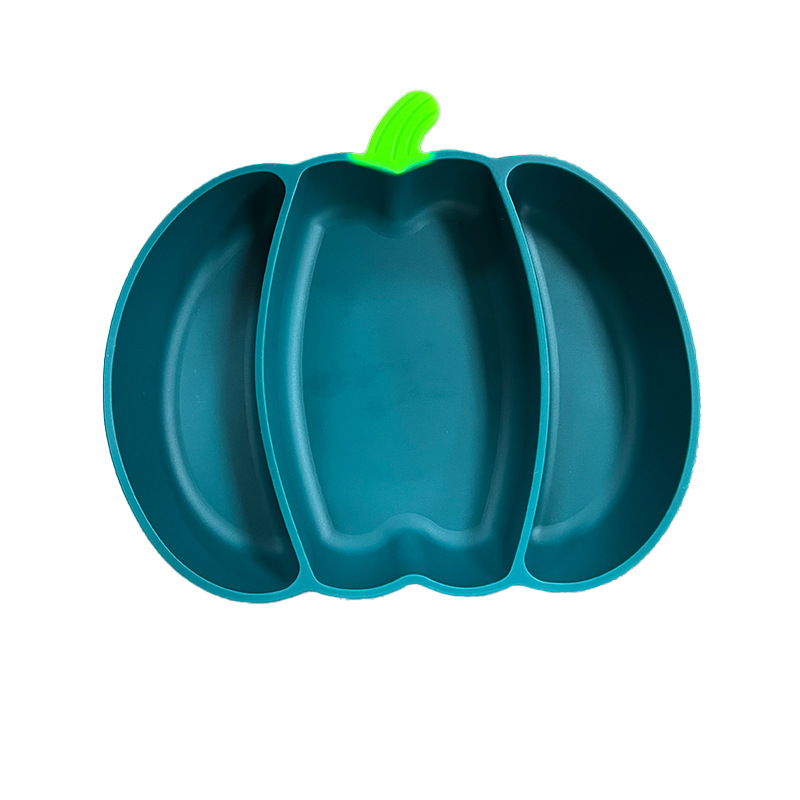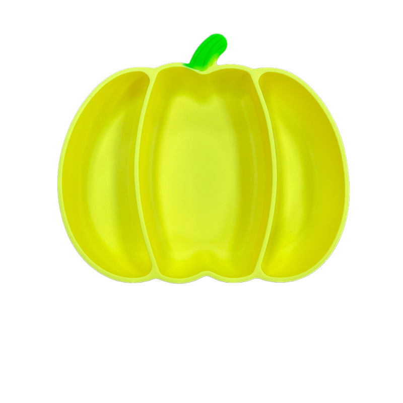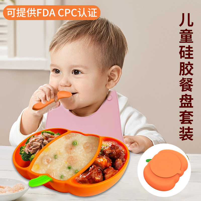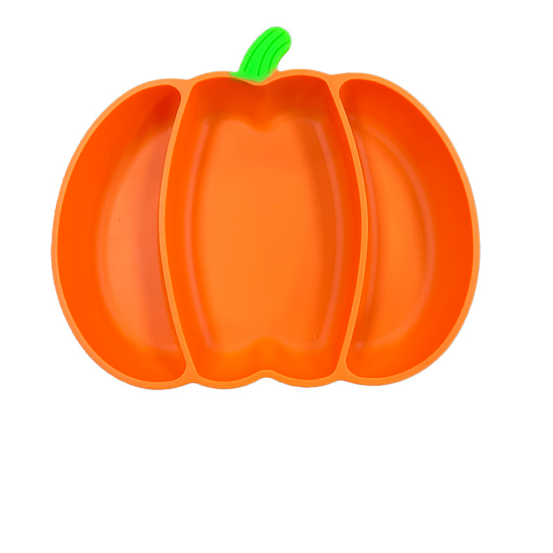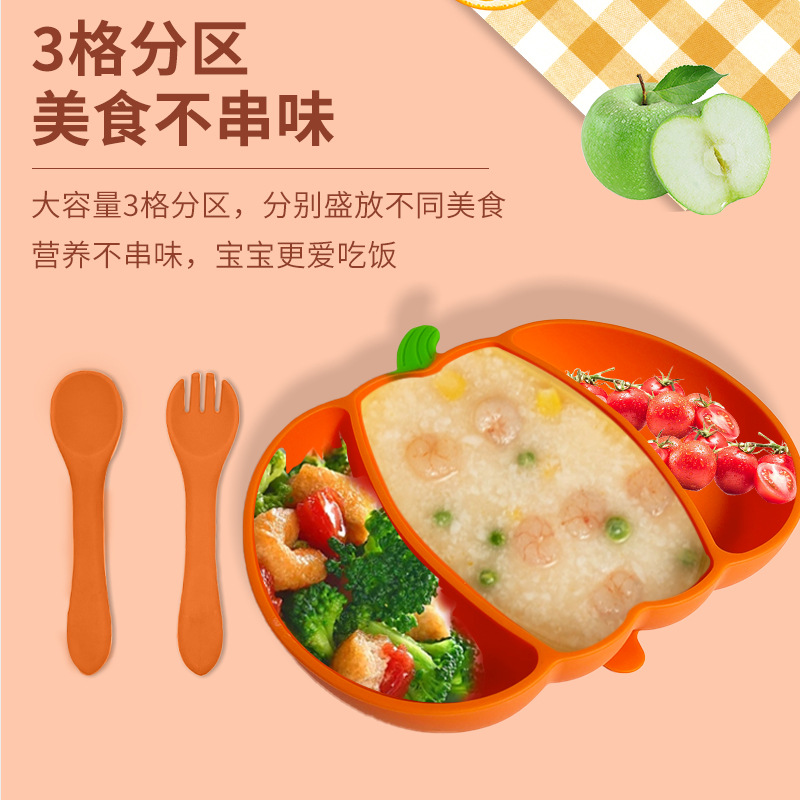 跨境新品万圣节南瓜婴儿硅胶餐盘 三格宝宝辅食碗套装底部带吸盘