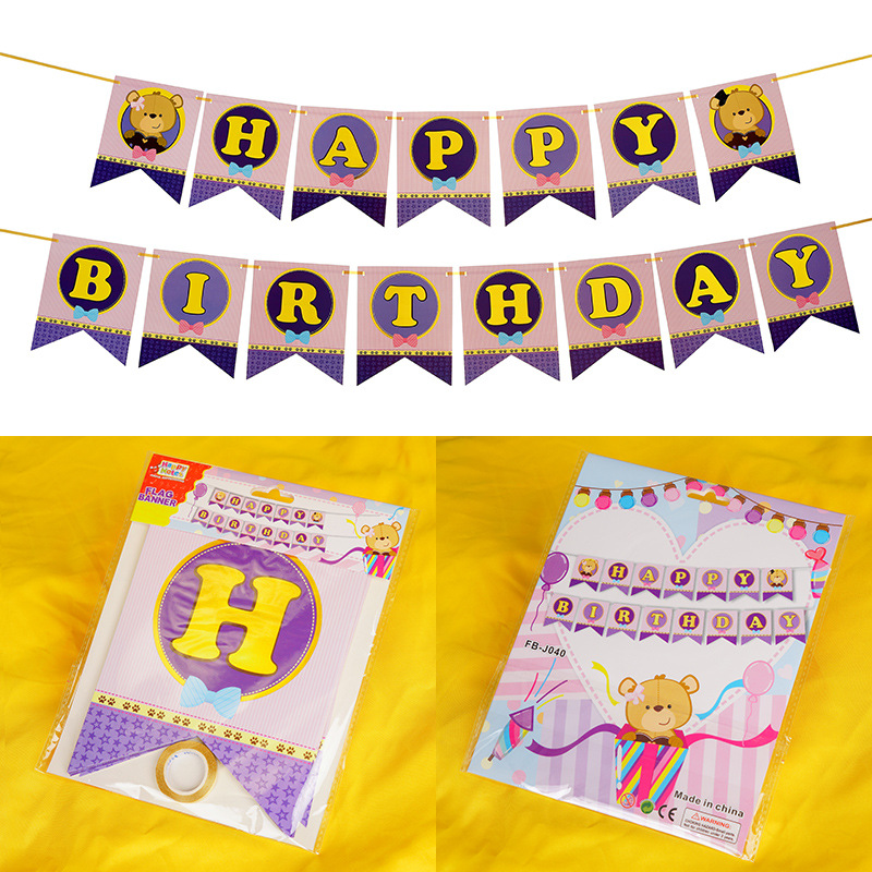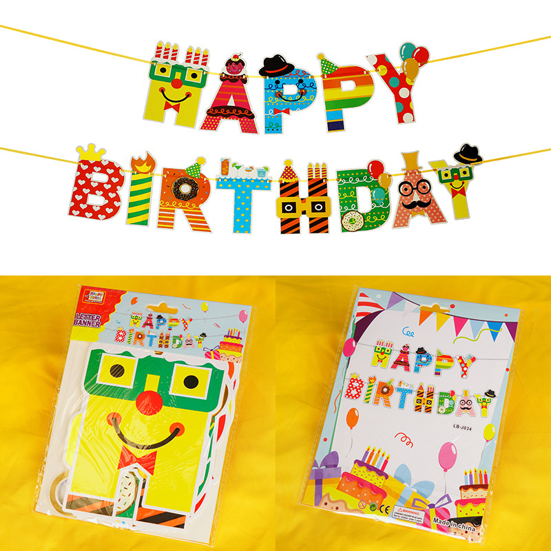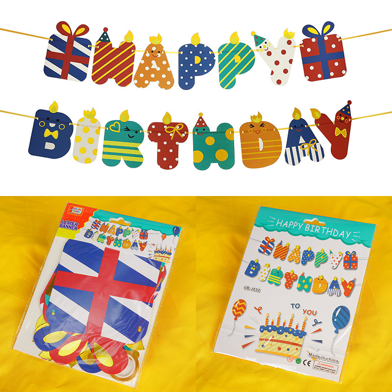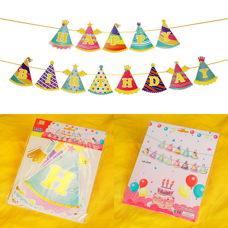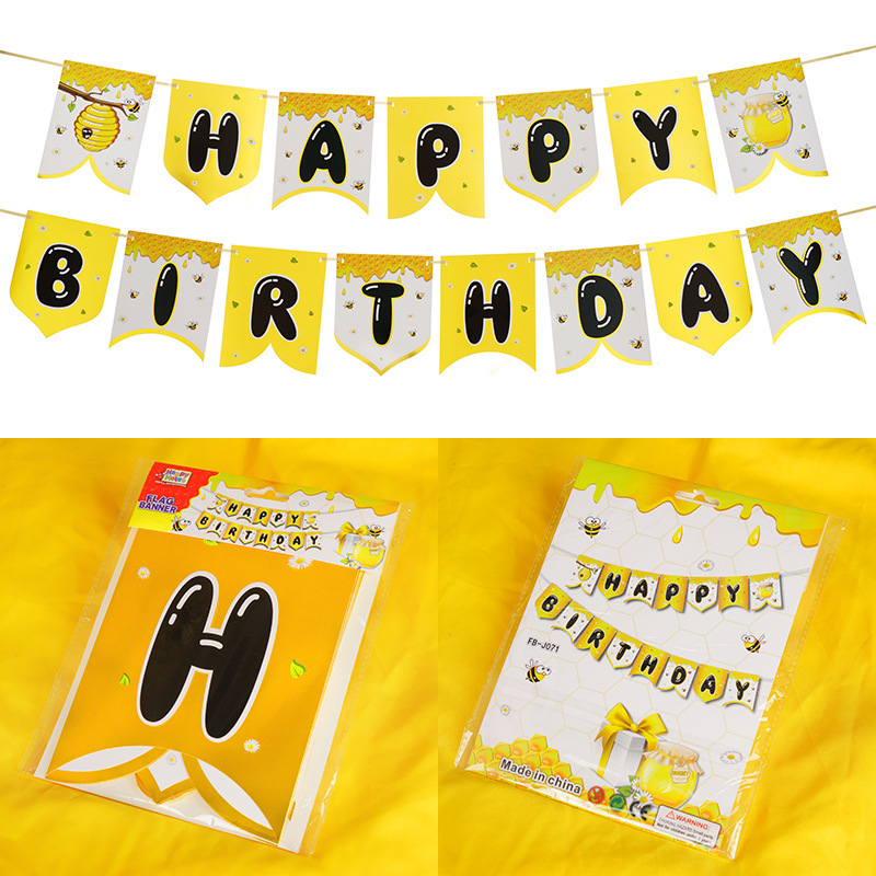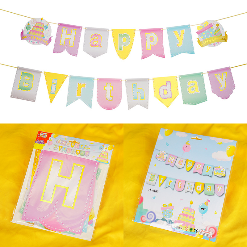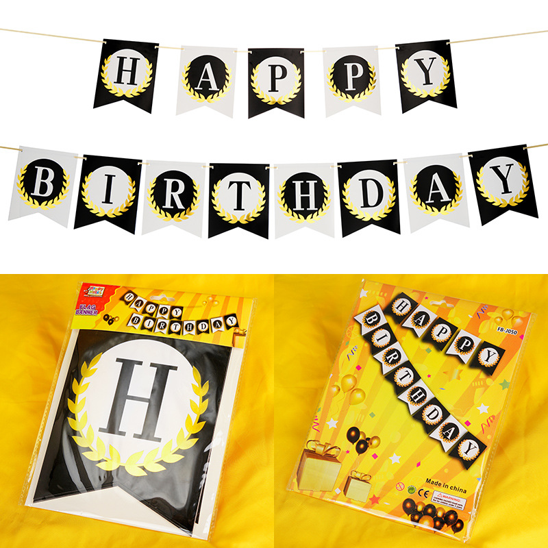 批发儿童生日快乐横幅烫金生日字母拉旗派对场景布置用品厂家直销