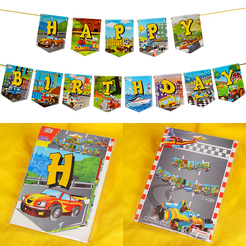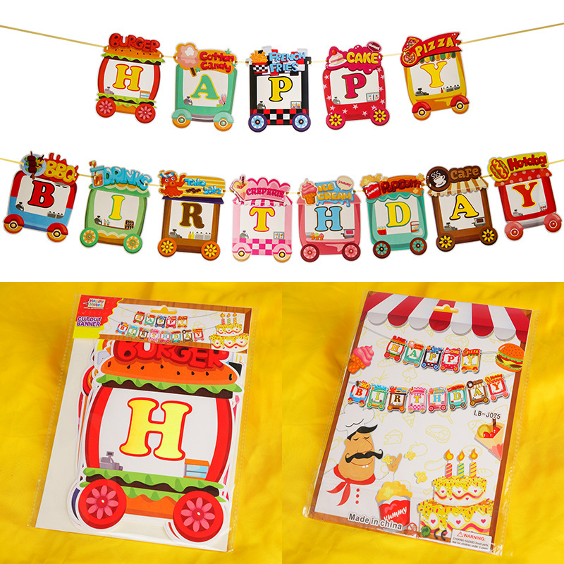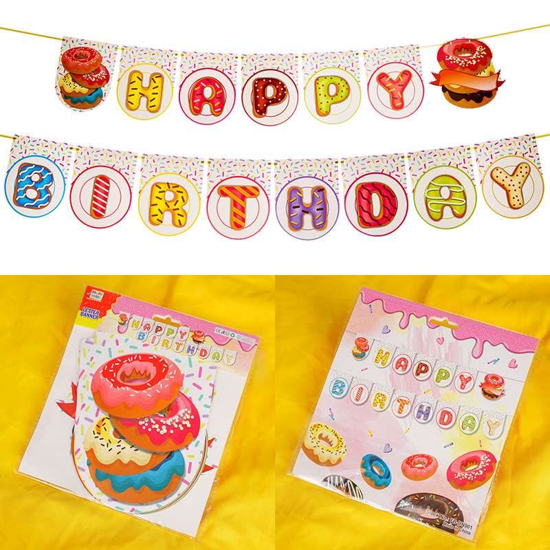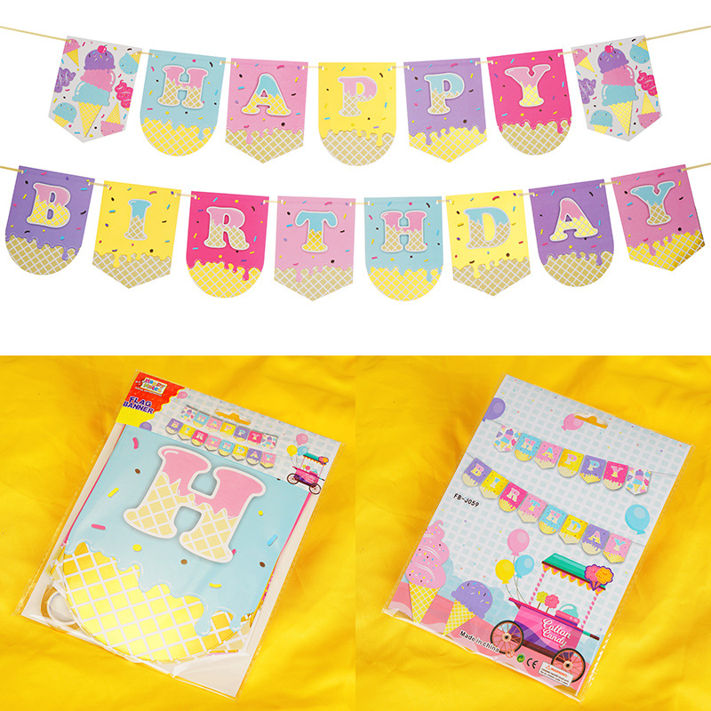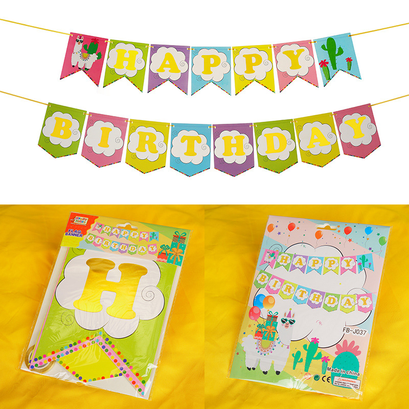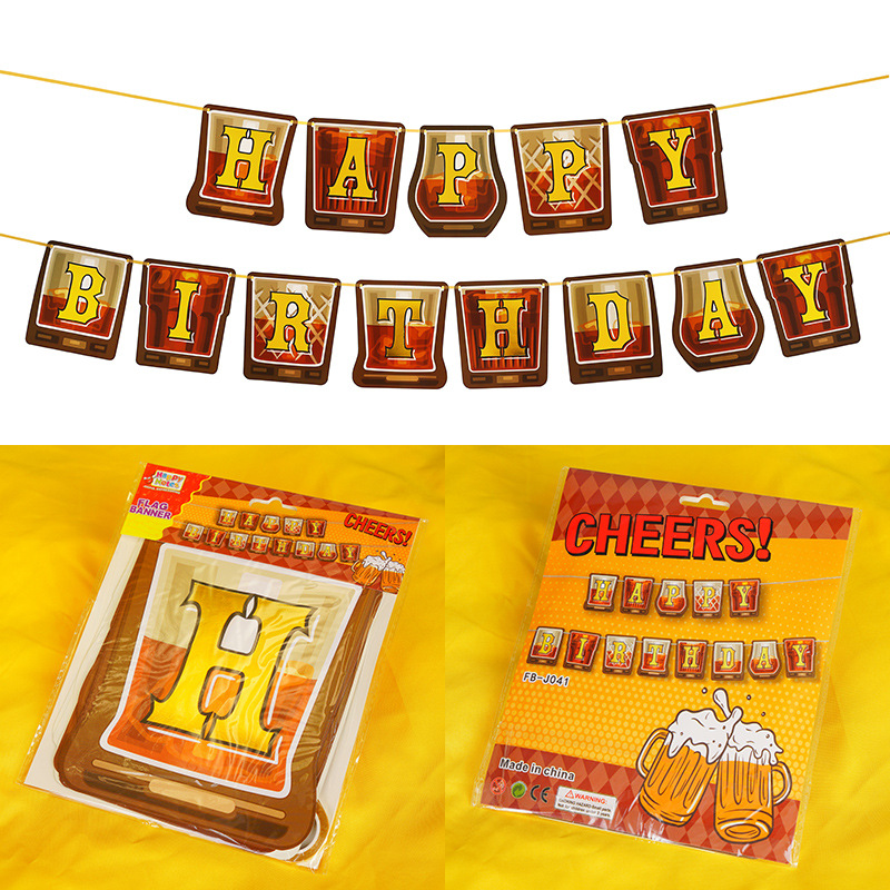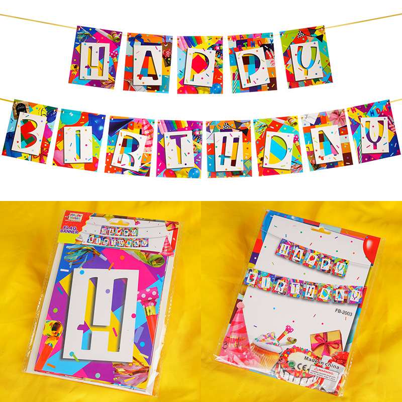 批发儿童生日快乐横幅烫金生日字母拉旗派对场景布置用品厂家直销