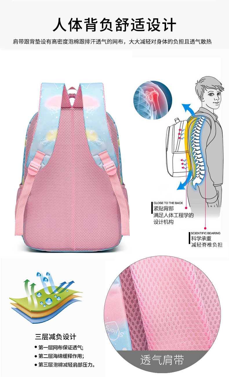 批发新款休闲小学生大容量书包 儿童1-6年级可爱轻便减负背双肩包