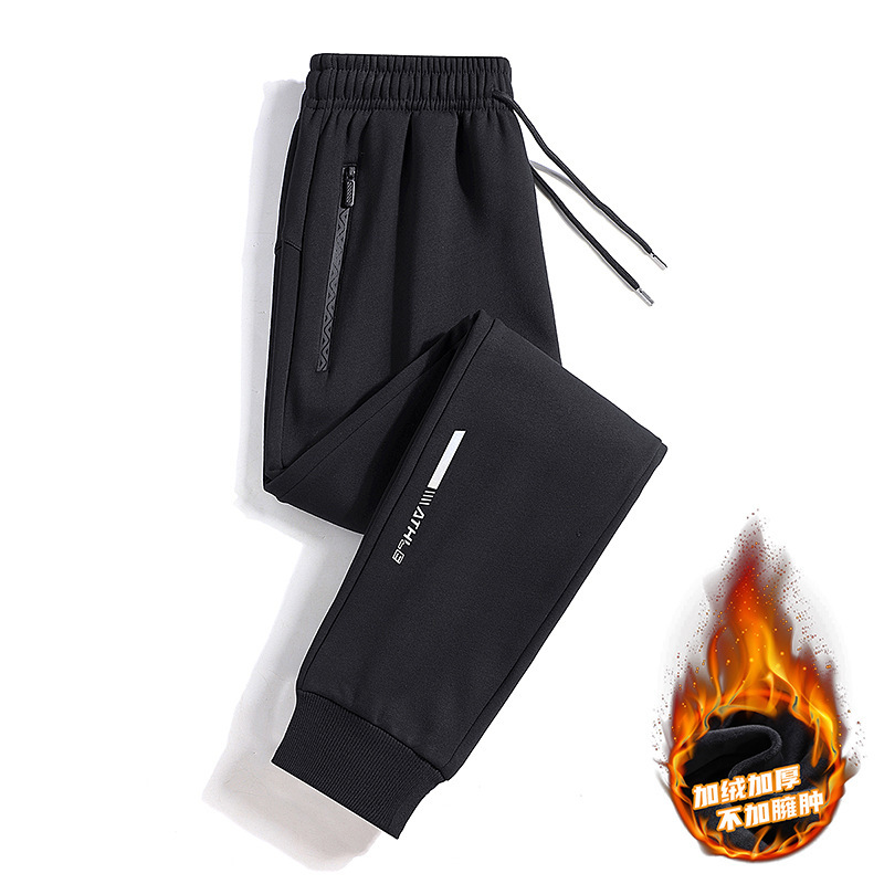 男士休闲裤2023秋冬季卫裤韩版潮流印花大码束脚运动裤男加绒加厚