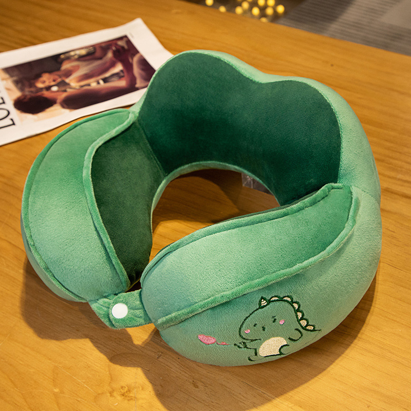 新款卡通动物驼峰U枕办公室车载护颈枕绿色恐龙便携旅行枕可批发