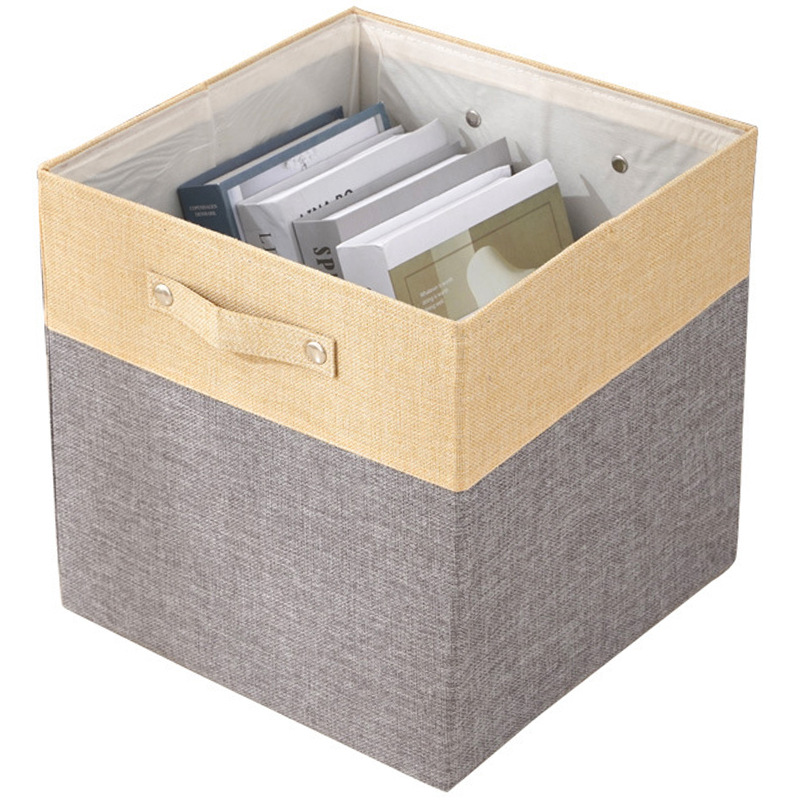 卧室整理衣物玩具用收纳篮 折叠亚麻材质多功能收纳篮现货可批发