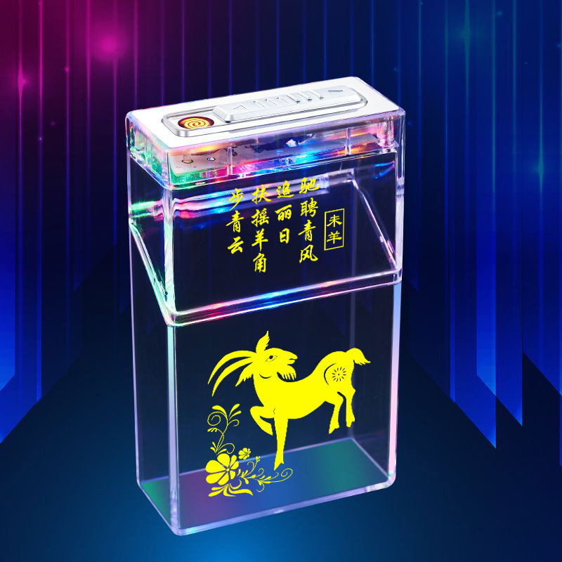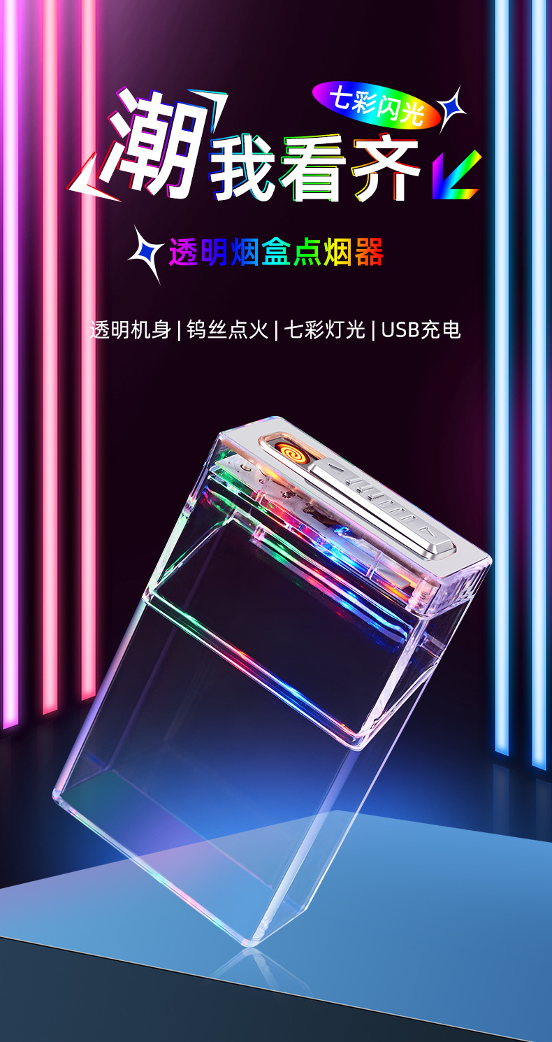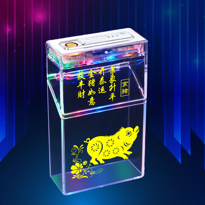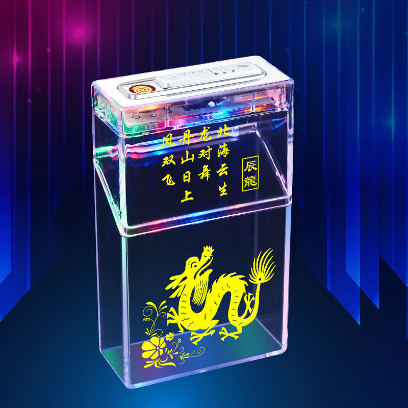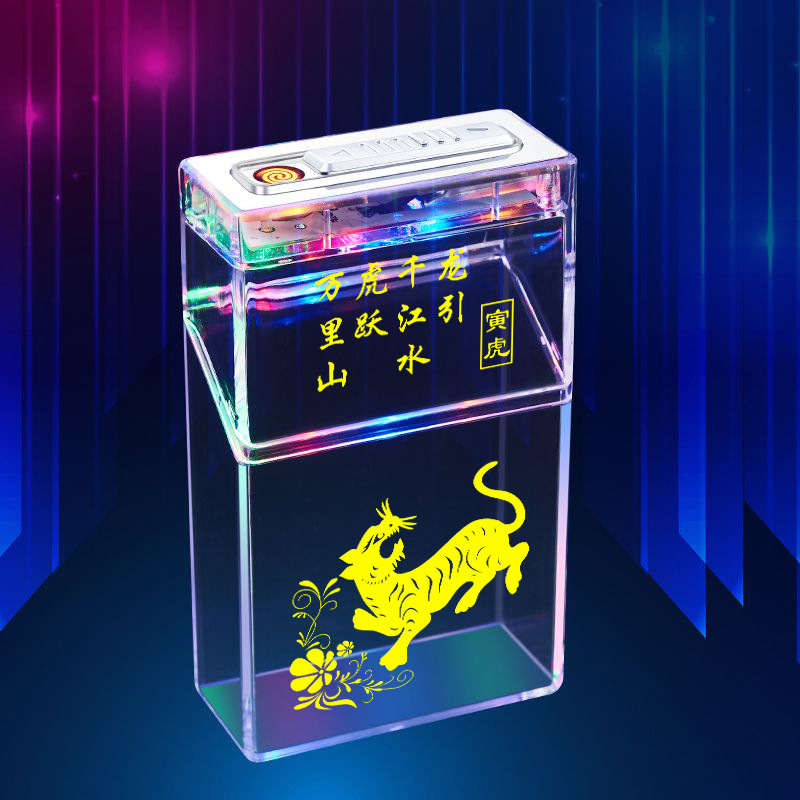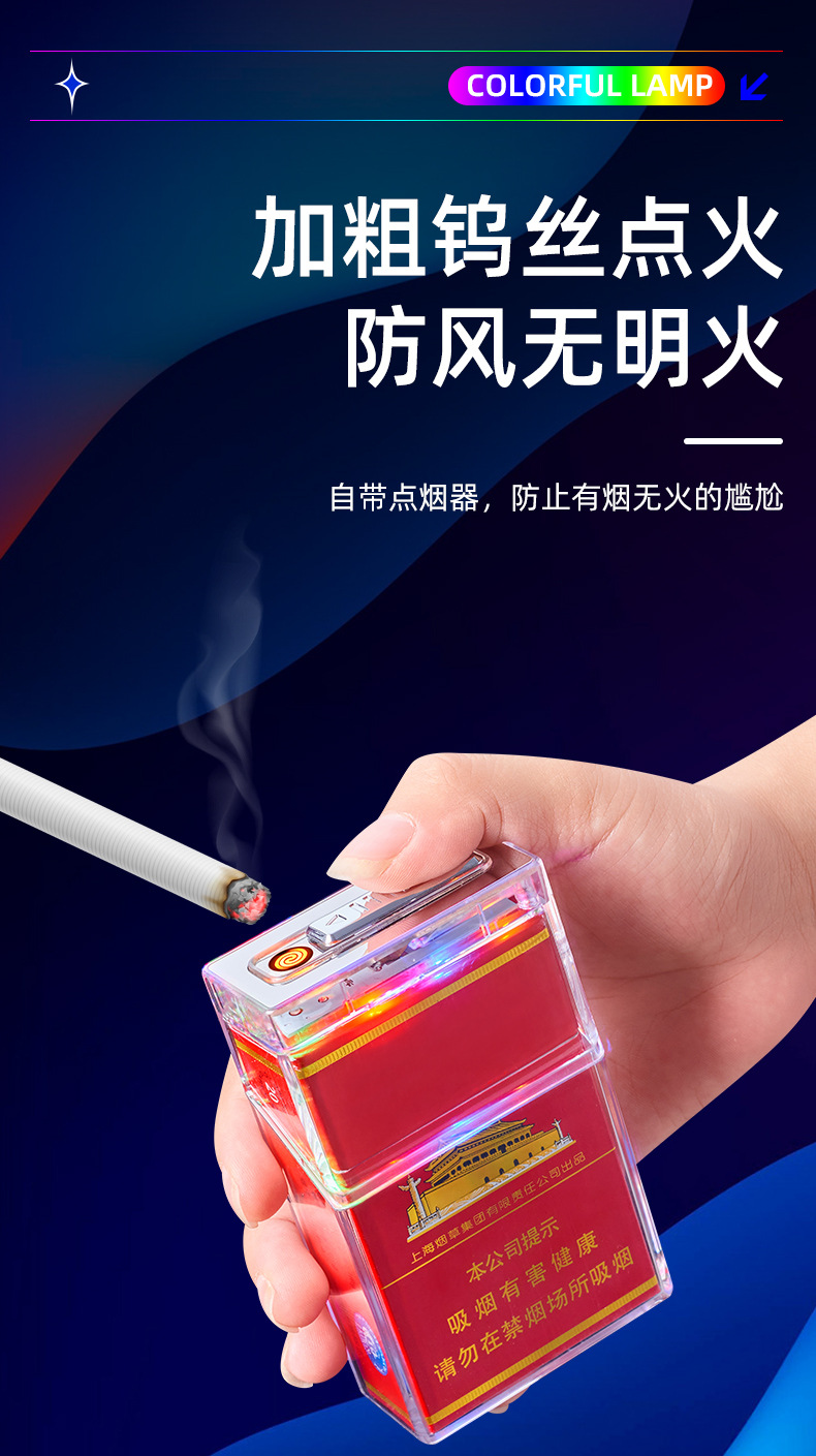 网红烟盒带火机透明烟盒充电点烟器高端制做直销批发一件代发