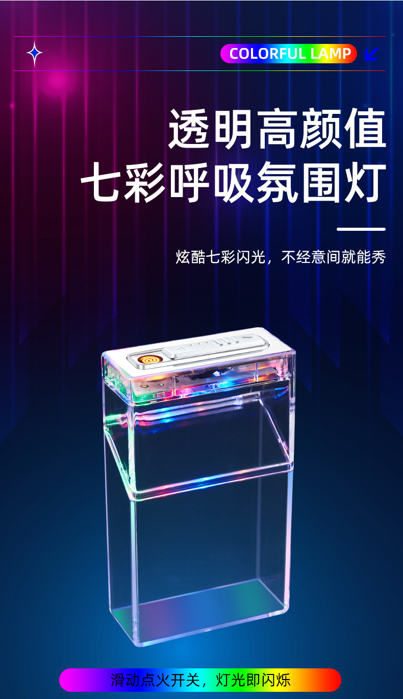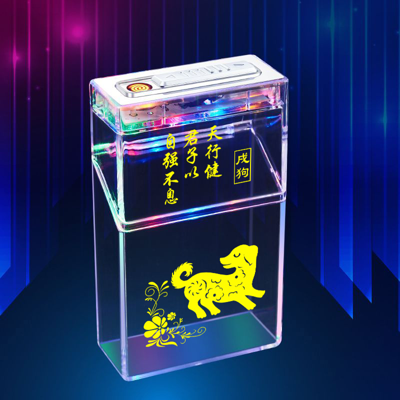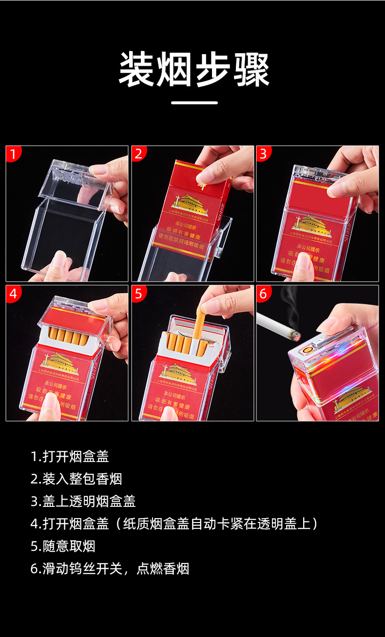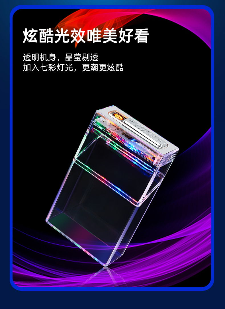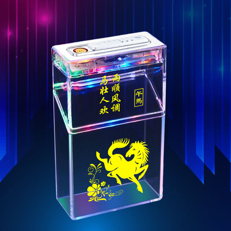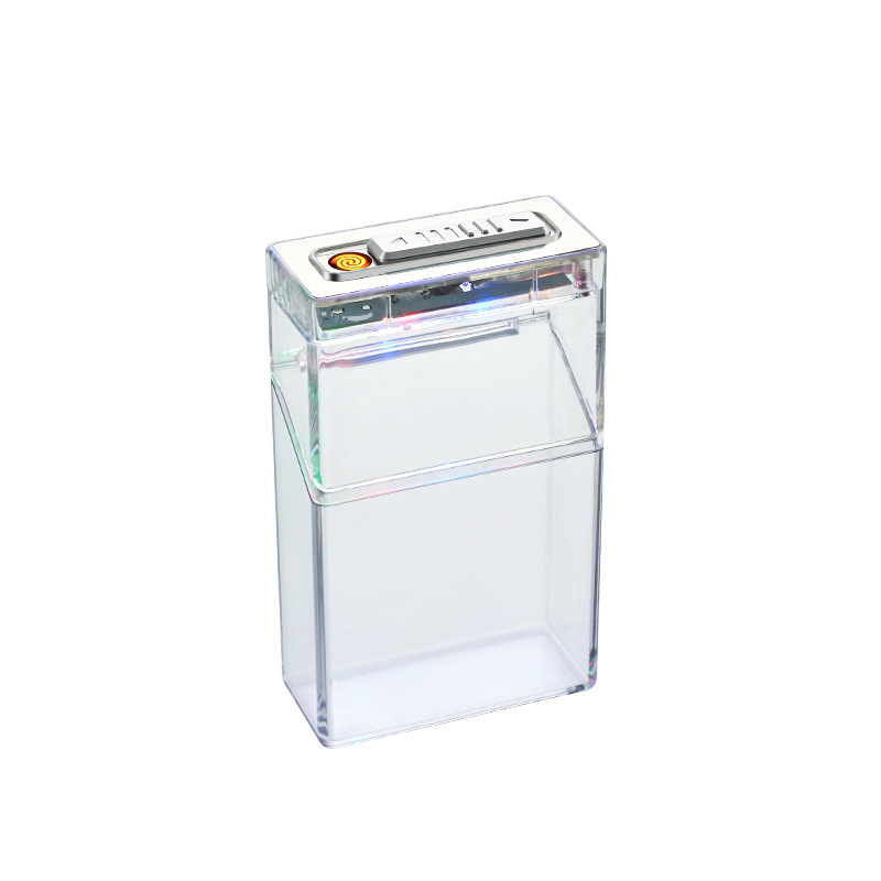 网红烟盒带火机透明烟盒充电点烟器高端制做直销批发一件代发