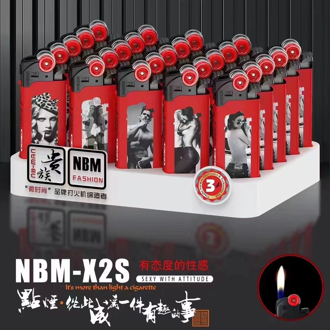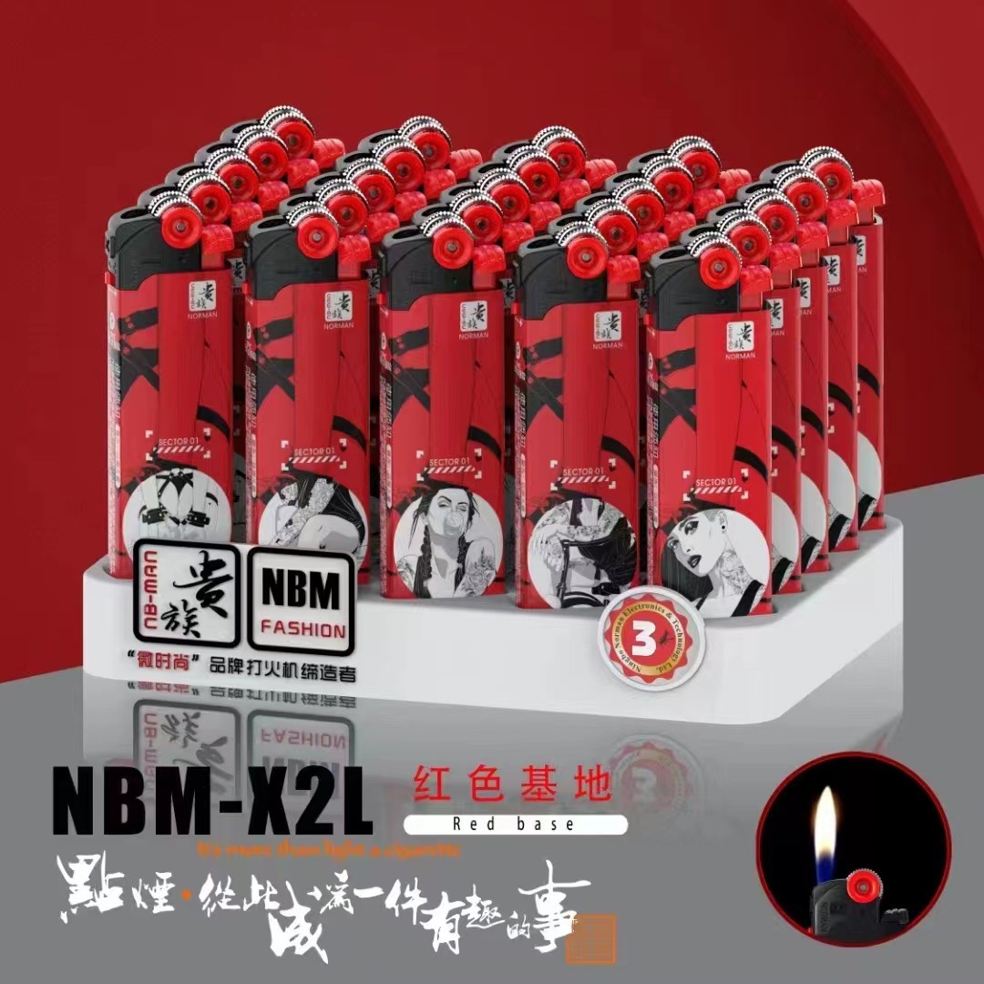 诺曼贵族砂轮一次性打火机无声滑轮火石齿轮充气火机批发创意个性