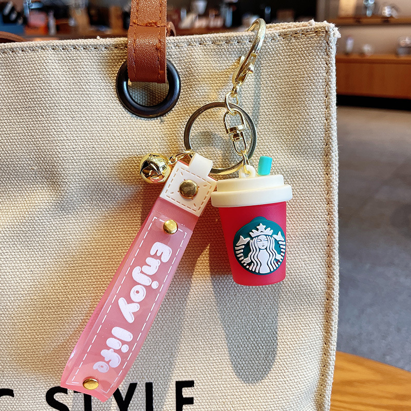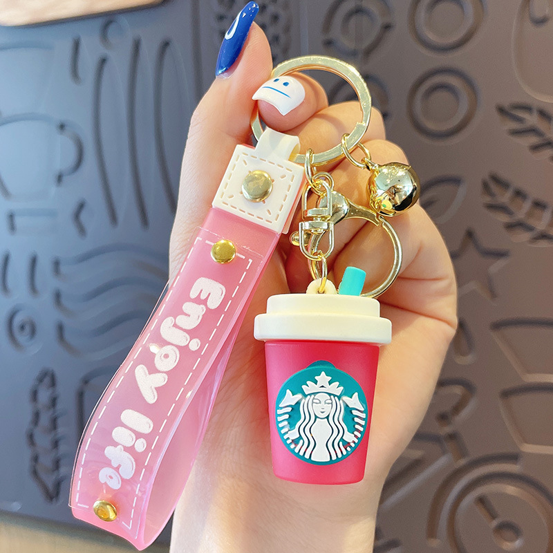 卡通雪碧钥匙扣女精致星巴克饮料瓶挂件百事可乐汽车钥匙链男批发