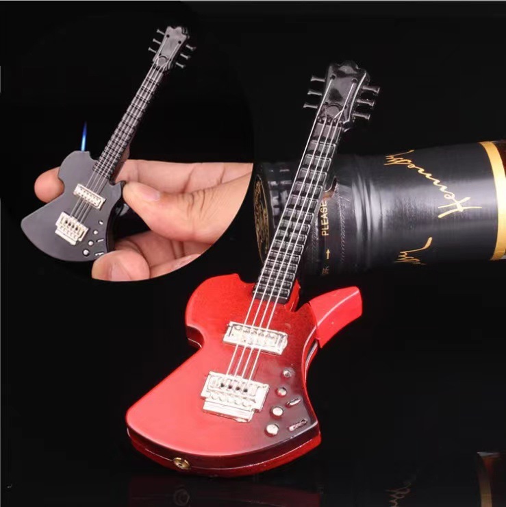 厂家批发新款创意个性小吉他仿真造型礼物充气防风打火机