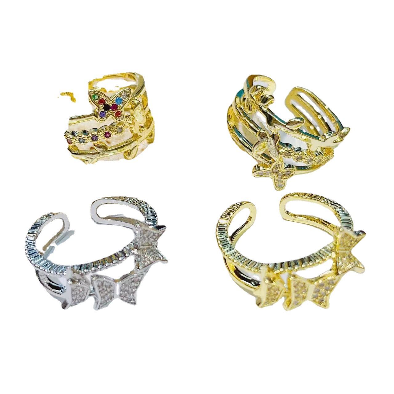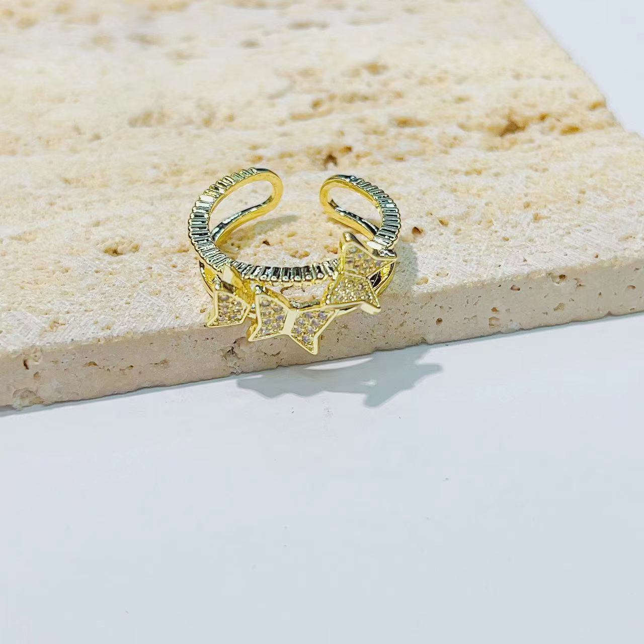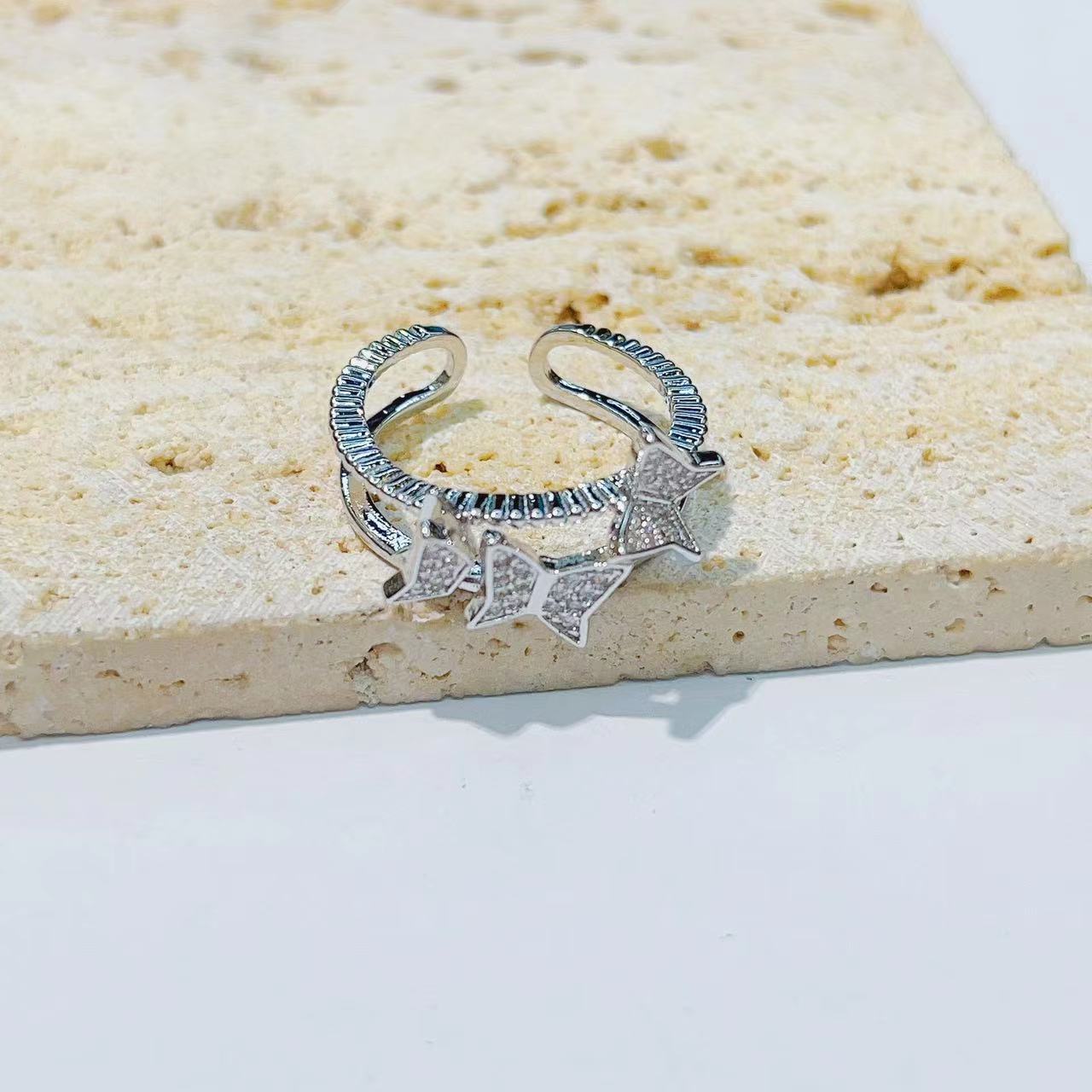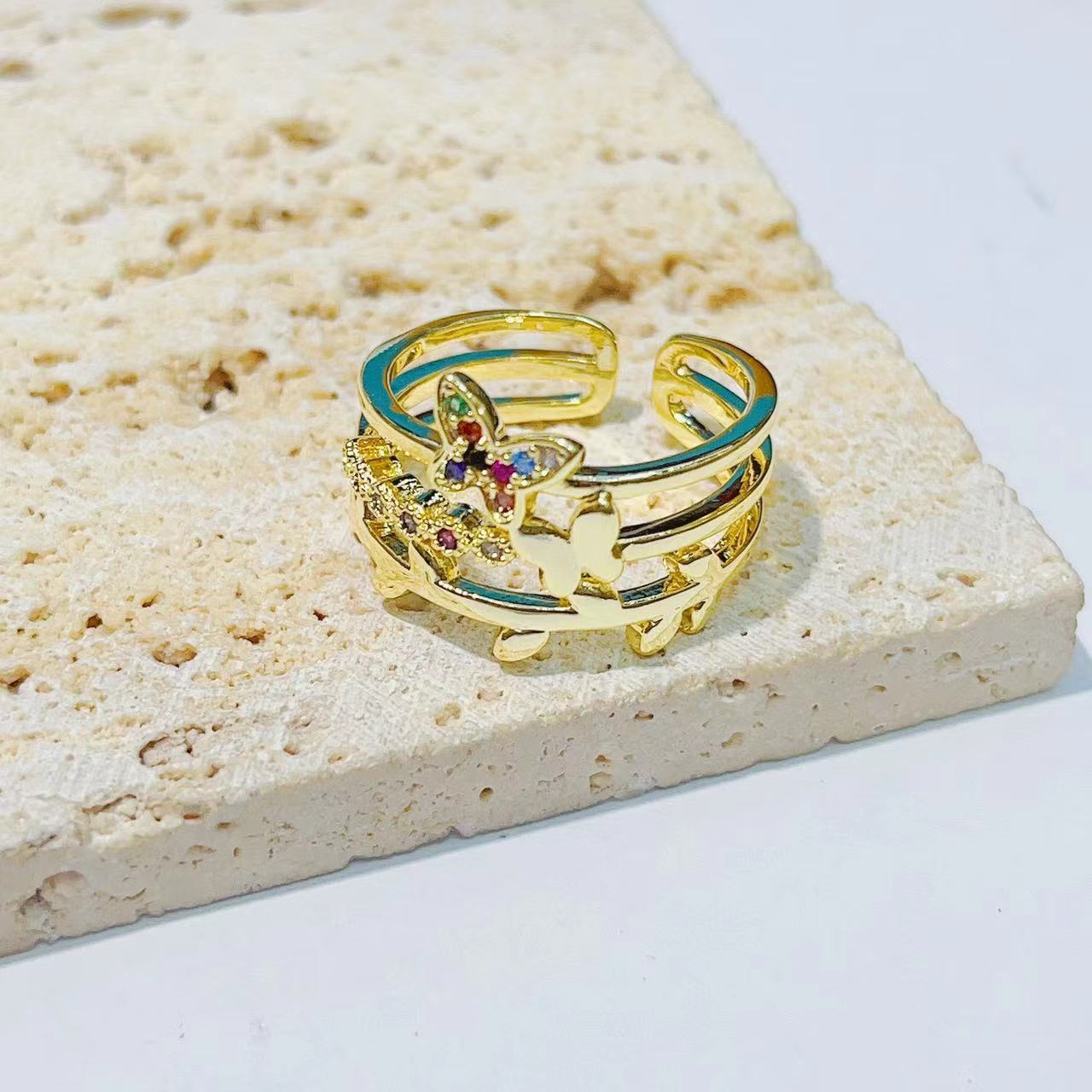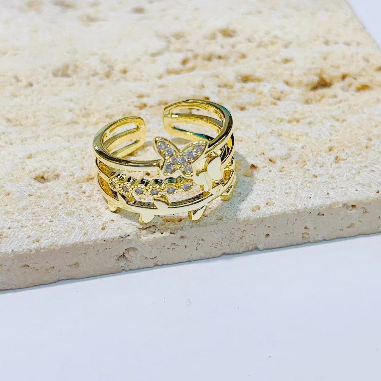日韩简约蝴蝶铜锆石开口戒指女网红复古指环2023新款小众设计
