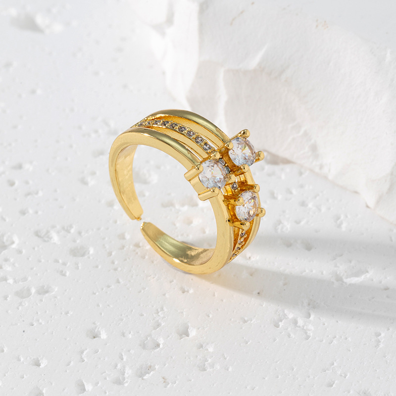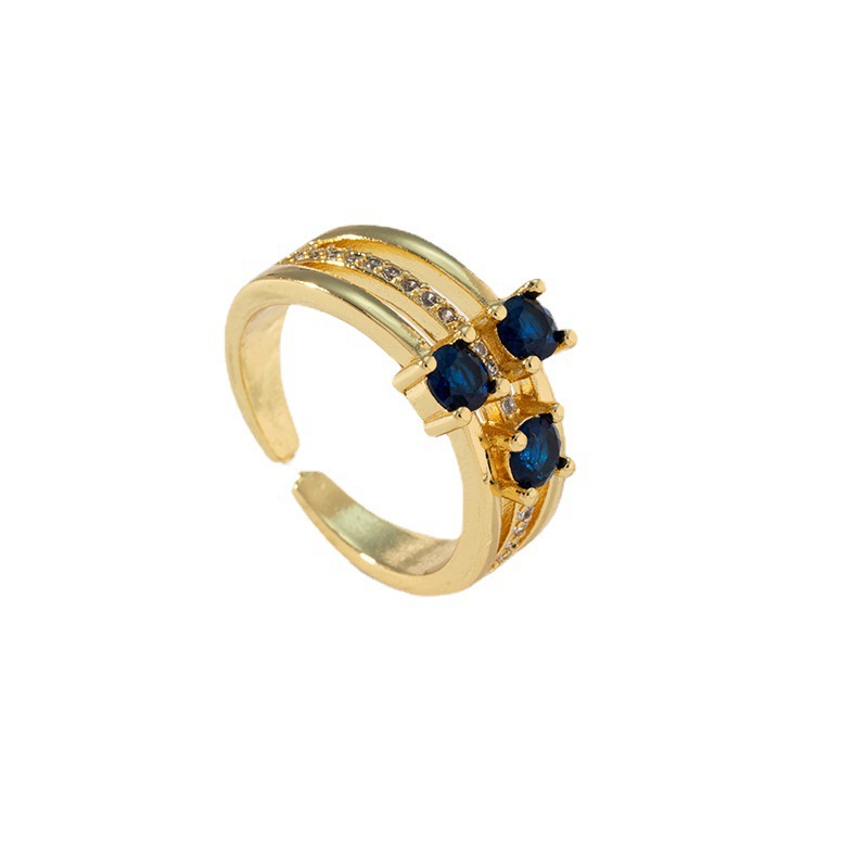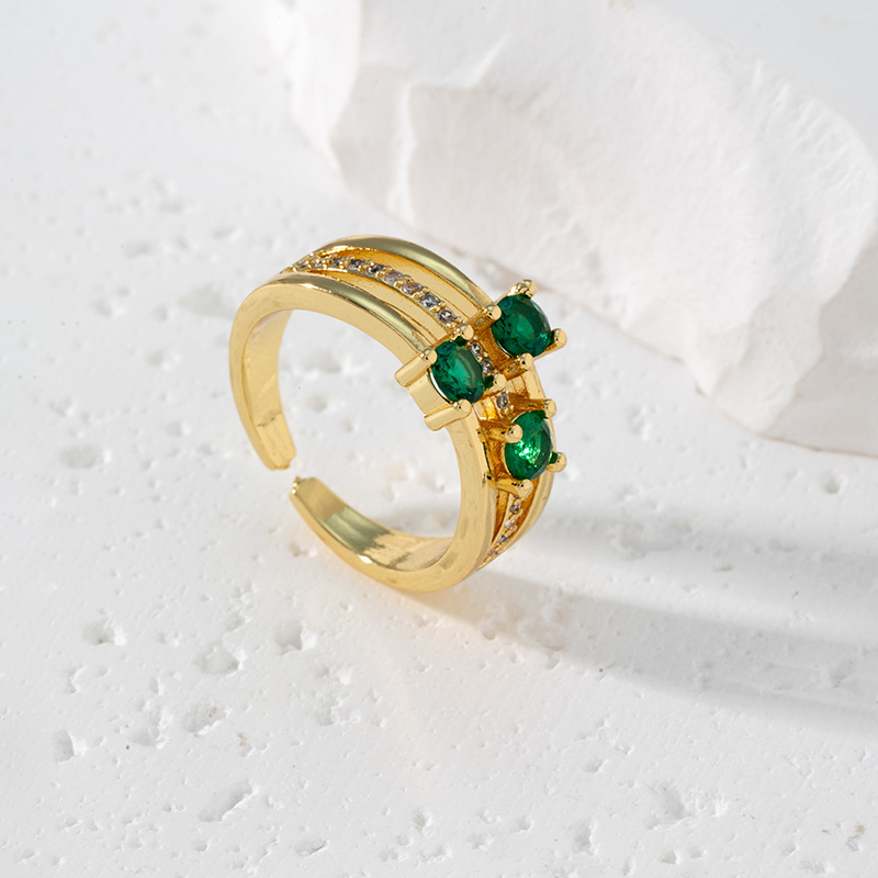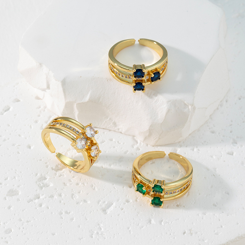 欧美跨境小众铜镀18K真金微镶满锆彩色圆开口戒指女食指跨境饰品