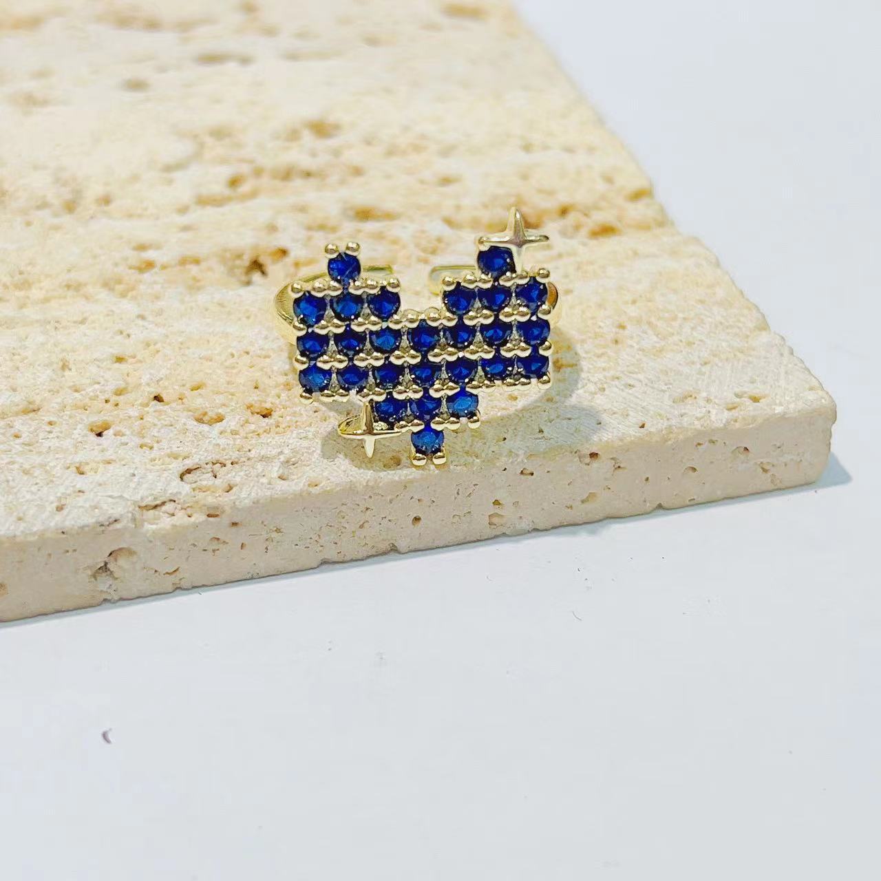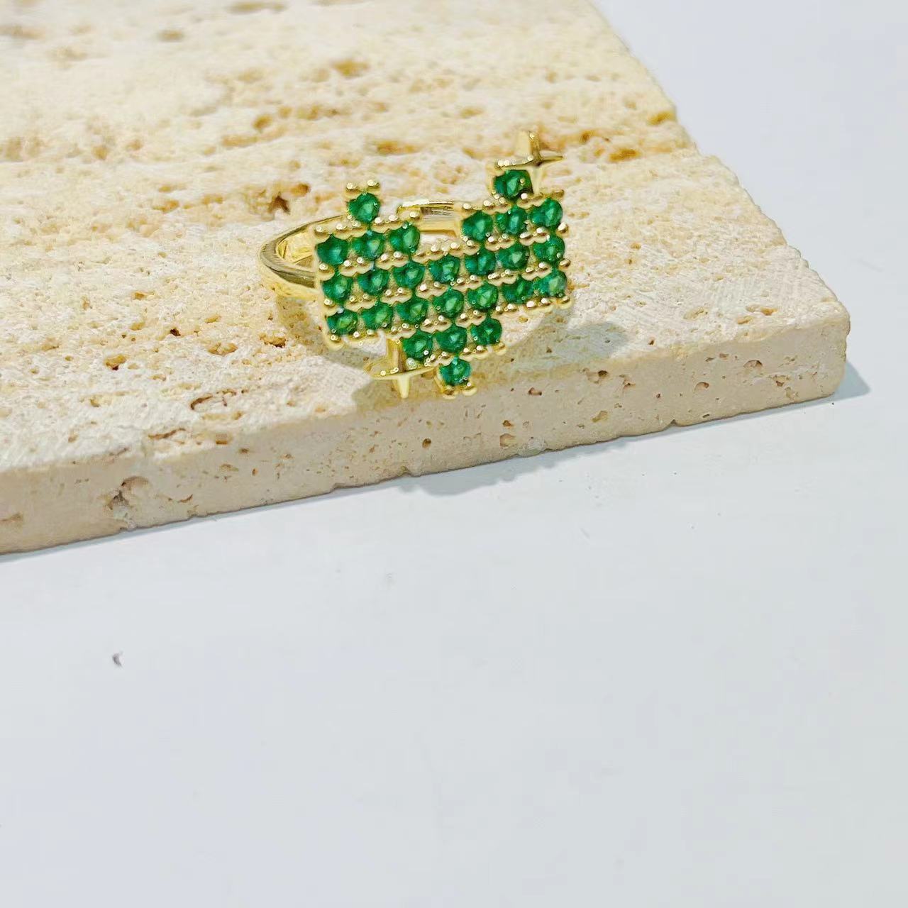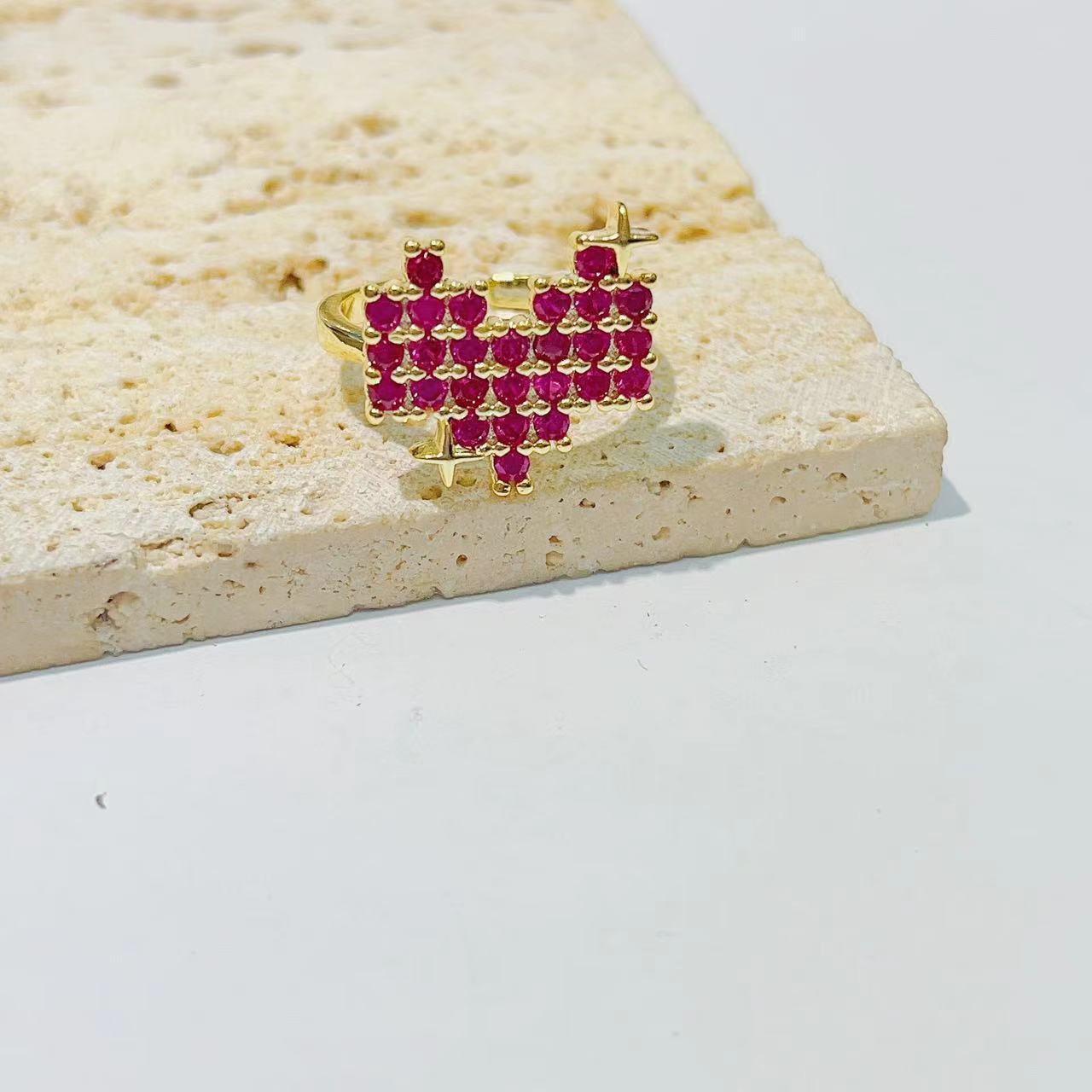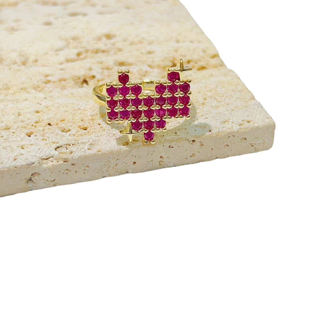 欧美风时尚潮流轻奢个性潮人铜锆石开口可调节多彩桃心指环饰品