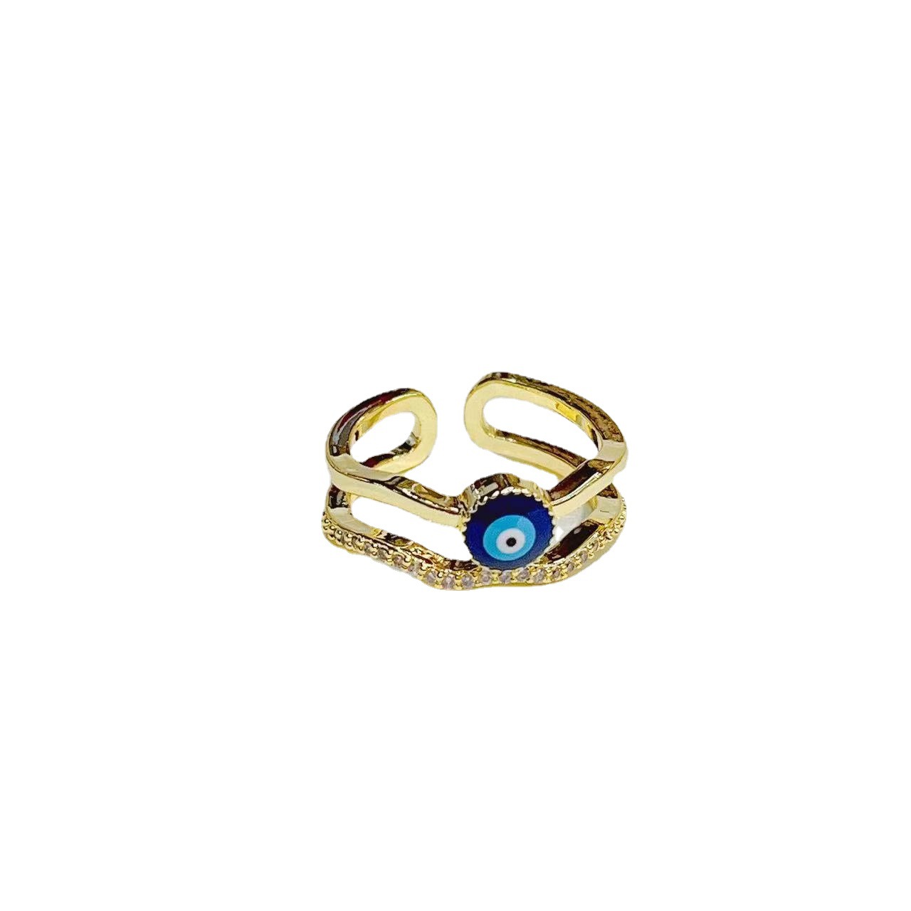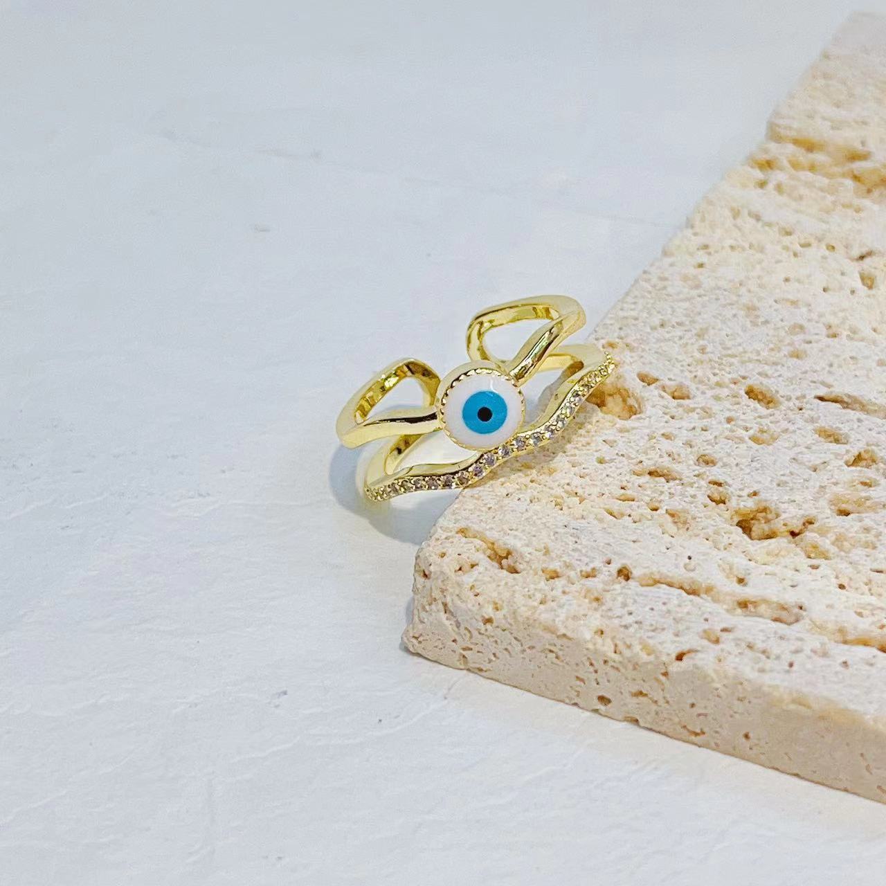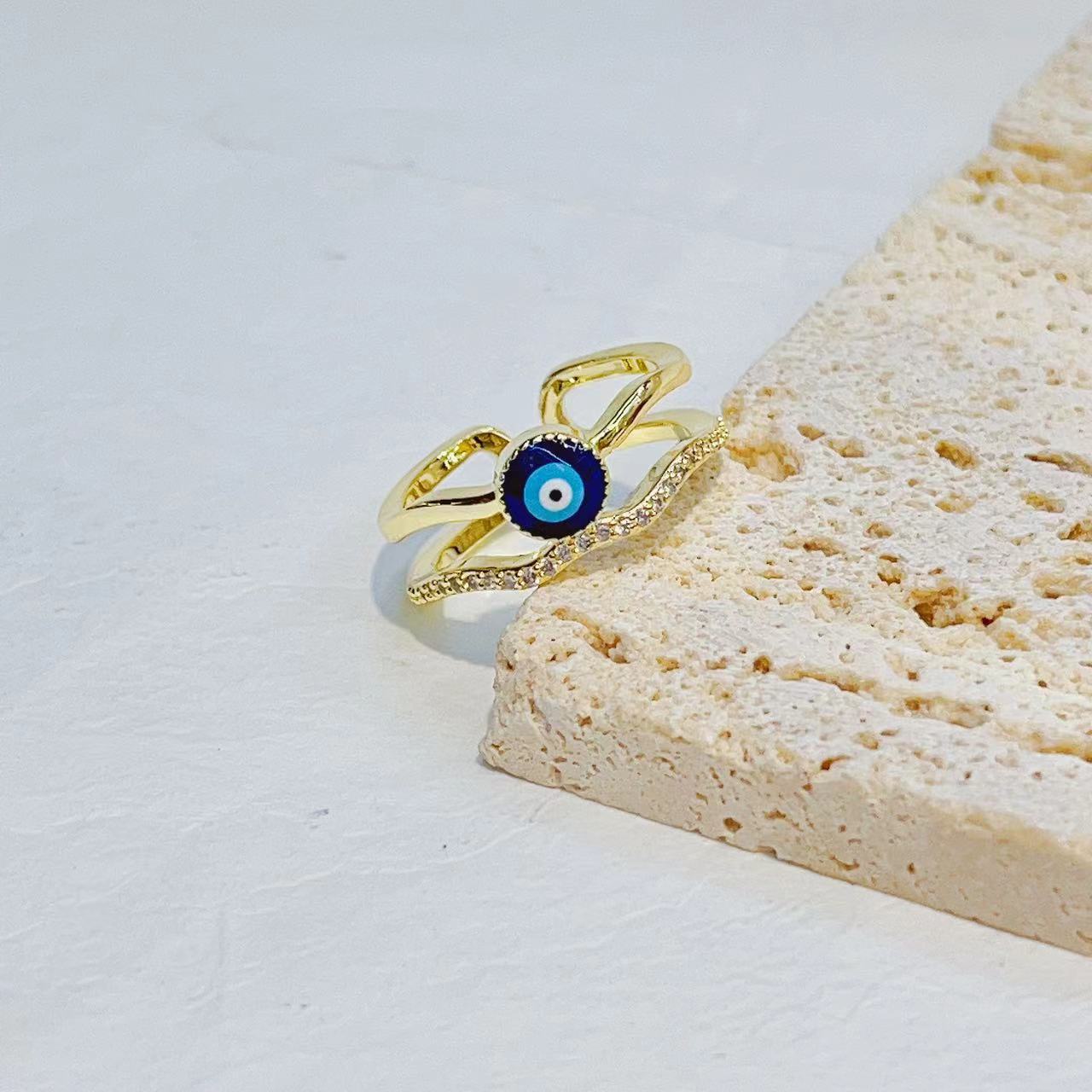 欧美时尚新品恶魔之眼开口戒 镂空波浪形底油戒指铜镀18K跨境货源