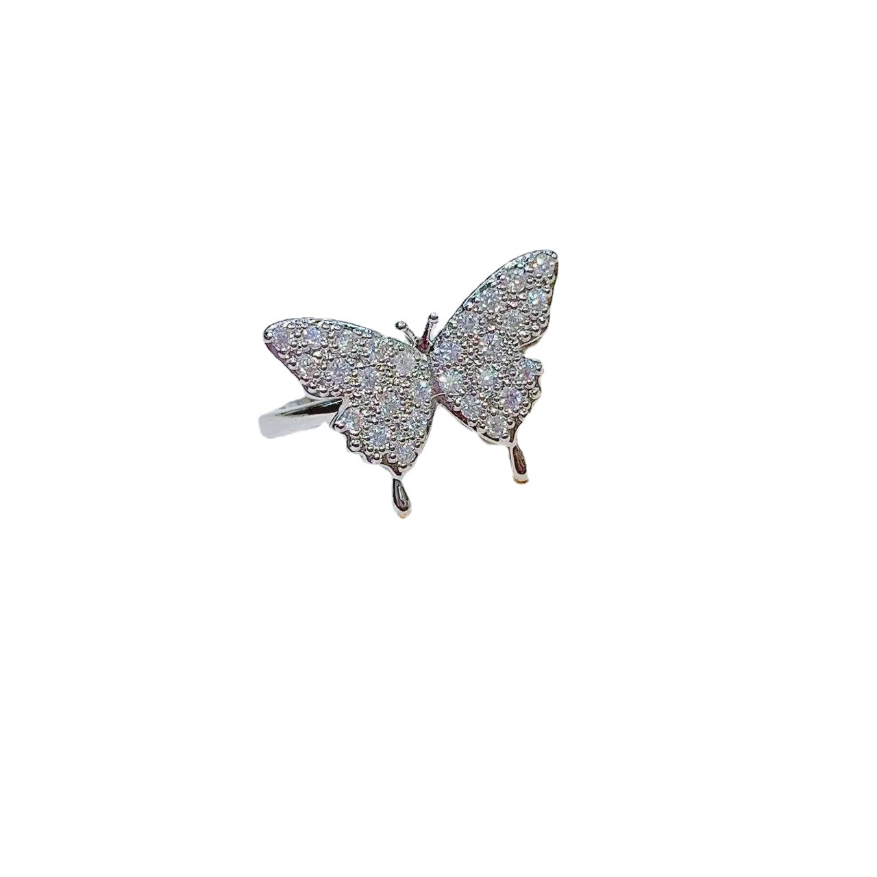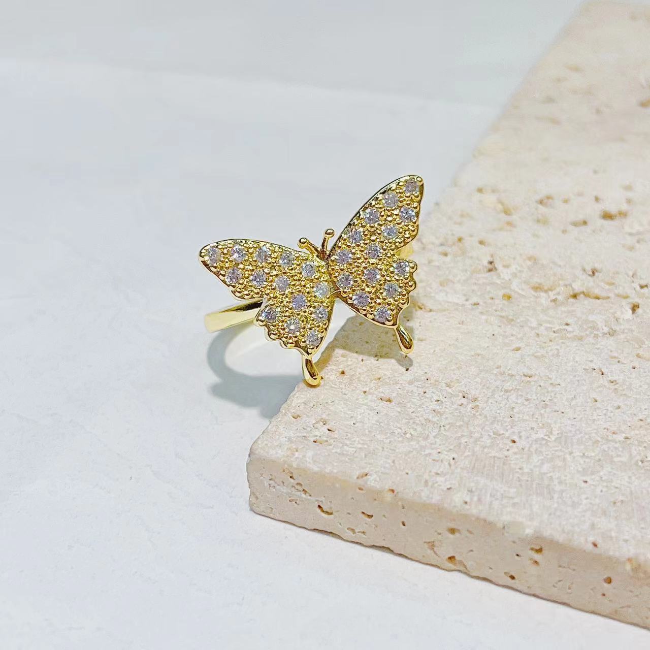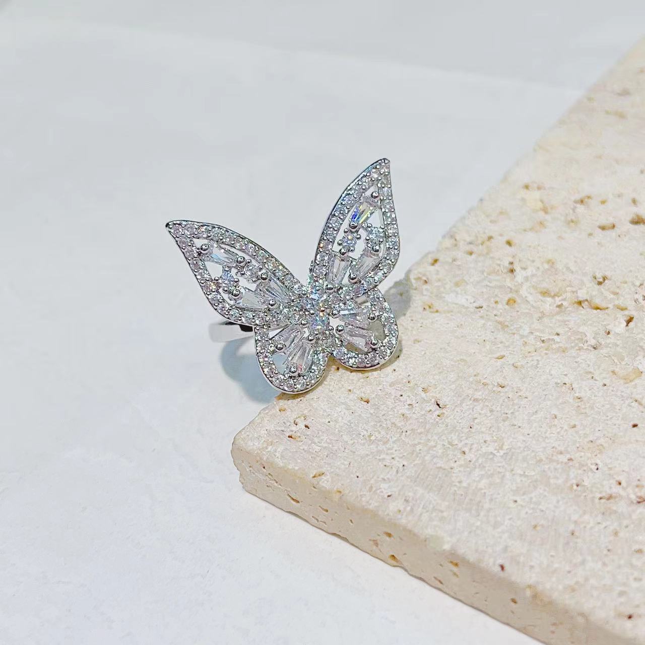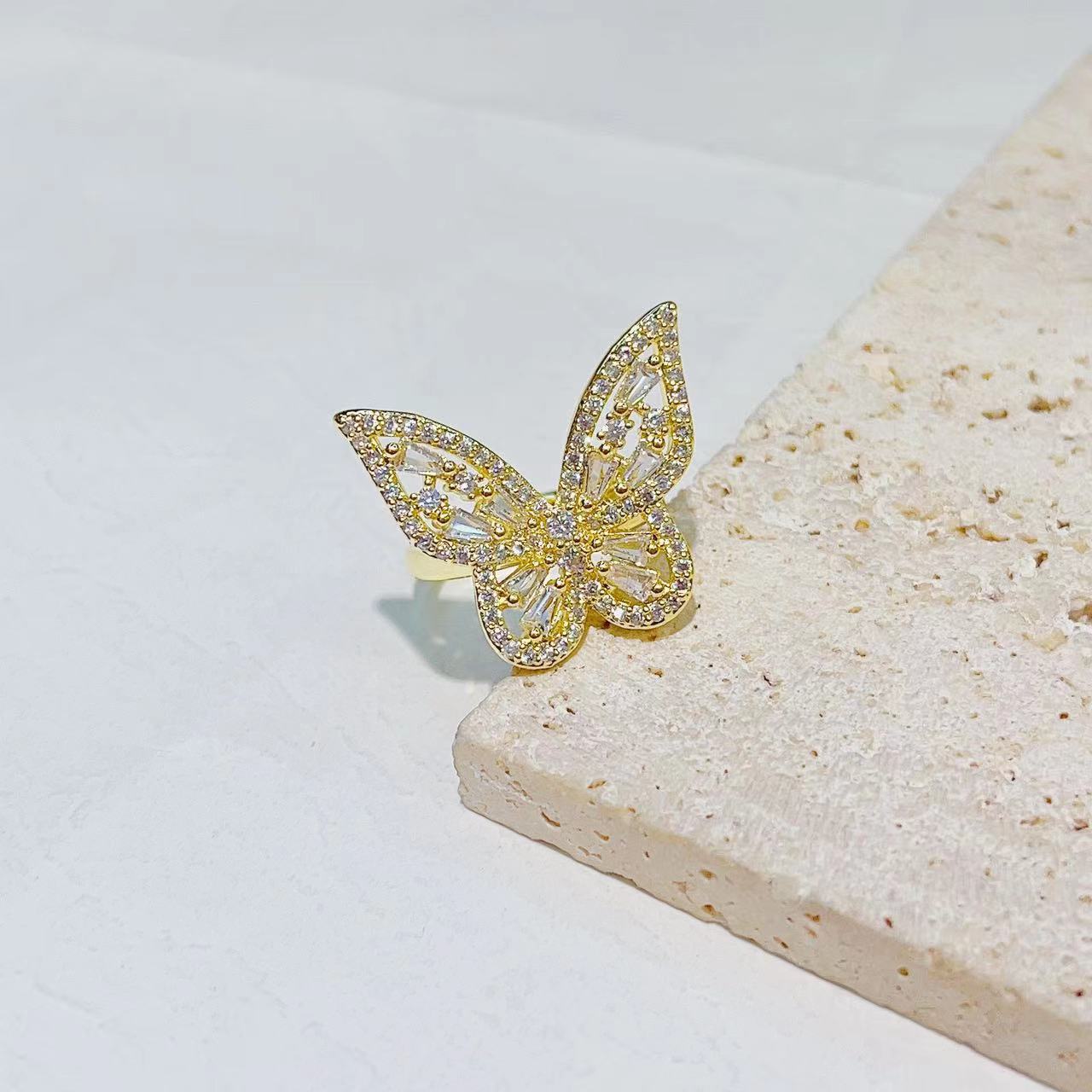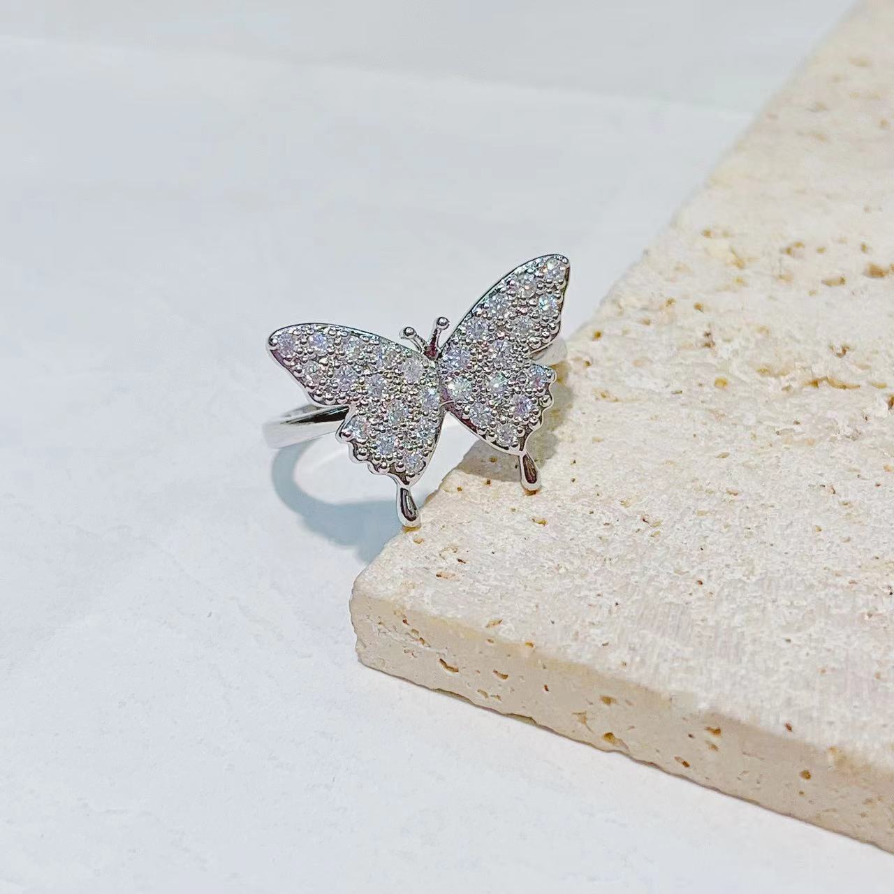 Micro Inlaid Zirconium Temperament Entry Lux Style Butterfly Ring Special-Interest Design Hollow Butterfly Open Ring European and American New Product Women‘s Ring