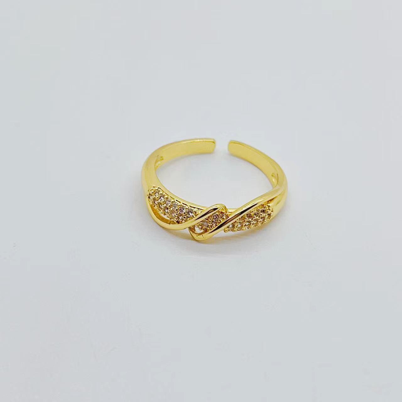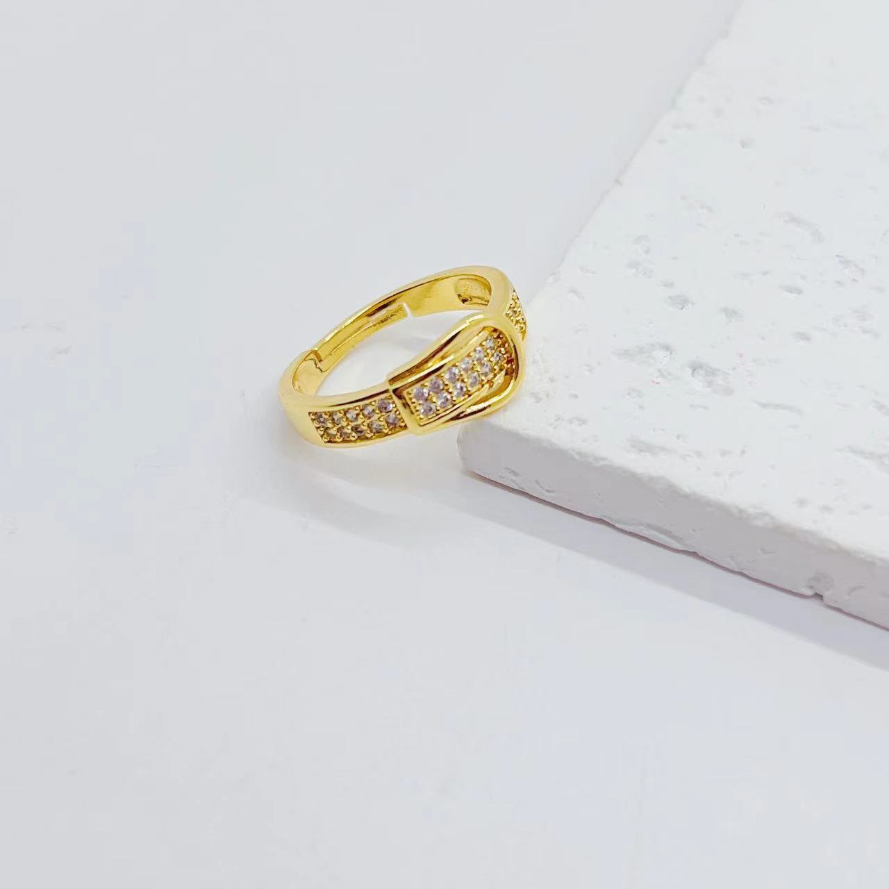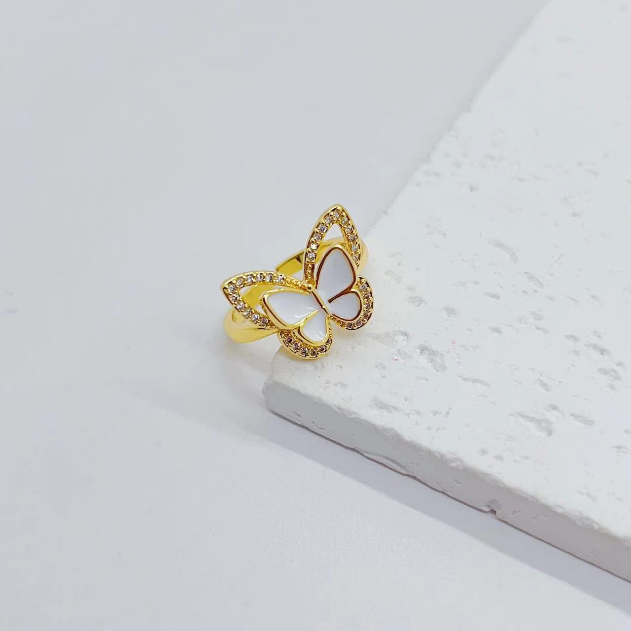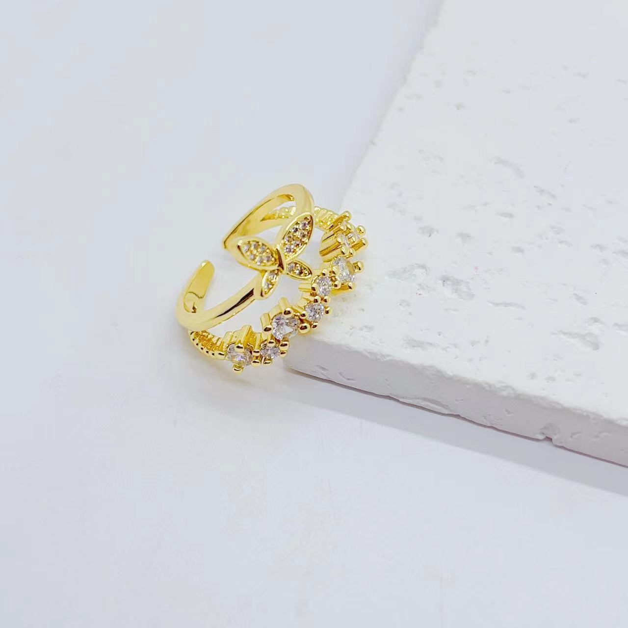 欧美跨境热卖新品轻奢创意小清新四叶花蝴蝶几何铜镀真金开口戒指