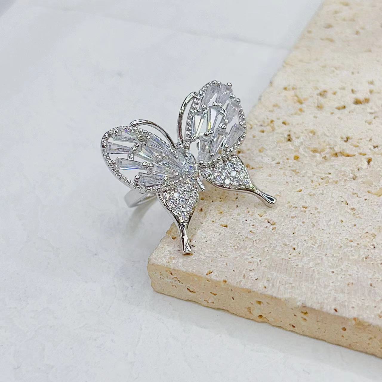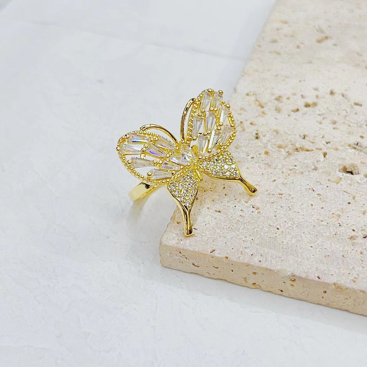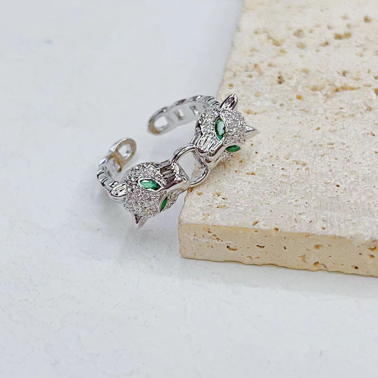 轻奢小众设计冷淡风夸镂空张蝴蝶戒指个性豹子头开口戒铜镀18K女