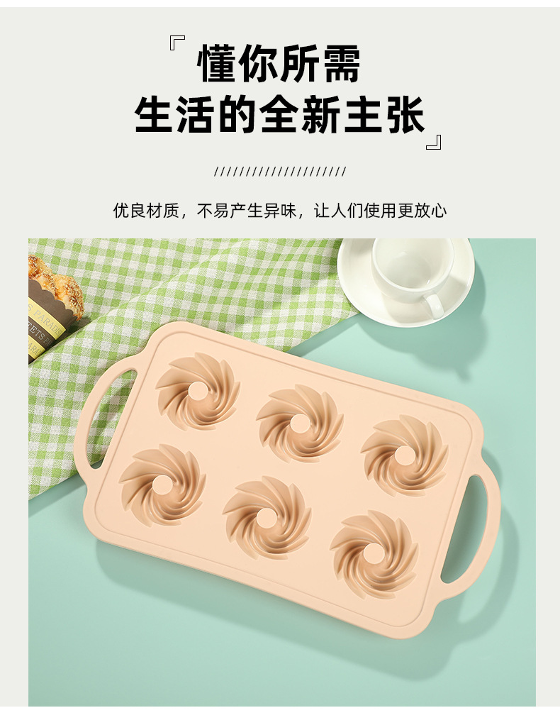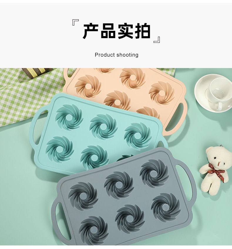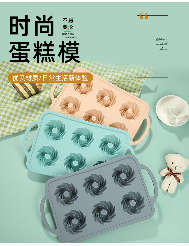 6连戚风 硬框硅胶蛋糕烤盘 新款纯色简约蛋糕布丁果冻硅胶耐用模