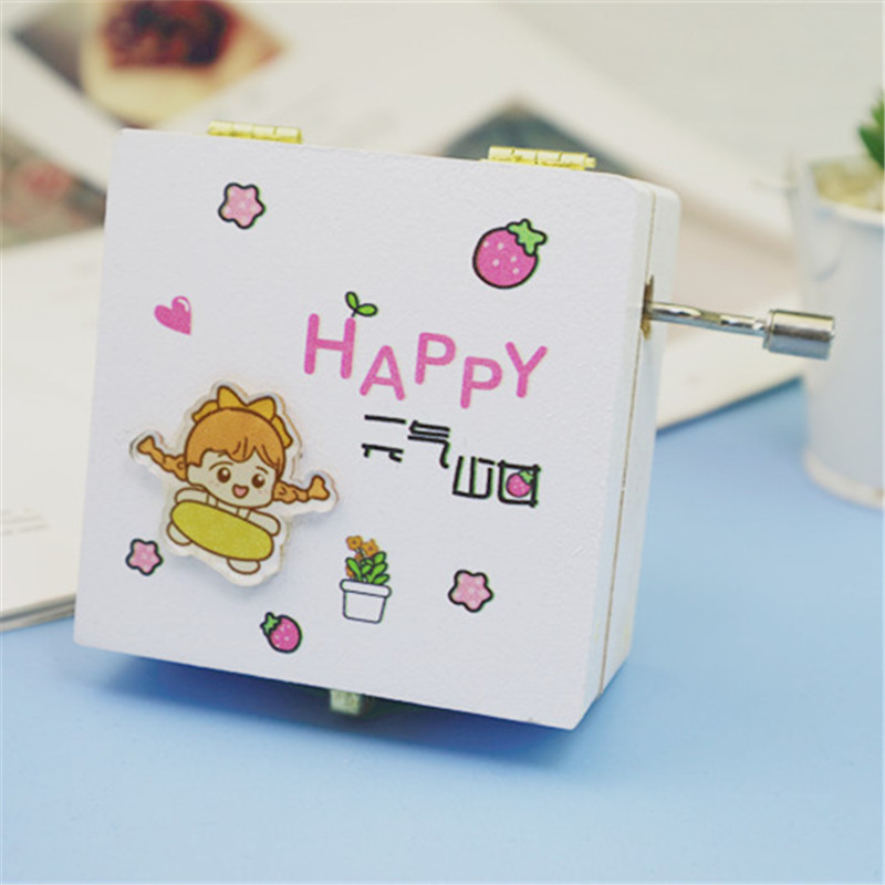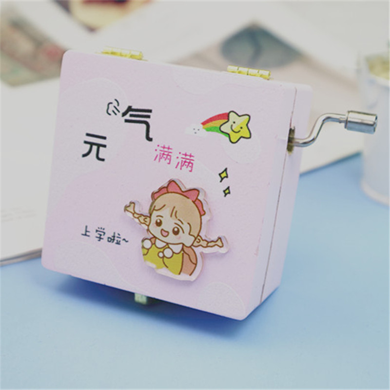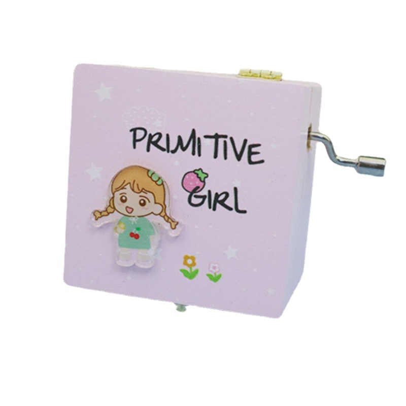 元气少女音乐盒木质亚克力贴片手摇八音盒学生生日礼物家居简约