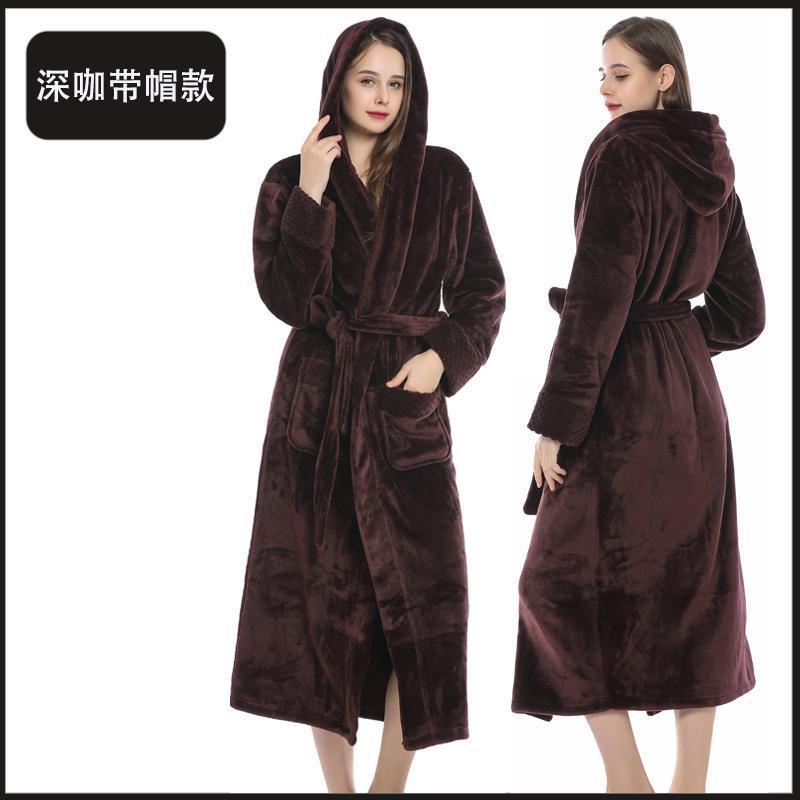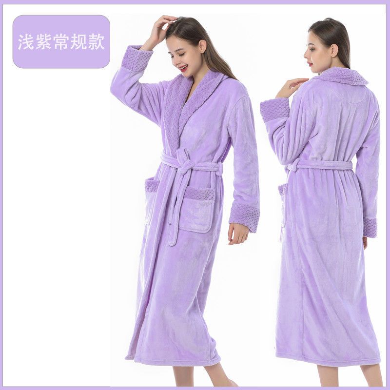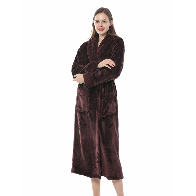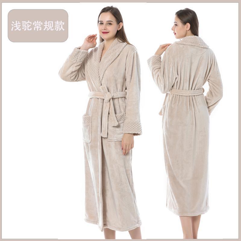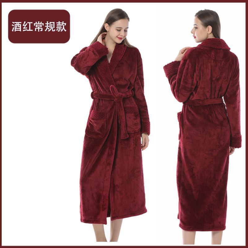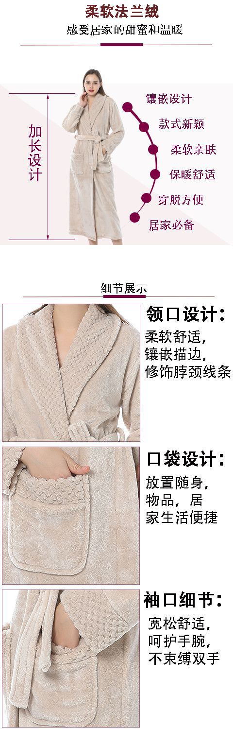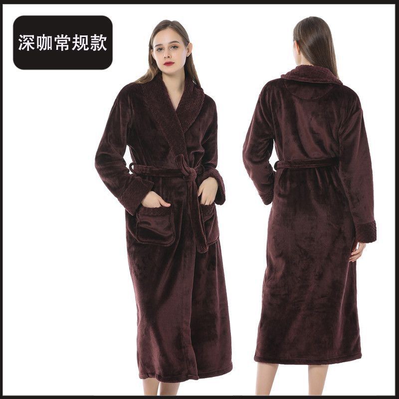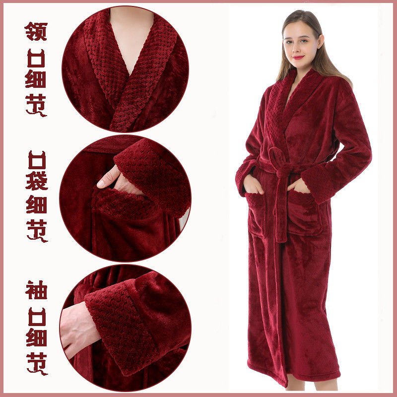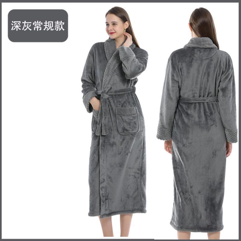 跨境外贸批发秋冬季加厚法兰绒睡袍男女长款大码情侣加长加肥浴袍