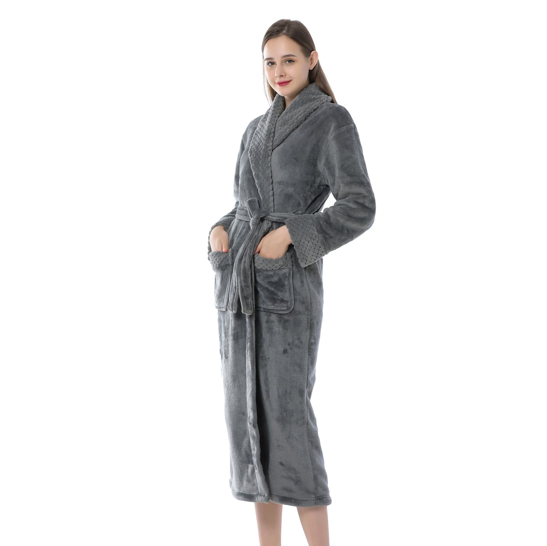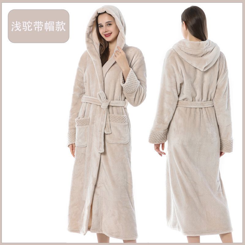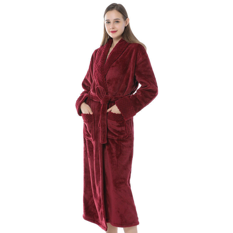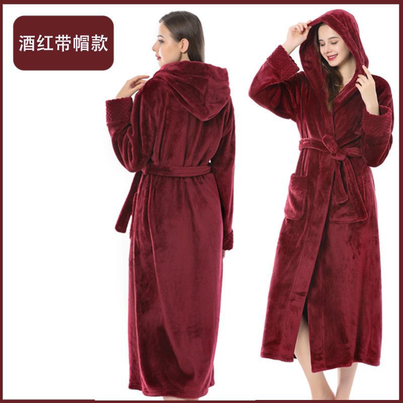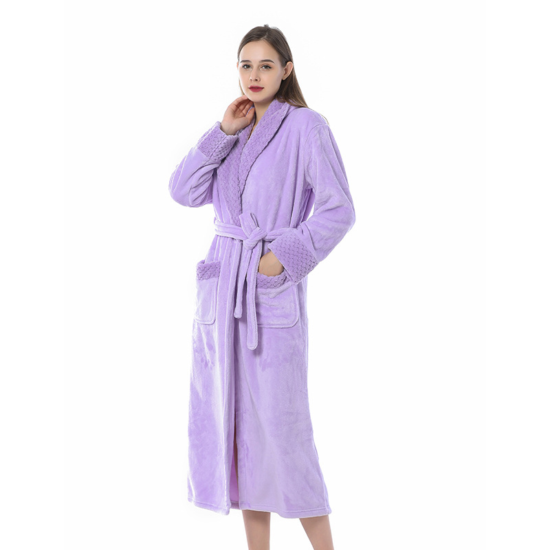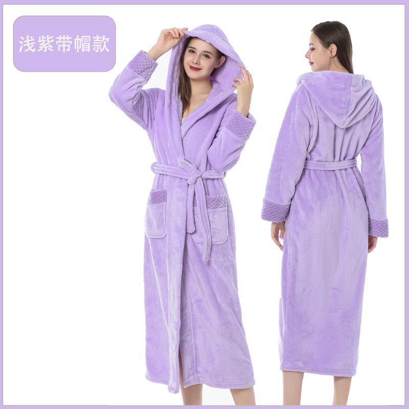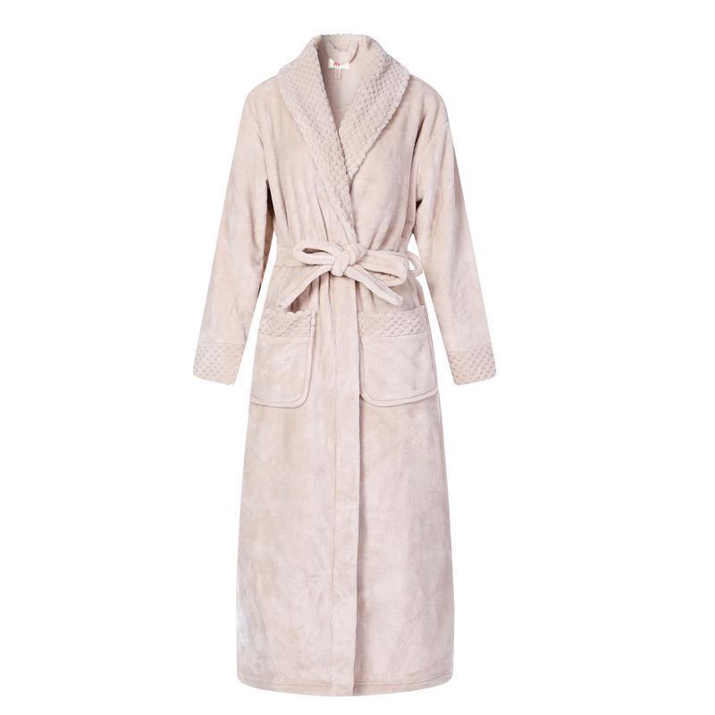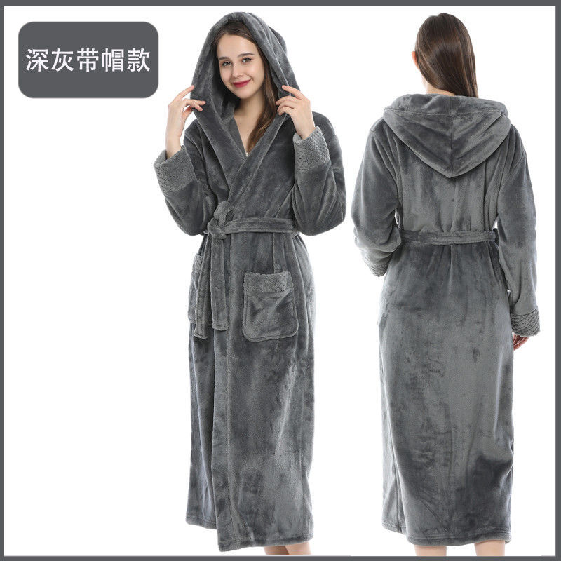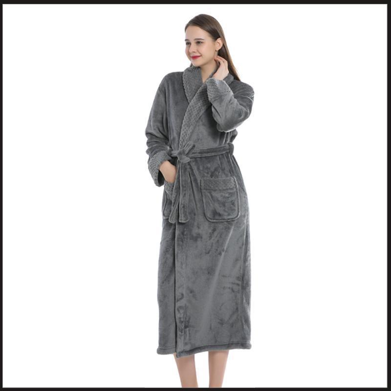 跨境外贸批发秋冬季加厚法兰绒睡袍男女长款大码情侣加长加肥浴袍