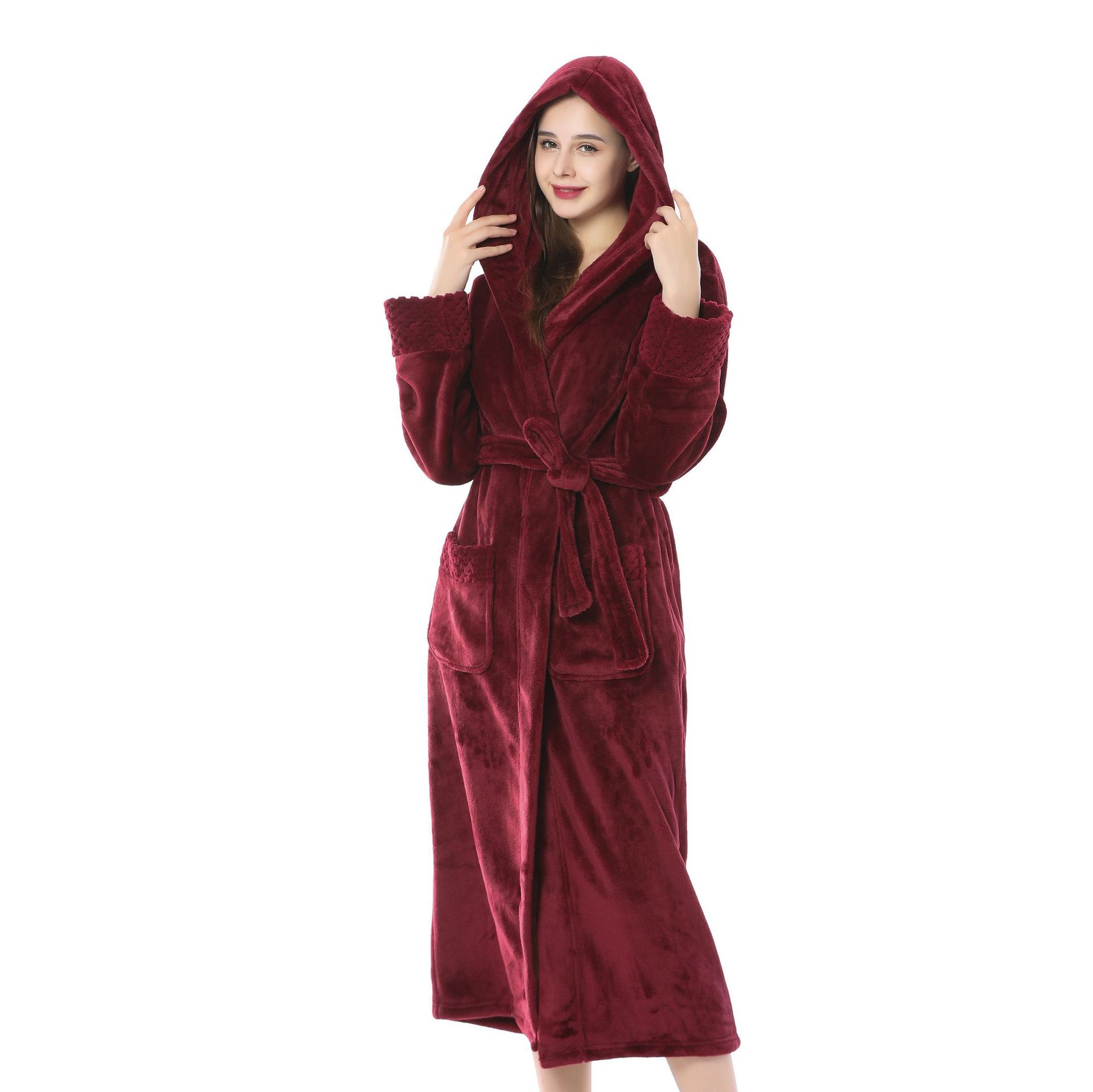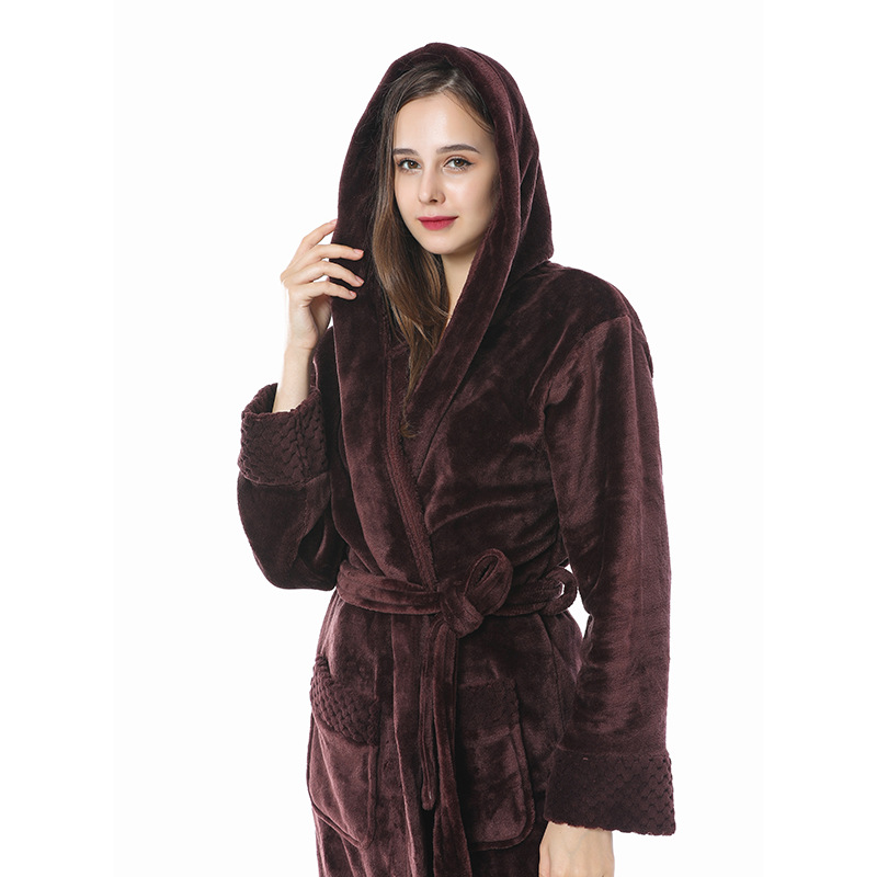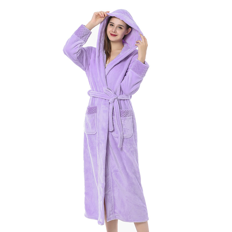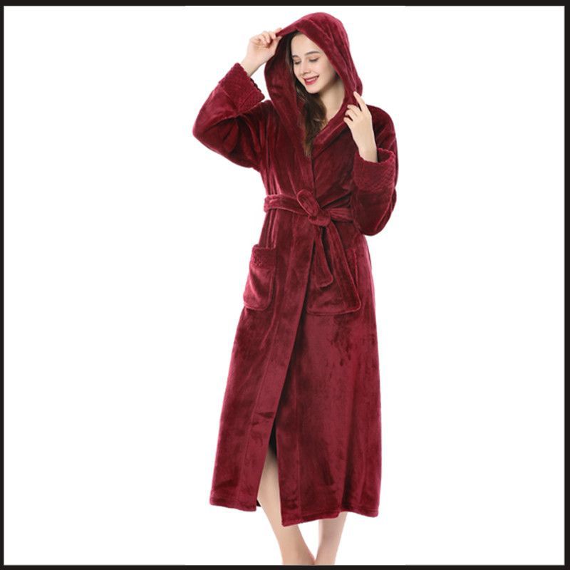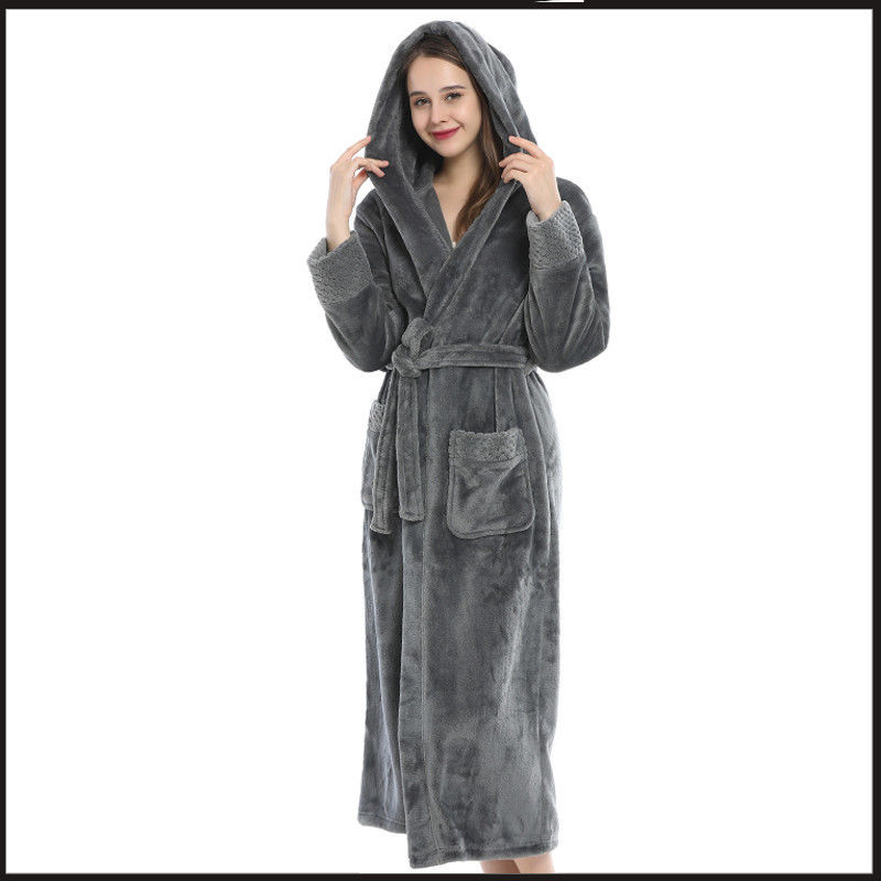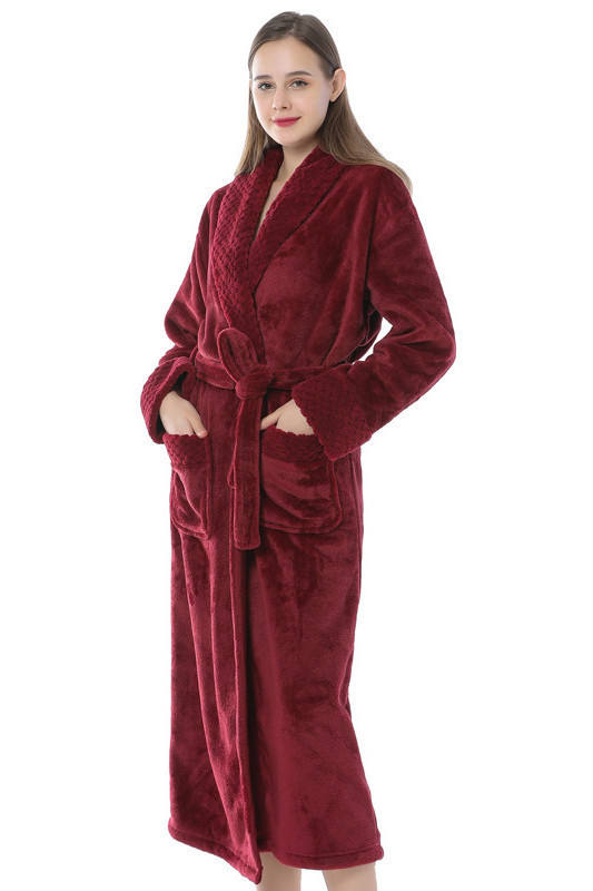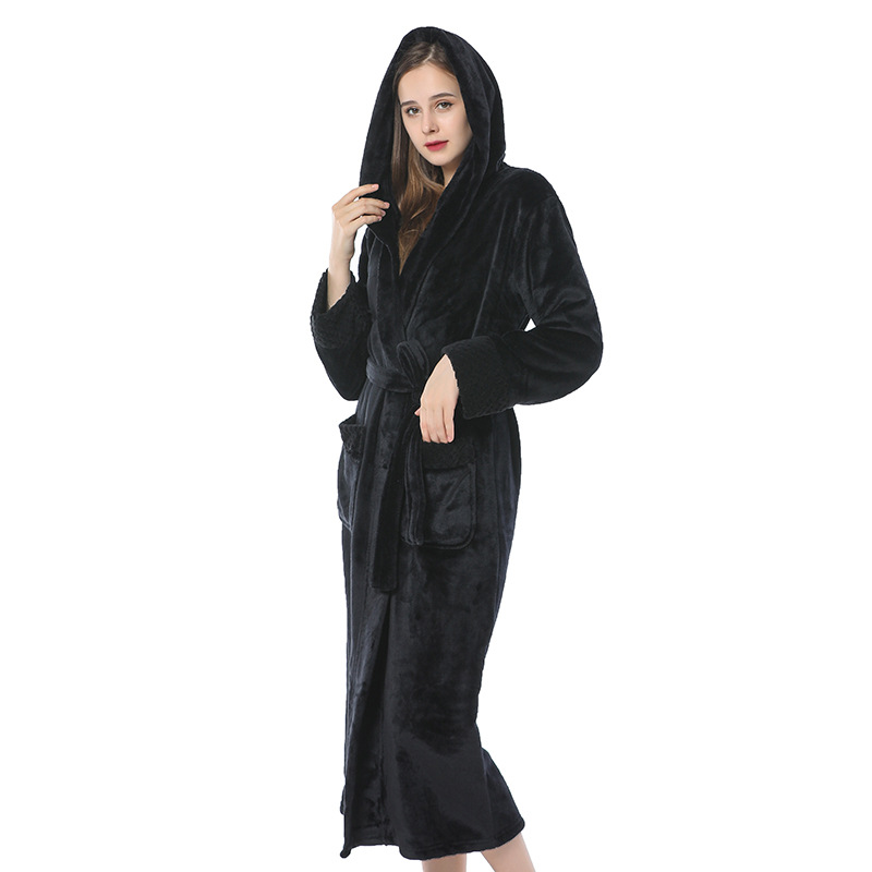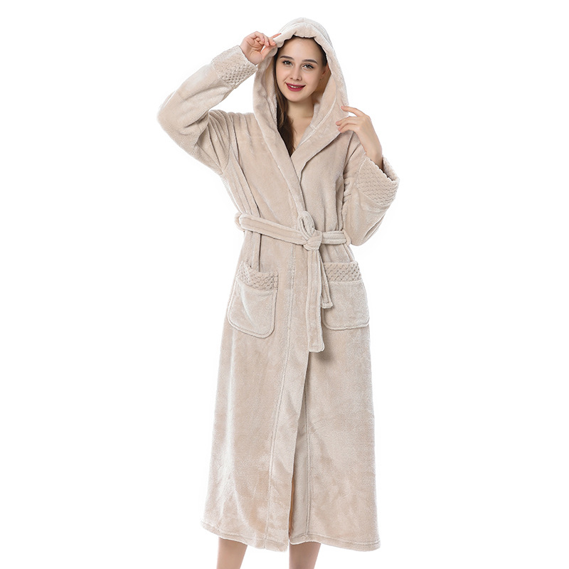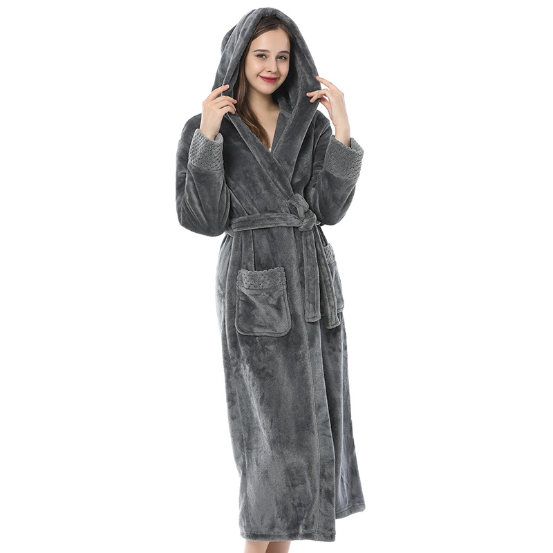 跨境外贸批发秋冬季加厚法兰绒睡袍男女长款大码情侣加长加肥浴袍