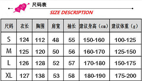 | size s recommendations (45.00 kg-62.50 kg(S 码建议(90-125斤)) | USD $0.0 | 50 piece available |