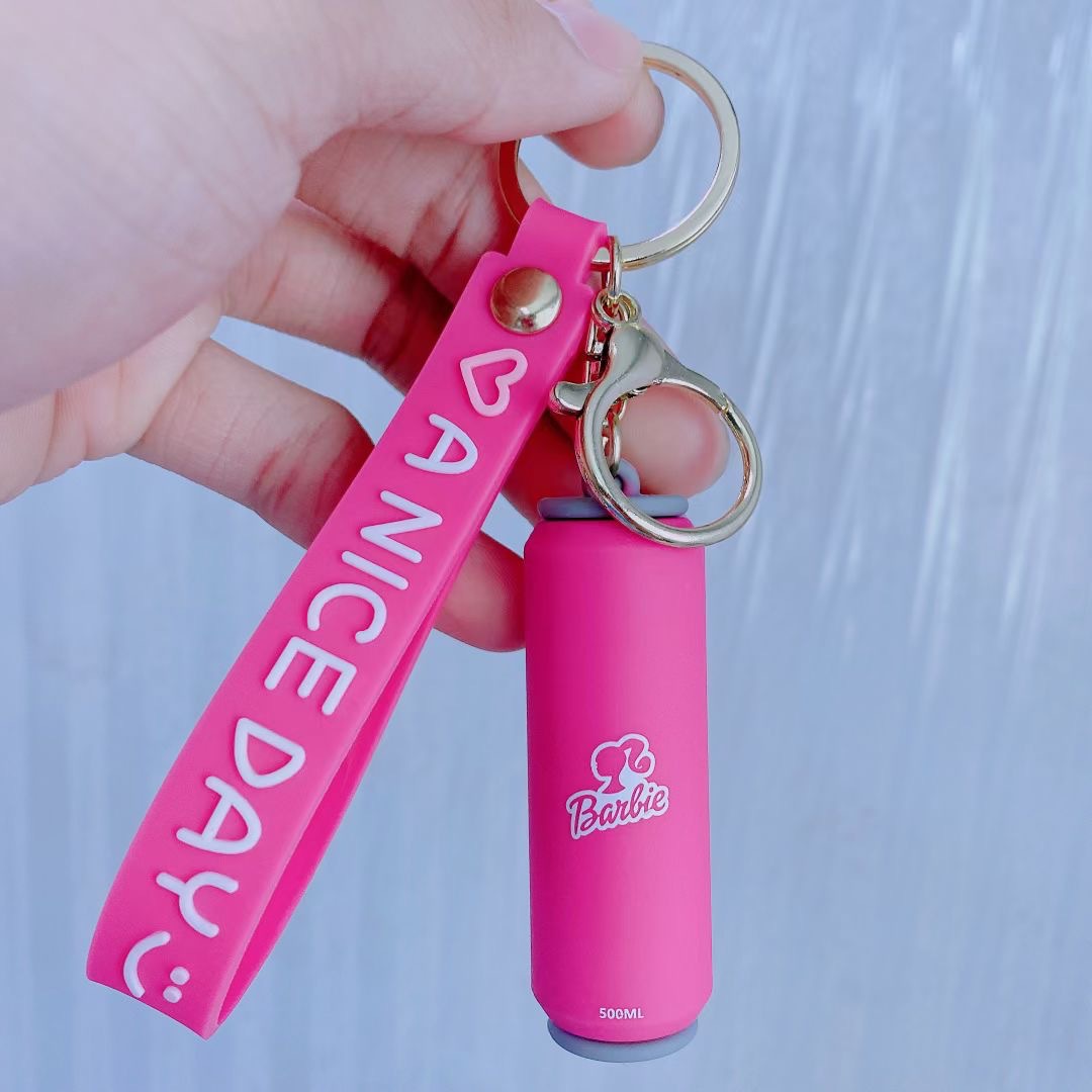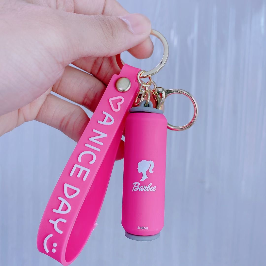 跨境爆火粉红芭比钥匙扣情侣可爱Barbie挂件创意易拉罐钥匙链批发