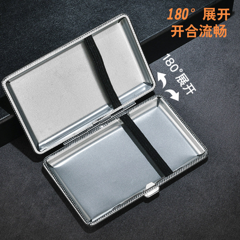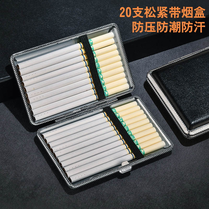 新款皮纹烟盒男士商务随身轻便型20只细烟盒金属贴皮烟盒厂家热销
