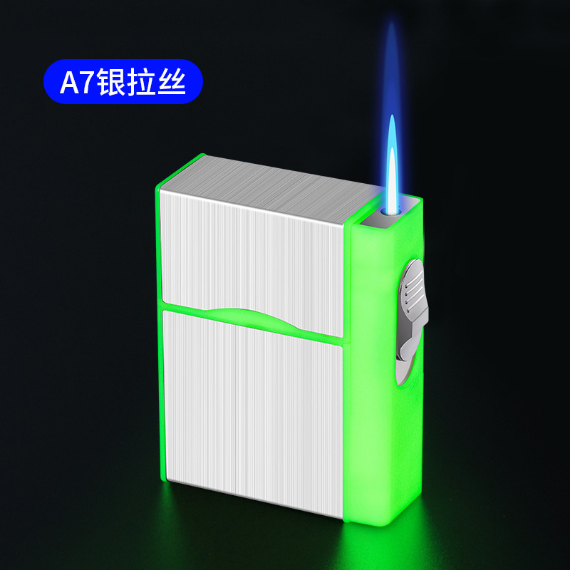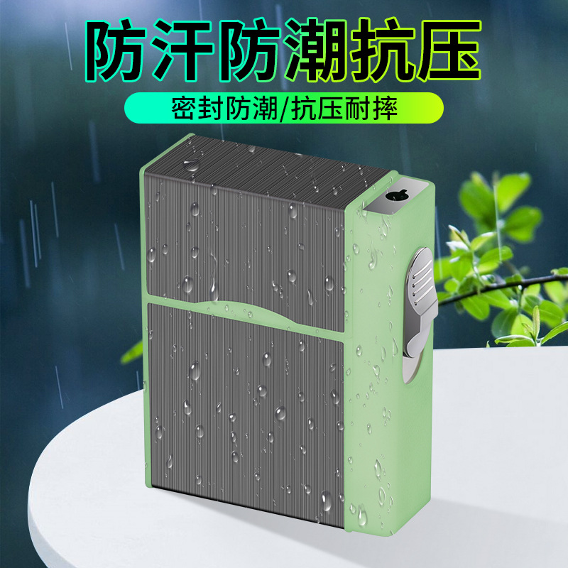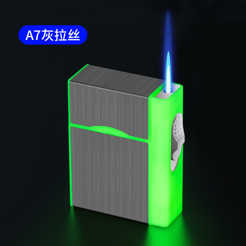 新款密封防潮抗压直冲蓝焰打火机夜光烟盒20支装带充气打火机礼品